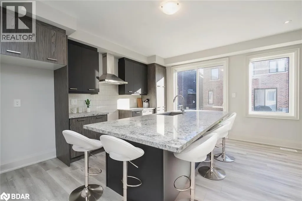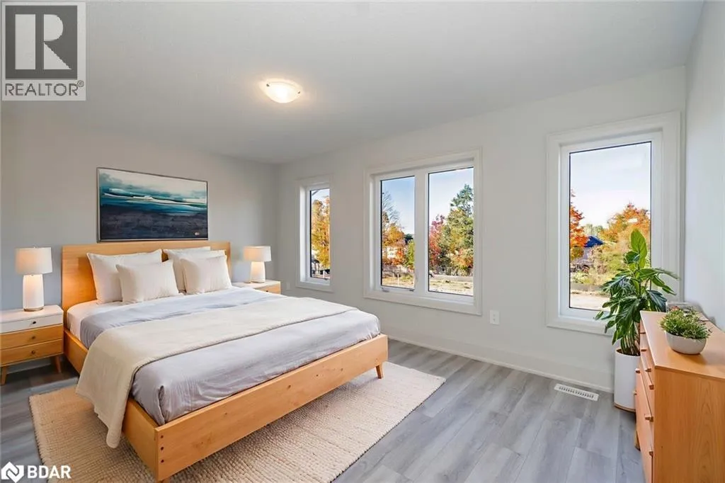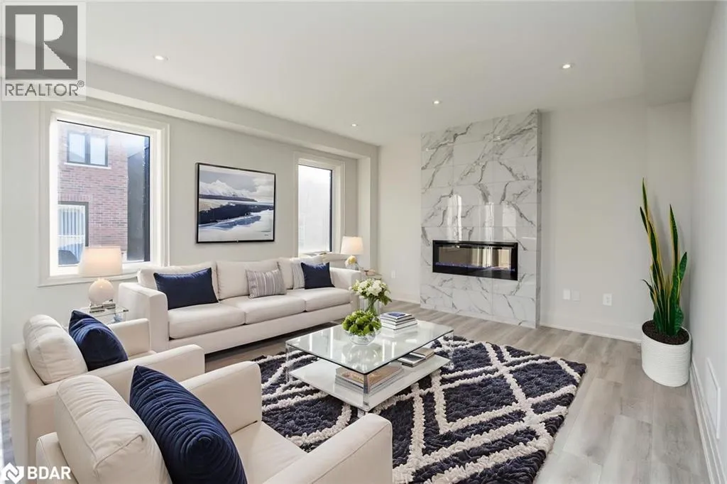 Big Bay Point Rd/The Queensway/Empire Dr/Durham Ave LUXURIOUSLY UPGRADED BRAND-NEW HOME WITH DESIGNER FINISHES & 2,448 SQ FT OF ELEGANT LIVING! Proudly presenting 176 Durham Avenue, the Rothwell Model by Honeyfield with 2,448 sq. ft. of upscale living and premium upgrades. Featuring a brick-and-vinyl exterior with modern black accents and a welcoming covered porch, this home embodies contemporary elegance within a vibrant master-planned community. Enjoy high-quality wood composite and tile flooring, smooth ceilings, and an enhanced stair and trim package. The open-concept kitchen is a showstopper, featuring two-tone cabinetry, Caesarstone quartz countertops, a chimney-style range hood, valance lighting, tile backsplash, and a large breakfast counter with seating for seven. The adjoining great room showcases a 50 linear electric fireplace with a tile surround and recessed LED pot lights, while a main-floor den or office and separate dining area add versatility. Upstairs, the primary suite impresses with a tray ceiling, walk-in closet, and a luxurious 5-piece ensuite featuring quartz counters, dual sinks, soaker tub, water closet, and a frameless glass shower with a storage niche. The second bedroom includes its own 4-piece ensuite, while the third and fourth bedrooms are connected by a beautifully appointed 4-piece shared ensuite. A convenient second-floor laundry room includes overhead cabinets and a clothes rod for added functionality. Additional upgrades include 24 basement windows for enhanced natural light, a 200-amp panel, rough-ins for a central vacuum and an EV charger, and plumbing for a future basement bathroom. The attached double-car garage provides inside entry to the mudroom, while the driveway accommodates two additional vehicles. Ideally located near Highway 400, the Barrie South GO Station, schools, shopping, trails, Friday Harbour Resort, golf, and recreational facilities, this exceptional #HomeToStay is covered by a 7-year Tarion warranty for peace of mind. (id:27476)