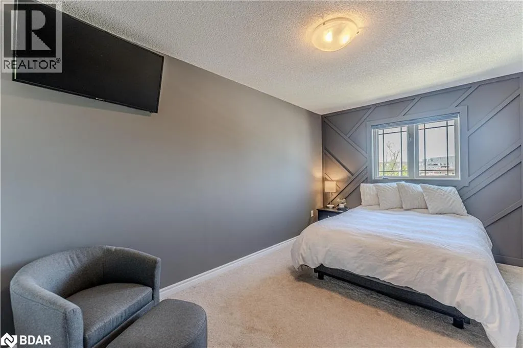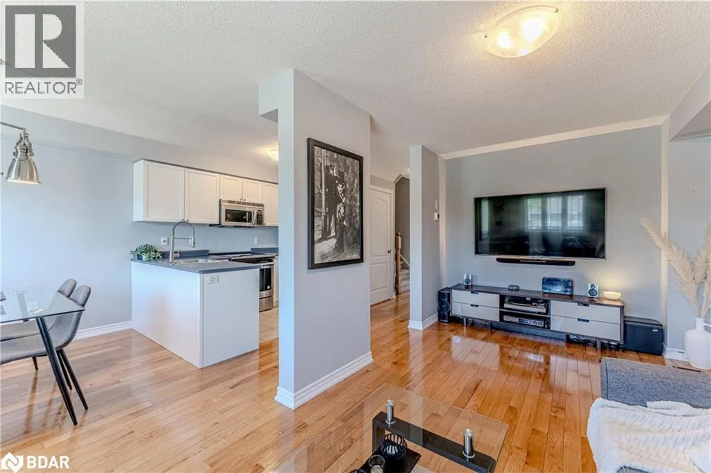Mapleview Dr W/Veteran's Dr/Harvie Rd WELL-APPOINTED TOWNHOME WITH A WALKOUT BASEMENT IN THE HEART OF HOLLY! This is the kind of neighbourhood where neighbours wave as they pass by, kids laugh from nearby playgrounds, and evening strolls are a great way to wind down the day. Tucked into Barrieâs beloved Holly neighbourhood, this inviting townhome places you in the heart of a walkable, family-friendly community with everything you need close at hand. Kids can stroll to Trillium Woods Elementary and spend afternoons at nearby parks and playgrounds, while parents will appreciate the quiet residential feel paired with quick access to shopping, dining, commuter routes and everyday essentials. Built in 2013, the home offers a more contemporary layout with open-concept principal rooms, hardwood flooring on the main level, and a kitchen featuring stainless steel appliances, white cabinetry and a gooseneck faucet. Four spacious bedrooms, each with double closets, including a primary suite highlighted by a bold feature wall, provide room to grow, and the unfinished walk-out basement with a rough-in bath opens the door to flexible living or future in-law potential. An attached garage, private driveway, central air and a gas barbecue hook-up for grilling season add comfort and convenience. Monthly maintenance fees take care of the essentials, including building insurance, roof, doors, landscaping, snow removal and parking, so you can spend less time on upkeep and more time enjoying your home, your community and the lifestyle that comes with it. (id:27476)
