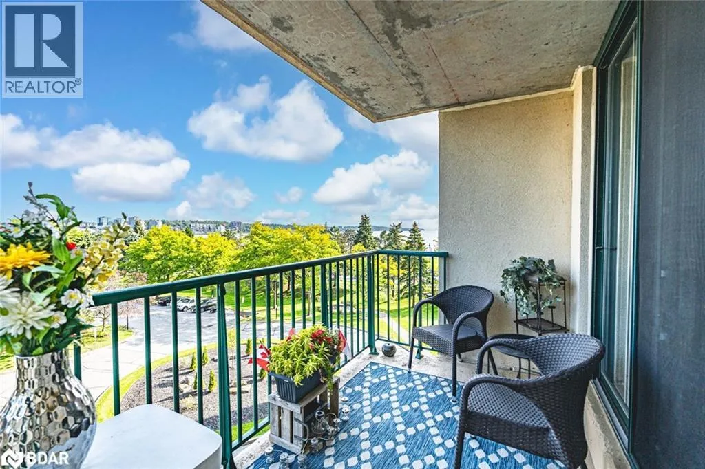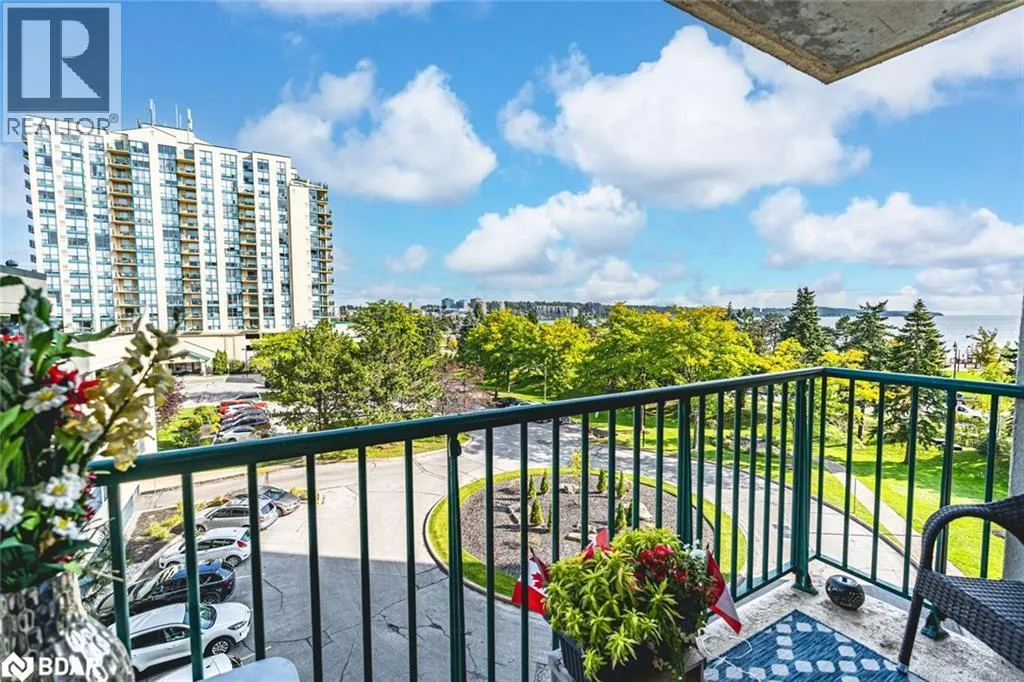 Lakeshore Dr/Bradford St/John St/Ellen St LAKESIDE CONDO LIVING WITH RESORT-STYLE AMENITIES, DOWNTOWN CONVENIENCE, & STUNNING BAY VIEWS! Discover carefree condo in Barrieâs desirable Lakeshore neighbourhood, where Kempenfelt Bay is right across the street with its waterfront trails, Centennial Beach, marina, parks, and playgrounds inviting you to enjoy the outdoors. Just minutes from the lively downtown core, youâll have shopping, dining, nightlife, community events, public transit, and the Allandale Waterfront GO Station all within easy reach. Natural light fills a spacious living room that connects seamlessly to the eat-in kitchen, complete with stainless steel appliances and a convenient pass-through that keeps the space open and functional. The private bedroom retreat features a walk-in closet and spectacular sunrise views, perfectly paired with a well-appointed 4-piece bathroom. Step out to the covered balcony from either the living room or bedroom to take in sweeping vistas of Kempenfelt Bay and the beach. Everyday convenience shines with in-suite laundry, extra storage, newer laminate flooring, carpet-free design, exclusive covered parking space and ample visitor parking. Resort-style amenities elevate daily living with an indoor pool, hot tub, sauna, fully equipped fitness centre, party room, and the reassurance of on-site security. Experience a lifestyle where relaxation, recreation, and city amenities come together in one exceptional place to call home! (id:27476)