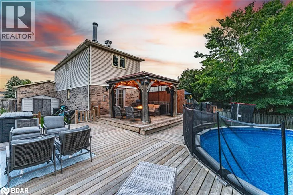 Big Bay Point Rd/Ward Dr/Barre Dr/Pae Dr FAMILY COMFORT, MODERN STYLE & A BACKYARD TO FALL IN LOVE WITH! This stunning all-brick two-storey home is nestled in a family-friendly neighbourhood on a quiet and safe street surrounded by great neighbours, with schools, shopping, entertainment, recreational activities, Highway 400 and the Barrie South GO Station just minutes away. A covered front porch and an interlock walkway lined with a garden bed create a warm welcome before stepping inside to a bright interior enhanced by modern paint tones, hardwood floors, two cozy fireplaces and pot lights. The kitchen is a true showstopper, showcasing white cabinetry with some glass inserts, stainless steel appliances and a timeless subway tile backsplash, while the family room offers a garden door walkout to the expansive backyard. Outdoors, this property shines with a spacious entertainerâs yard featuring an above-ground pool, a hard-top gazebo, a large deck and an impressive lot that stretches 209 feet on one side with plenty of grass space for kids and pets to enjoy - this backyard is absolutely stunning! Upstairs, three well-sized bedrooms provide comfortable retreats, including a generously sized primary with a sitting area, a four-piece ensuite and a closet with built-in shelving. The partially finished basement extends the living space with a recreation room that is perfect for movie nights, a 2-piece bath and plenty of storage. Everything youâve been searching for in a #HomeToStay is right here, so stop scrolling and start packing! (id:27476)