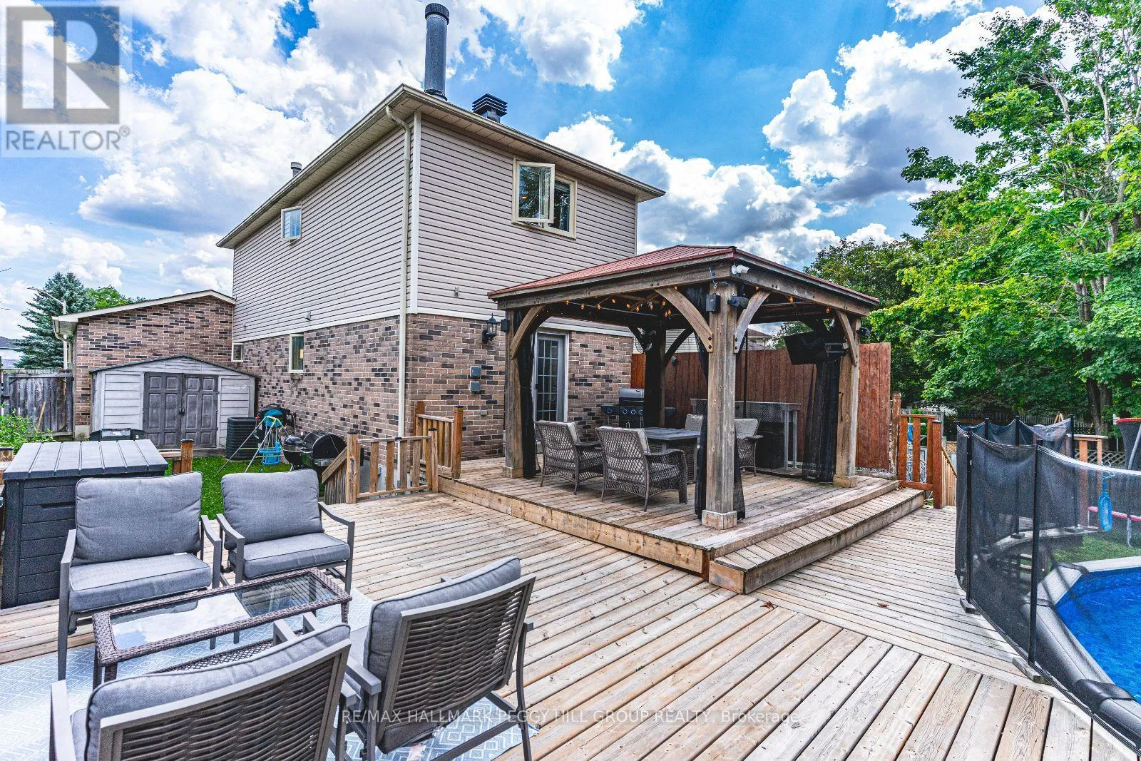 Cross Streets: Barre Dr/Pae Dr. ** Directions: Big Bay Point Rd/Ward Dr/Barre Dr/Pae Dr. FAMILY COMFORT, MODERN STYLE & A BACKYARD TO FALL IN LOVE WITH! This stunning all-brick two-storey home is nestled in a family-friendly neighbourhood on a quiet and safe street surrounded by great neighbours, with schools, shopping, entertainment, recreational activities, Highway 400 and the Barrie South GO Station just minutes away. A covered front porch and an interlock walkway lined with a garden bed create a warm welcome before stepping inside to a bright interior enhanced by modern paint tones, hardwood floors, two cozy fireplaces and pot lights. The kitchen is a true showstopper, showcasing white cabinetry with some glass inserts, stainless steel appliances and a timeless subway tile backsplash, while the family room offers a garden door walkout to the expansive backyard. Outdoors, this property shines with a spacious entertainer's yard featuring an above-ground pool, a hard-top gazebo, a large deck and an impressive lot that stretches 209 feet on one side with plenty of grass space for kids and pets to enjoy - this backyard is absolutely stunning! Upstairs, three well-sized bedrooms provide comfortable retreats, including a generously sized primary with a sitting area, a four-piece ensuite and a closet with built-in shelving. The partially finished basement extends the living space with a recreation room that is perfect for movie nights, a 2-piece bath and plenty of storage. Everything you've been searching for in a #HomeToStay is right here, so stop scrolling and start packing! (id:27476)