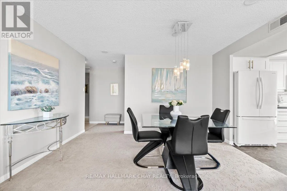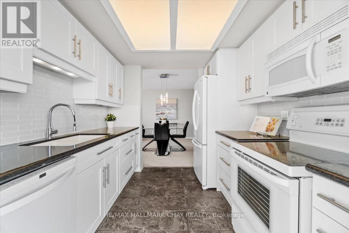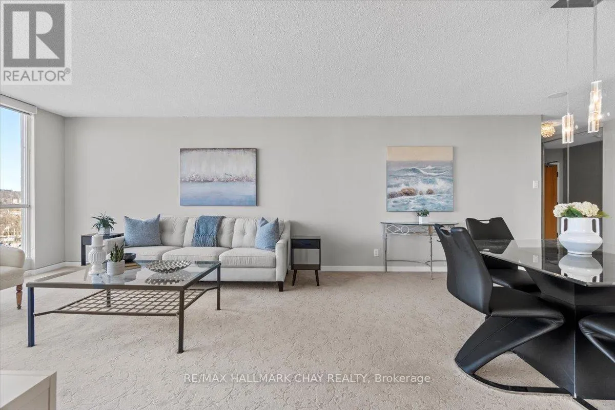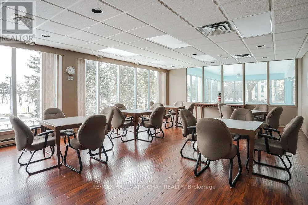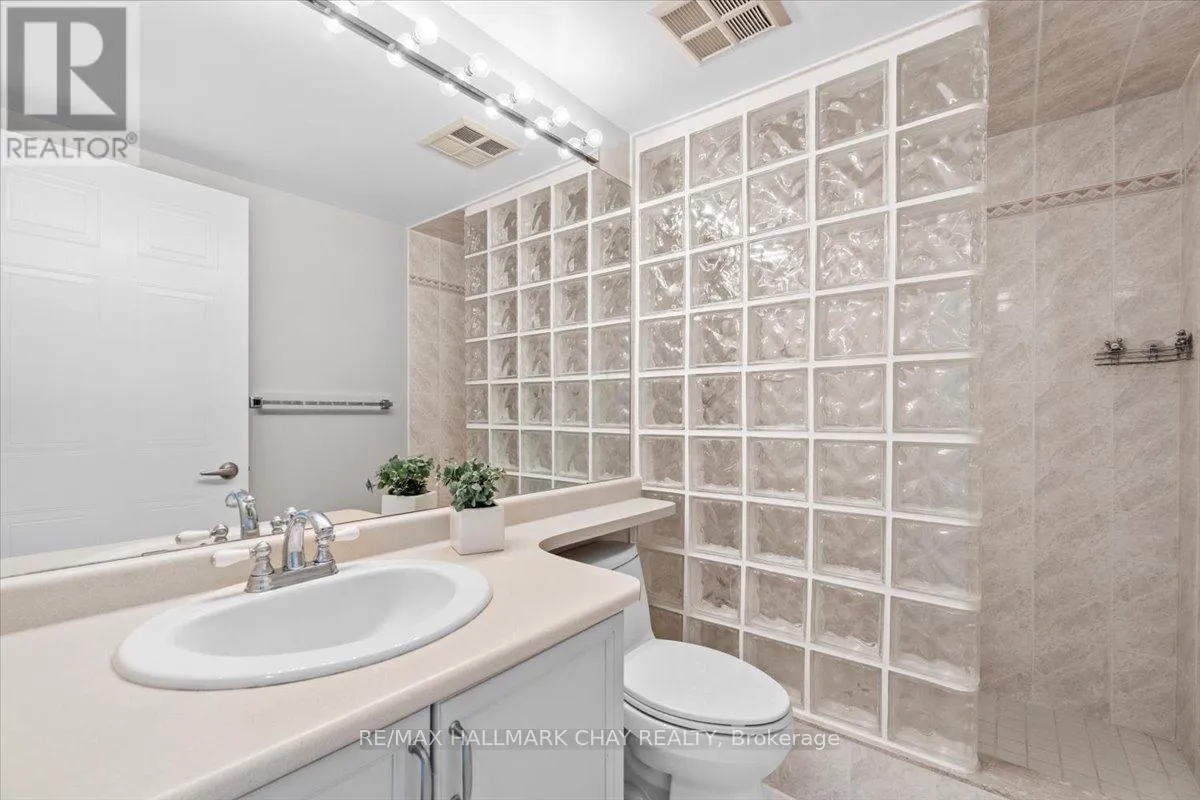 Cross Streets: Victoria St to Ellen St. ** Directions: Lakeshore Drive to Victoria St to Ellen St. Lovely 2 bedroom, 2 Bath, 1,123 square foot suite at Marina Bay. Beautiful south facing view of Kempenfelt Bay. Spacious living room with a large dining area, spacious enough for a full dining set. The upgraded kitchen provides gorgeous counters, under-mount lighting, glass tile backsplash, ceramic floors, double sinks and loads of cupboards. The solarium is a beautiful area to sit and enjoy the view. Main bath has a walk-in shower with a custom glass block wall. The primary bedroom is oversized and provides a full 4-piece ensuite bath. Large windows creates a bright and cheery space. Fantastic Rec Facilities & Social Activities include indoor pool, hot tub, sauna, exercise room, library area, party room, billiards, cards, social tea and coffee times and more. The building is located steps to the Go Transit station, Beach, Walking Paths, Downtown Festivals & Events, Shopping. Pet friendly building, underground parking, storage locker, visitor parking and a car wash bay. (id:27476)