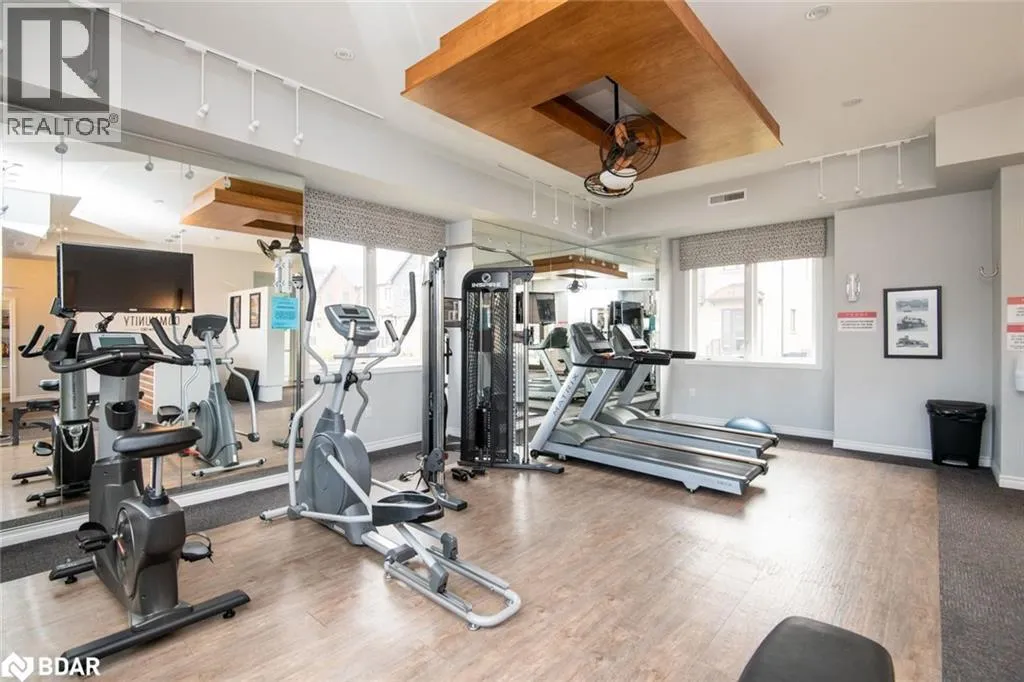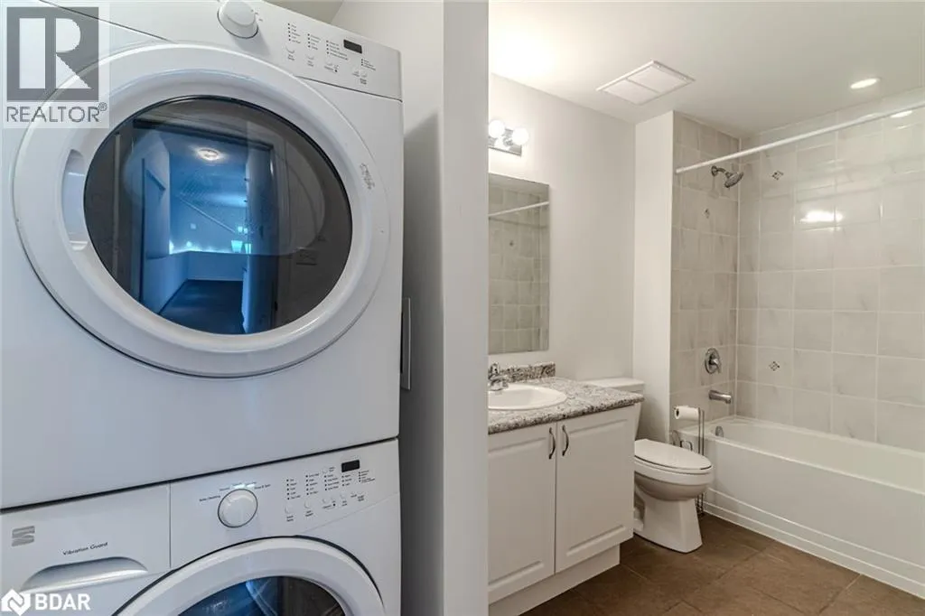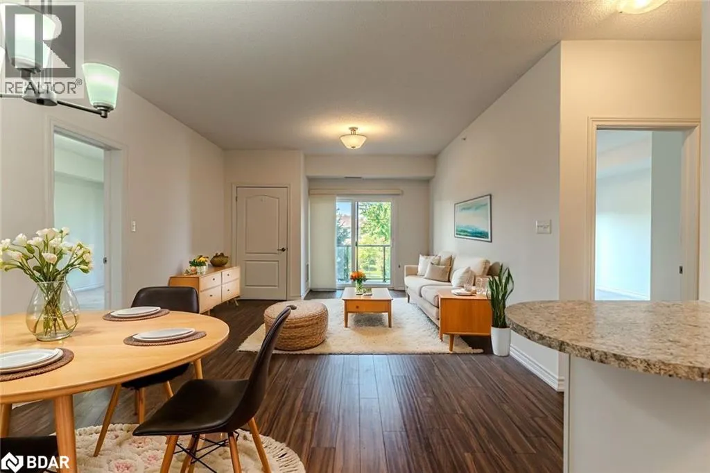 Yonge St/Madelaine Dr/Dean Ave MODERN 2-BEDROOM CONDO WITH 2 PARKING SPOTS IN A DESIRABLE SOUTH BARRIE LOCATION, STEPS FROM THE GO TRAIN, PARKS, SCHOOLS & SHOPPING! Set in the desirable Painswick neighbourhood of South Barrie, this bright, clean, and spacious 1-storey condo in the sought-after Yonge Station building offers an exciting lifestyle opportunity with everything at your fingertips. Enjoy walking distance to schools, the local library, trails, Barrie South GO station, everyday shopping and dining, as well as Painswick Park with playgrounds, athletic fields, tennis and pickleball courts. The inviting open-concept kitchen, dining, and living area showcases a fresh white interior and abundant natural light, stainless steel appliances, and a sliding glass walkout to a generous covered balcony ideal for outdoor dining or peaceful morning coffees. Two comfortable bedrooms include a primary suite with a walk-in closet and private 4-piece ensuite, complemented by a second 4-piece bathroom with in-suite laundry for ultimate convenience. Added highlights include two parking spots, visitor parking, a storage locker, and access to an on-site gym facility. Donât miss your chance to own this vibrant South Barrie condo where comfort, convenience, and lifestyle come together - your next #HomeToStay awaits! (id:27476)