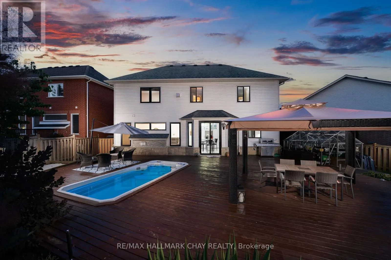 Cross Streets: Big Bay Point Rd/Sandringham Dr/Birkhall Pl. ** Directions: Big Bay Point Road to Sandringham Dr. Welcome to 90 Birkhall Place - an EXCEPTIONAL home in the sought-after family-centric community of Innis-shore in Barrie. Offering stunning curb appeal as one of the larger lots of the neighbourhood, this professionally landscaped property backs onto lush trails, tranquil green space, and a serene stream. Bold, elegant foyer with double door entry, open to above, leads into this meticulously maintained, upgraded 3,600+ sqft of finished living space offering 4+1 bedrooms, 3+1 bathrooms, full finished lower level. Extend your functional living space outdoors and appreciate the added luxury of your own personal swim spa. From tranquil morning coffee to al fresco dinners with loved ones, this backyard is more than a feature -it's a lifestyle. With high-end finishes throughout this home, you will notice attention to detail, style and function at every turn. Pride of ownership and thoughtful design is evident with seamless flow from room to room and updates that elevate both style & comfort. Chef-inspired kitchen boasts stunning two-tone cabinetry, quartz countertops, undermount sink, porcelain floor tiles, waterfall island, bev fridge, plenty of cabinets, as well as top-tier appliances, perfect for everyday meals & gourmet creations. Walk out to expansive rear deck from bright breakfast room. Family rm feature wall with chic b/I shelves, cozy gas fireplace for cooler evenings, accent windows - overlooking the fully fenced private rear yard. Combined living/dining features hardwood floor, two-story windows, crown moulding, decorative columns -pure sophistication. Private zone of this home offers a flexible loft space -home office, study zone -the choice is yours. Spacious primary suite with gas fireplace, spa-like ensuite, abundance of closet space. Three bedrooms, main bath complete the upper level. Full, finished lower level extends your interior living space further with an additional bedroom and full bath, spacious rec room with pool table and entertainment station. (id:27476)