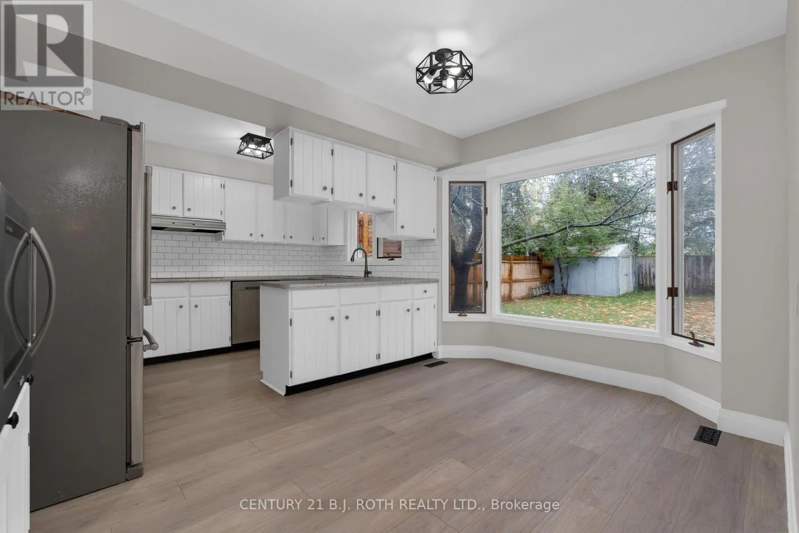 Cross Streets: Codrington & Rodney. ** Directions: Codrington to Rodney to White Pine. Welcome to 4 White Pine Place a two-storey, five-bedroom home on one of Barrie's most desirable streets. Located just a 10-minute walk from the waterfront and backing onto Codrington Public School, this property offers over 2,700 square feet of living space above grade. The home has been freshly painted throughout. The main floor features new flooring, a family room with a gas fireplace and walkout to the yard, the kitchen includes a breakfast nook with bay window overlooking yard,. Also on this level is a separate dining room, a bright living room with a large window, den/office with another bay window and a main floor laundry room with access to the garage and side yard. Upstairs, you'll find four spacious bedrooms, including a primary suite with a private 3-piece ensuite and a newly updated 5-piece main bathroom. This level also features new flooring. The partially finished lower level adds versatility, offering an additional bedroom, a 2-piece bath, a sauna, and plenty of storage space. The backyard includes a large deck and ample green space ideal for family activities or relaxing outdoors. Located on a quiet street close to schools, parks, and the waterfront, this home is perfect for families looking for space and convenience. Book your private showing today and see why 4 White Pine Place is the perfect place to call home. (id:27476)