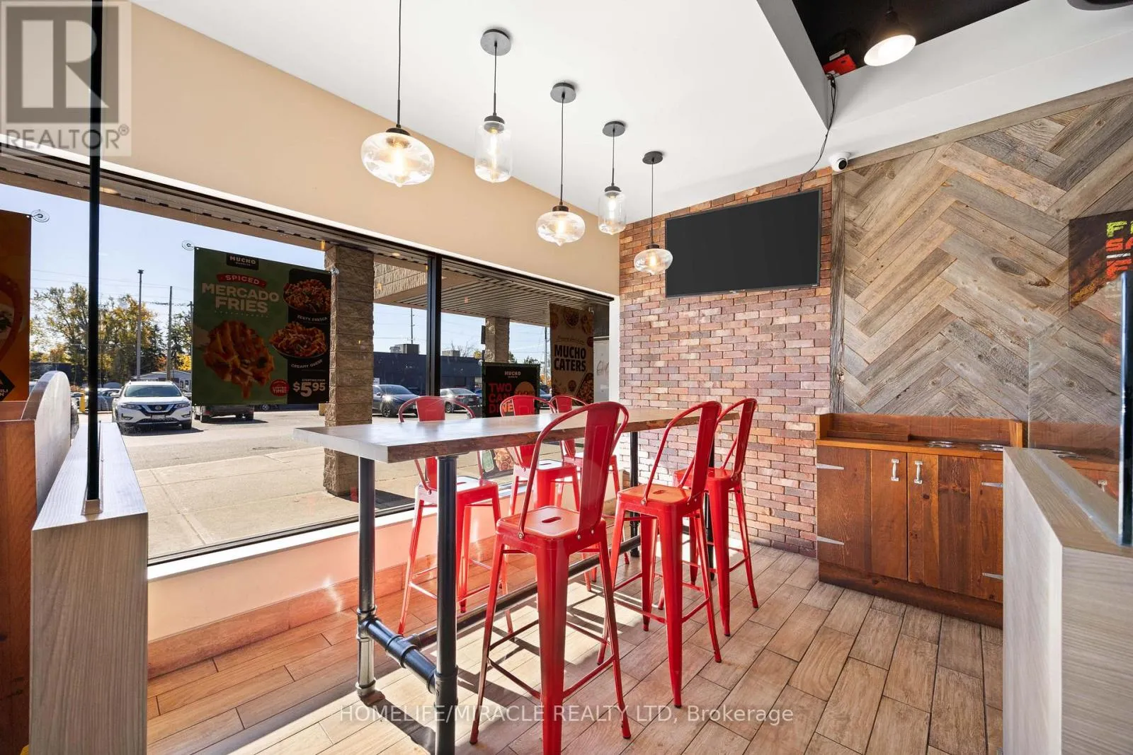 HWY 4OO TO DUCKWORTH STREET An exceptional opportunity to own a thriving Mucho Burrito franchise in a prime Barrie location! This beautifully maintained restaurant spans approximately 1,500 sq. ft. and is ideally situated close to Highway 400, within walking distance to Georgian College and Eastview Secondary School, ensuring a steady flow of customers. The business enjoys strong sales volume and comes fully equipped with brand-new equipment, offering a true turnkey operation. An added advantage is the attractive rent and good volume per month. Don't miss this rare and profitable opportunity-a deal this good won't last long! (id:27476)