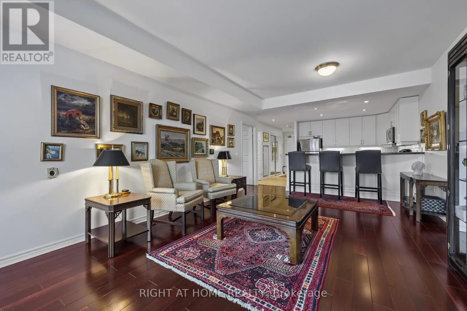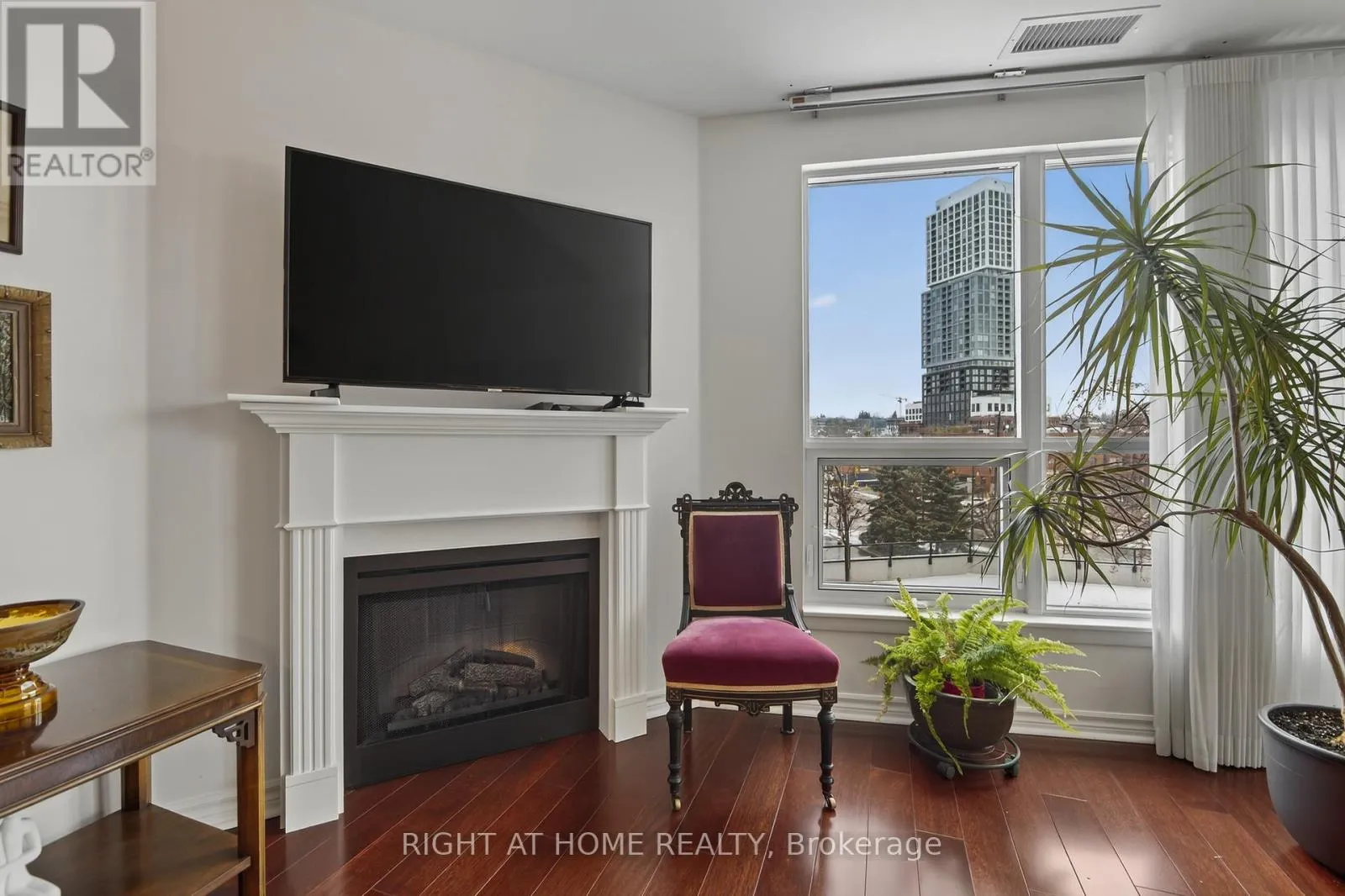 Cross Streets: Simcoe St - Toronto St. ** Directions: Simcoe Street - Toronto Street. WaterView Condominiums - Experience stunning, views of Kempenfelt Bay from this beautifully upgraded "Clearwater" model suite - directly across from the beach and boardwalk and trails. Offering 1,358 sf of elegant living space, this 2 bedroom home features rich, cherry flooring, soaring 9' ceilings, and expansive windows that fill the rooms with natural light. The open concept kitchen includes a raised breakfast bar - perfect for casual dining or entertaining - while the cozy living room with its corner FP creates a warm, inviting atmosphere. The front den provides an ideal space for a home office or entertainment area, and the spacious balcony offers a peaceful retreat with exceptional views. Property has extensive landscaping. This suite includes an exclusive-use locker and a premium owned parking space adjacent to the entrance door. The building offers 2 Guest suites, party/games room, heated indoor pool, sauna, hot tub, fitness centre. Steps to downtown dining, entertainment, shopping. (id:27476)