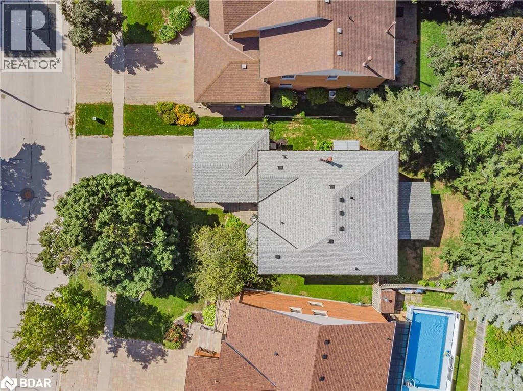 Hurst Drive to Golden Meadow to River Ridge Rd Nestled in the highly desirable Kingsridge community of Barrie, this timeless all-brick residence offers discerning buyers a prestigious address and a truly versatile home. Thoughtfully maintained and upgraded over the years, it features a classic floor plan ideal for families of all generations. Set on a mature 48.54 x 123.66 ft lot, the exterior is equally impressive, featuring fiberglass shingles (installed in 2024) complete with a 15-year workmanship warranty and a 50-year manufacturer's warranty, as well as new eavestroughs (2023). Additional highlights include new front-facing windows (2010), a charming Muskoka-inspired wood pergola, and a newer paved driveway in 2021, all of which contribute to the home's exceptional curb appeal and functionality. Inside, you'll find approximately 3000 sq ft of finished living space, starting with a grand tiled foyer and an elegant updated wooden staircase that makes a striking first impression. The main floor family room features a cozy wood-burning fireplace (WETT Certified), and the main floor office is ideal for working from home. The kitchen and breakfast area are filled with natural eastern light streaming through the patio door, offering tranquil views of the mature trees in the backyard. Keeping cool in the summer is easy with a new central air conditioning system installed in 2025. The home also offers four generous bedrooms, four bathrooms, and a nearly finished basement providing flexibility for growing families, a games area, a home gym, or multi-generational living. The backyard is private and calming in all seasons. Ideally located within walking distance to parks, tennis courts, schools, and shopping. Just a short drive to Lake Simcoe and the trails. Minutes away from commuter routes and the GO Train, this residence offers both a lavish lifestyle and a prime location. Whether you're upsizing, investing, or seeking your forever home, this residence likely checks all the boxes, and your next chapter begins here. (id:27476)
