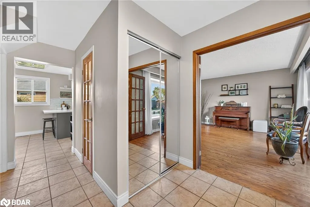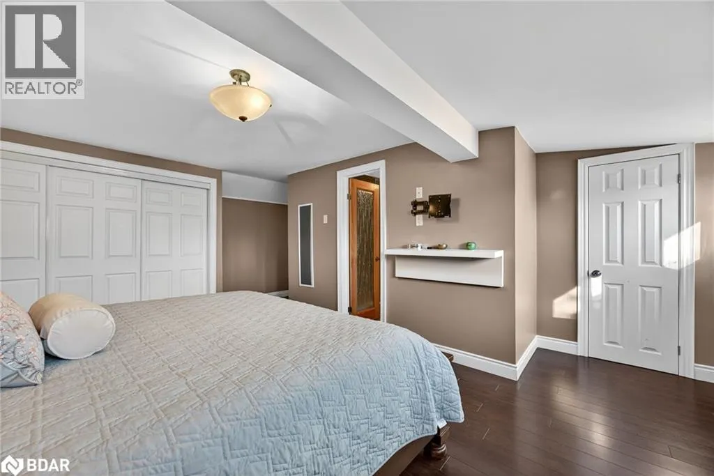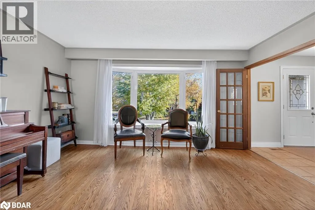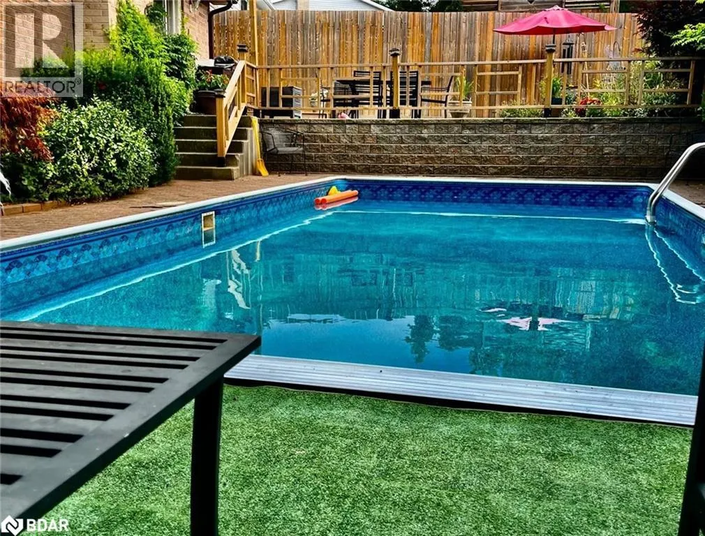 BAYVIEW PAST LITTLE TO GLENRIDGE A rare true 5 bedroom home, 4 car attached garage, 6 car driveway, in ground swimming pool set on a peaceful, coveted street in the welcoming Allandale Heights neighbourhood. Bathed in natural light, it is truly a rare offering. Less than 2 km to groceries, highway access, beach, and free boat launch; walking distance to lake, 3 great schools, rec center, sports courts, playground, trails, convenience shopping, outdoor ice rink and tobogganing, this home and location offer no shortage of enjoyment. The expansive, low maintenance property with useable space far exceeding the legal description features beautiful mature trees, perennial plantings all around, a balcony from which you can view the fireworks over Kempenfelt Bay and a 2-tiered backyard oasis measuring 80 ft across the back with in ground swimming pool, dining patio, privacy fence, custom railings, pool shed with contents and D.O.T. furniture. Inside you will find a warm, bright and comfortable environment. Plenty of space to be together or separate with 2500+ square feet. This traditional layout offers a WETT - certified wood - burning fireplace...think holidays and s'mores... Additional large family room/ rec space in full height, dry basement plus open concept, dining/kitchen/family room and a formal living room complete the entertainment spaces. Upstairs you will find 5 bedrooms. The large, private primary suite with 2 closets and spacious marble walk-in shower is separated from the other bedrooms/bath for ultimate relaxation. ESA certified electrical upgrades, quartz kitchen counters, energy star appliances are only some of the many bonuses to be found at this meticulously maintained property. 4 car garage plus new 6 car driveway allow plenty of free legal storage for boats, RVs, toys and cars. Note: the lighting in some photos does not highlight the warmth and brightness of this lovely, move-in ready, family home. (id:27476)