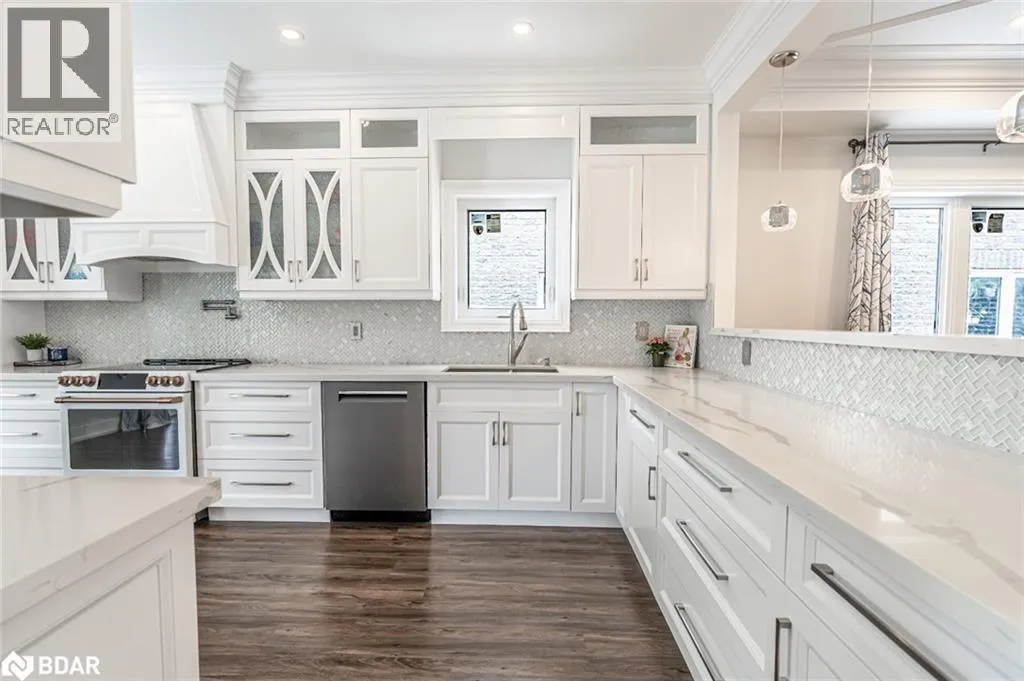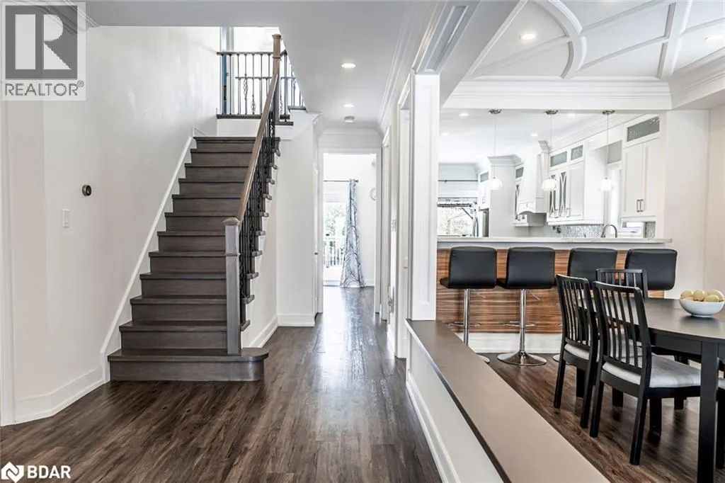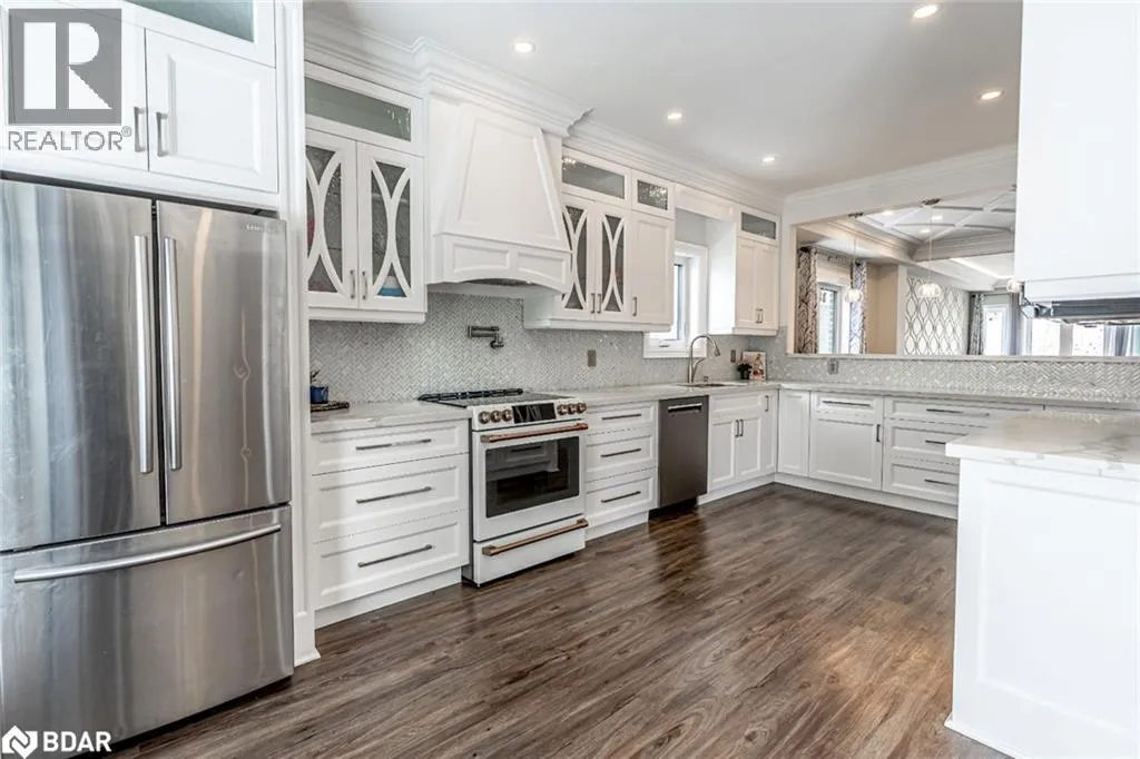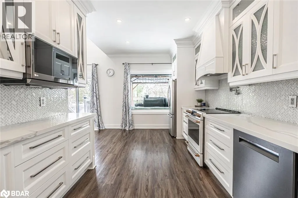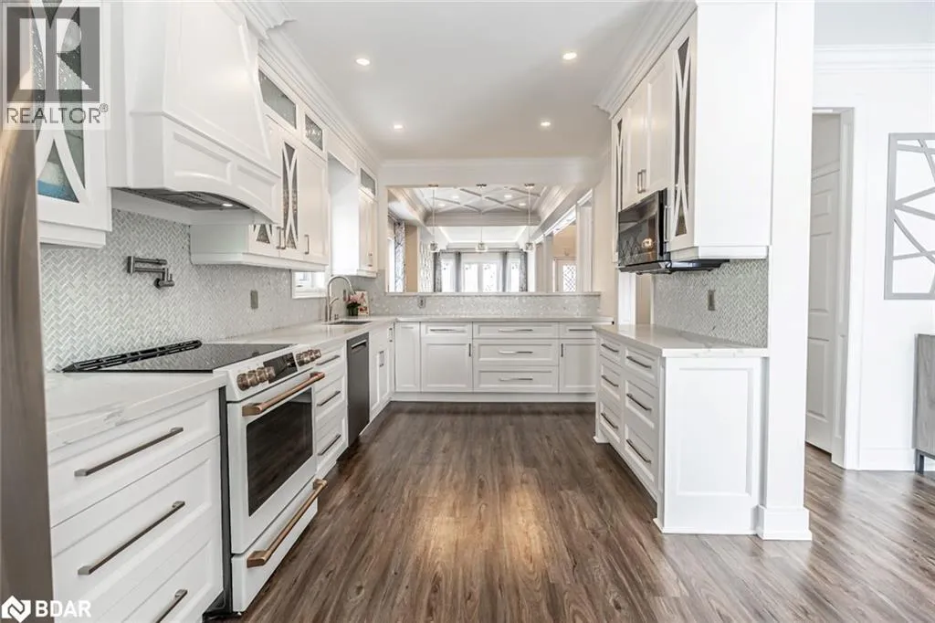 Highway 27/Ardagh Road/McIntyre Drive YOUR DREAM HOME JUST HIT THE MARKET AND ITâS EVEN BETTER IN PERSON! Tucked away on a quiet street with no direct neighbours in front or behind, this jaw-dropping home backs onto a tranquil pond and delivers over 3,000 sq ft of magazine-worthy living space. Step outside your door to Ardagh Bluffsâ scenic trails, with schools, parks, and playgrounds just a short stroll away. Quick access to County Road 27 and Highway 400 makes your commute easy. Inside, every detail stuns. The designer kitchen is a total knockout, featuring white cabinetry with glass inserts, quartz counters, crown moulding, pot lights, a herringbone backsplash, a Café Induction range and a convenient pot filler that ties it all together. The living room features a sleek tray ceiling and a 3D feature wall. The dining room shines with coffered ceilings and pot lights. The family room is bold and beautiful, featuring a gas fireplace and a geometric accent wall. Need space to work or play? The main-floor office and stylish laundry room with garage access deliver function with flair. Upstairs, the oversized primary suite boasts a walk-in closet and a spa-like ensuite. Renovated bathrooms and upgraded luxury vinyl flooring maintain a consistent style throughout. The fully fenced backyard is summer-ready with a large deck, a gazebo, and peaceful pond views. Big-ticket updates include newer windows and patio door, R60 attic insulation, updated shingles, a new furnace and A/C, and a sump pump system with waterjet backup. This #HomeToStay is the total package! (id:27476)