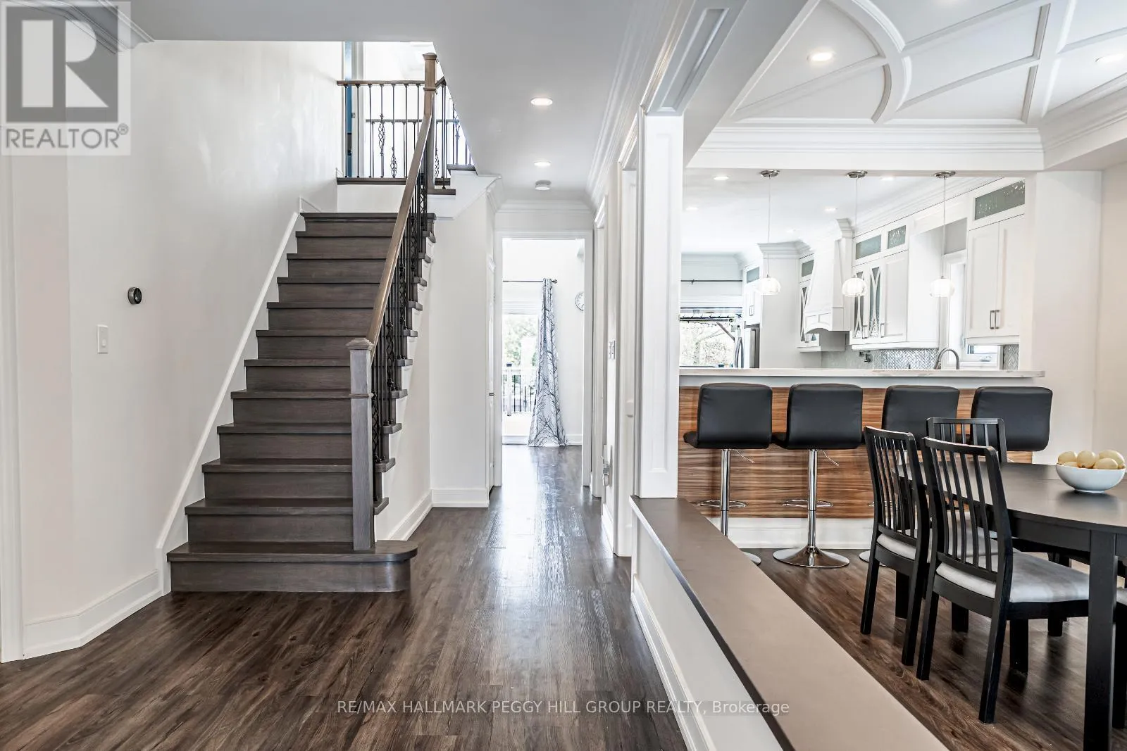 Cross Streets: Ardagh Road/McIntyre Drive. ** Directions: Highway 27/Ardagh Road/McIntyre Drive. YOUR DREAM HOME JUST HIT THE MARKET AND IT'S EVEN BETTER IN PERSON! Tucked away on a quiet street with no direct neighbours in front or behind, this jaw-dropping home backs onto a tranquil pond and delivers over 3,000 sq ft of magazine-worthy living space. Step outside your door to Ardagh Bluffs' scenic trails, with schools, parks, and playgrounds just a short stroll away. Quick access to County Road 27 and Highway 400 makes your commute easy. Inside, every detail stuns. The designer kitchen is a total knockout, featuring white cabinetry with glass inserts, quartz counters, crown moulding, pot lights, a herringbone backsplash, a Café Induction range and a convenient pot filler that ties it all together. The living room features a sleek tray ceiling and a 3D feature wall. The dining room shines with coffered ceilings and pot lights. The family room is bold and beautiful, featuring a gas fireplace and a geometric accent wall. Need space to work or play? The main-floor office and stylish laundry room with garage access deliver function with flair. Upstairs, the oversized primary suite boasts a walk-in closet and a spa-like ensuite. Renovated bathrooms and upgraded luxury vinyl flooring maintain a consistent style throughout. The fully fenced backyard is summer-ready with a large deck, a gazebo, and peaceful pond views. Big-ticket updates include newer windows and patio door, R60 attic insulation, updated shingles, a new furnace and A/C, and a sump pump system with waterjet backup. This #HomeToStay is the total package! (id:27476)