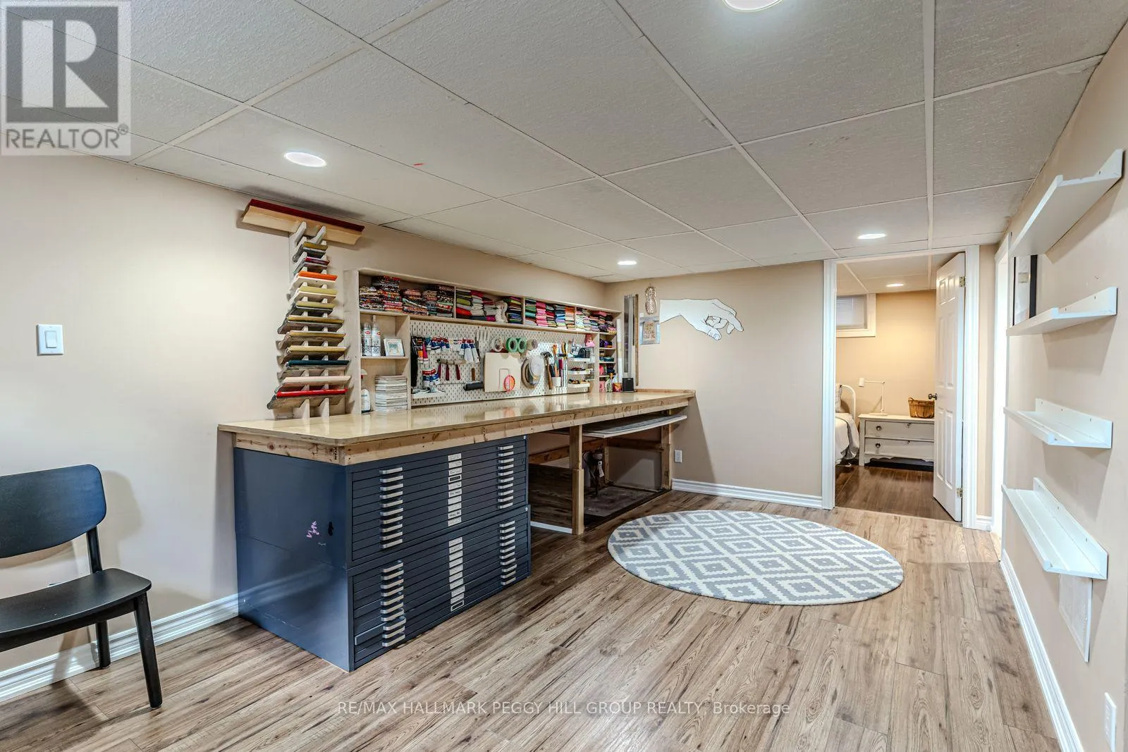 Cross Streets: Newton St/Gunn St. ** Directions: Bayfield St/Grove St E/Newton St. CHARACTER-FILLED EAST END BUNGALOW WITH MODERN UPDATES, A DETACHED GARAGE & BACKING ONTO A SCHOOL! This charming East End bungalow is perfectly situated less than five minutes from downtown shops, dining, Johnson's Beach, the MacLaren Art Centre, and the Barrie Public Library, with parks and recreation close by. Families will love being able to walk to both Oakley Park Public School and Barrie North Collegiate, creating an easy daily routine. The exterior offers curb appeal with vinyl siding in a board and batten style, a welcoming porch, and a tidy lawn, while the fully fenced backyard extends your living space with a large deck, soffit lighting, gas BBQ hookup, and peaceful views backing onto Oakley Park P.S. Natural light fills the living room, complemented by pot lights, crown moulding, and a bay window that adds warmth and charm. The updated kitchen features two-tone cabinetry with plenty of storage, granite counters that carry through to the backsplash, stainless steel appliances, undermount lighting, and patterned flooring. Two comfortable bedrooms are located on the main level, served by an updated bathroom with a modern tile surround, a built-in shower niche, and heated floors. The rear door provides easy access to the basement area, which offers future potential for an in-law suite and currently hosts a third bedroom, a spacious rec room, a full bathroom, and generous storage. A detached 24' x 12' garage is ideal for parking, hobbies, or extra storage, and the driveway fits four vehicles with ease. Move-in ready and full of character, this East End gem is a wonderful place to call home! (id:27476)