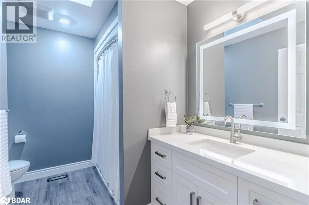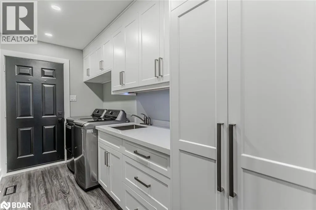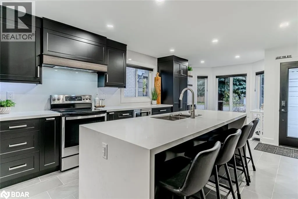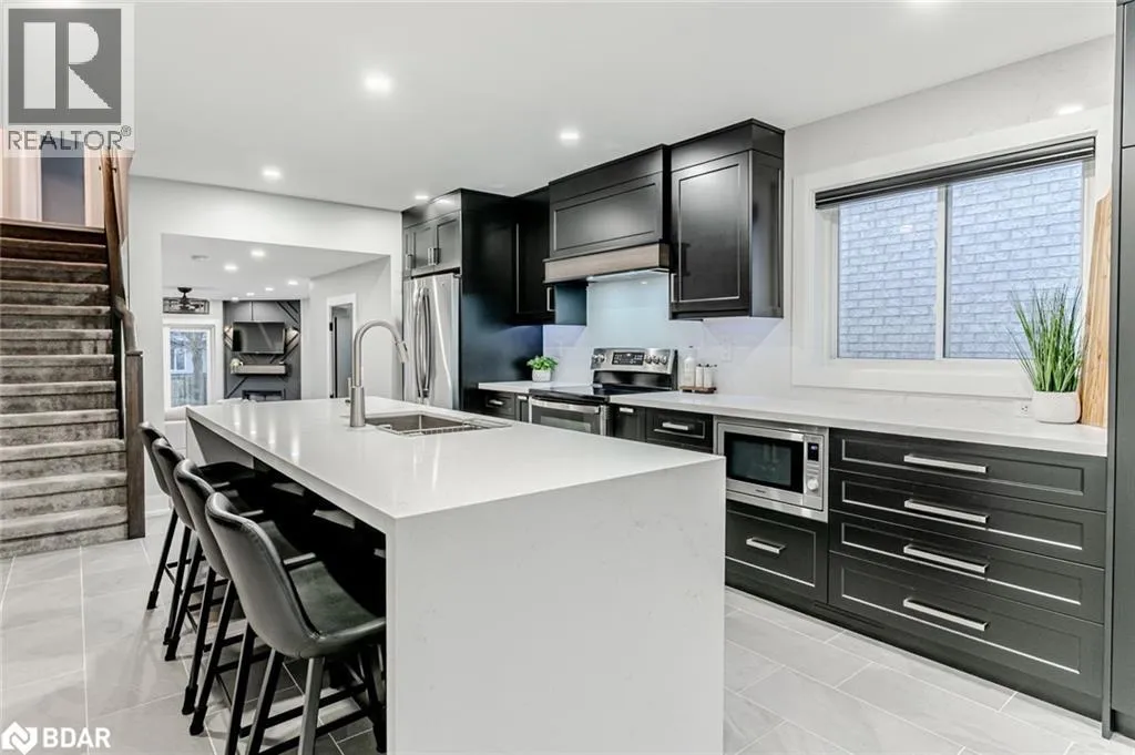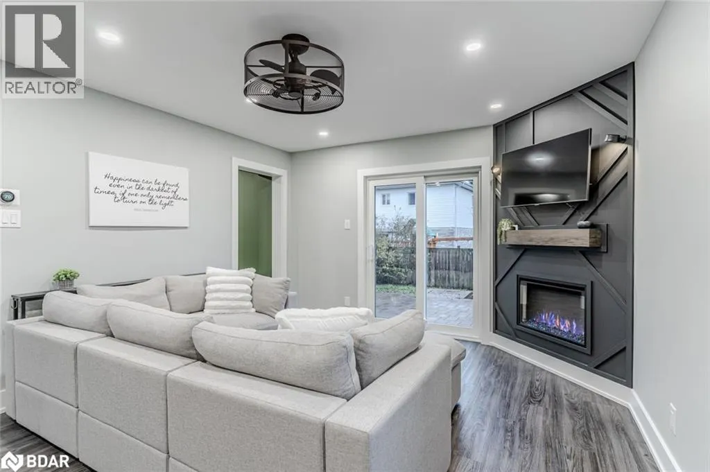 Mapleview Dr W/Marsellus Dr/Downing Cres MODERN FAMILY HOME WITH A SLEEK DESIGNER KITCHEN, PRIVATE BACKYARD RETREAT, & PREMIUM UPGRADES THROUGHOUT! Welcome to a home where comfort, style, and everyday convenience come together in one irresistible package. Nestled on a quiet crescent in the heart of Barrieâs Holly neighbourhood, this detached link home is perfectly placed for family living - just steps from parks, schools, transit, and shopping, and minutes from the scenic trails of Ardagh Bluffs, a community centre, Highway 400, and Kempenfelt Bayâs boardwalk and beaches. Step inside to a professionally renovated interior where a considerable investment in premium upgrades showcases exceptional craftsmanship and purposeful design. The bright, open-concept main floor sets the tone with sleek pot lights, custom motorized blinds, and a stunning eat-in kitchen that blends beauty with function, featuring custom built-ins, a bold accent wall, a sun-drenched bay window, and a large island with seating for four. The living room invites you to unwind beside a modern electric fireplace framed by a striking feature wall, while a sliding glass door opens to a private, fully fenced backyard retreat with a spacious patio and green space to play, garden, or simply soak up the sunshine. The main floor is complete with a flexible office space, a laundry room, and a stylish 3-piece bath. Upstairs, three generous bedrooms await, including a peaceful primary with a walk-in closet, all served by a contemporary 4-piece bath. The highlights donât stop there - under-cabinet RGB lighting in the kitchen and laundry room adds a playful yet practical vibe, while a newer A/C unit and furnace with an integrated humidifier ensure year-round comfort. With a newer insulated garage door, a recently updated roof, and no sidewalk for easy upkeep, this home is as functional as it is beautiful. From morning routines to evening gatherings, every detail in this #HomeToStay has been thoughtfully crafted to support comfortable, inspired living! (id:27476)