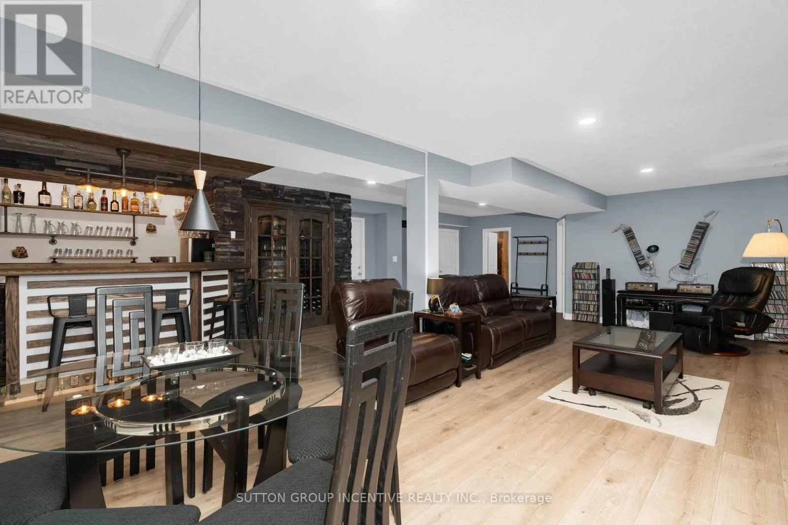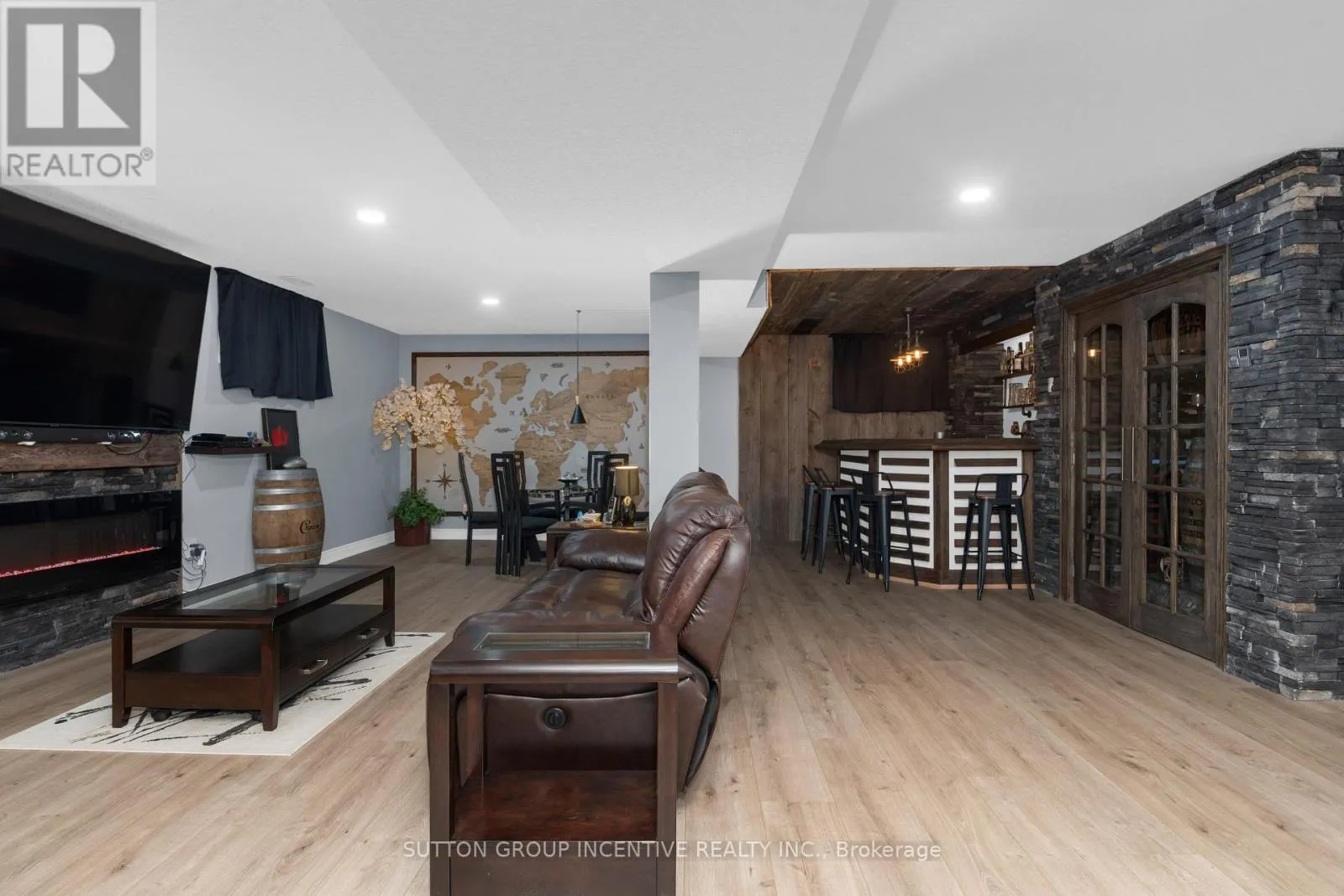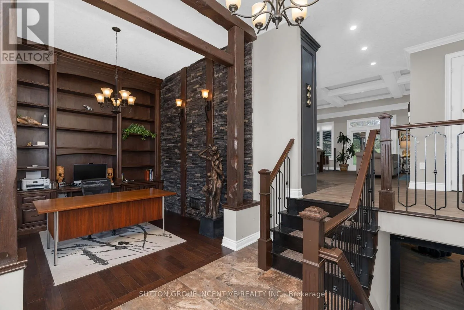 Cross Streets: Ardagh/Snowshoe. ** Directions: Ardagh to Snowshoe Trail. This stunning custom-built stone and stucco home offers exceptional curb appeal and style with over 100k in recent upgrades. Step inside to a grand office featuring custom cabinetry, stone accents, timber beams, and soaring ceilings - the perfect workspace to inspire productivity and creativity. An open-concept layout flows seamlessly from the kitchen through the living and dining areas, showcasing gorgeous new premium flooring (2024). The kitchen is a true showpiece with refreshed cabinetry, quartz countertops which extend into the backsplash (2025), under-cabinet lighting, built in wall appliances, induction style stovetop and a striking coffered ceiling that adds a touch of sophistication. Step outside to the private backyard - complete with pergolas, a hot tub, fully fenced yard (2024), and a charming new cedar plank shed (2024). Inside, unwind in the oversized primary bedroom with a spacious walk-in closet and a luxurious spa-like ensuite. Two additional large bedrooms and a beautifully finished 4-piece bathroom offer plenty of space for family or guests.The lower level impresses with an expansive open-concept family room, a stylish bar, custom wine cellar, and new premium flooring throughout. A fourth bedroom, additional bathroom, and an infrared sauna complete this incredible space - ideal for relaxation and entertaining. The fully finished, heated garage with sleek epoxy flooring is the perfect spot to store your summer wheels in style! (id:27476)