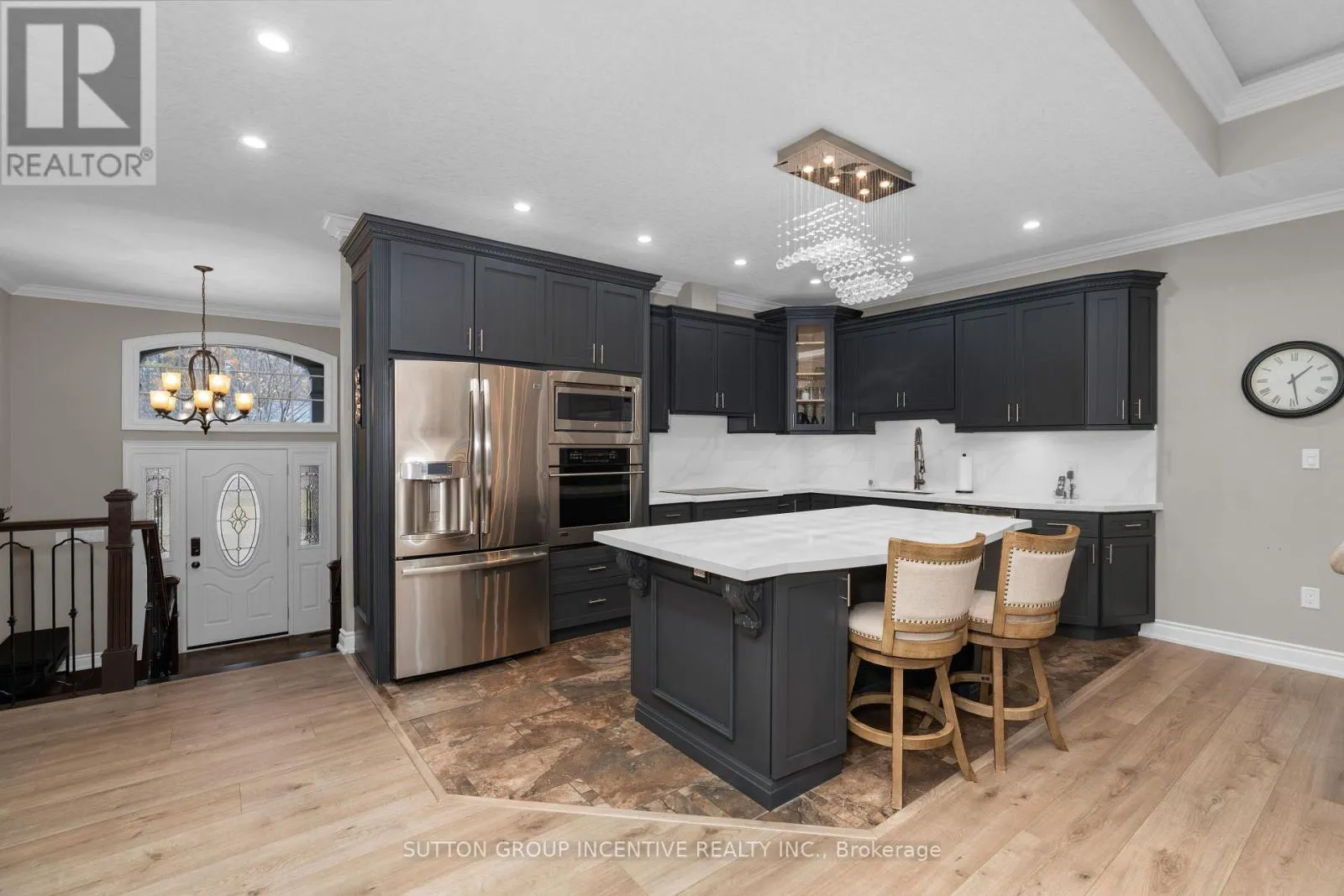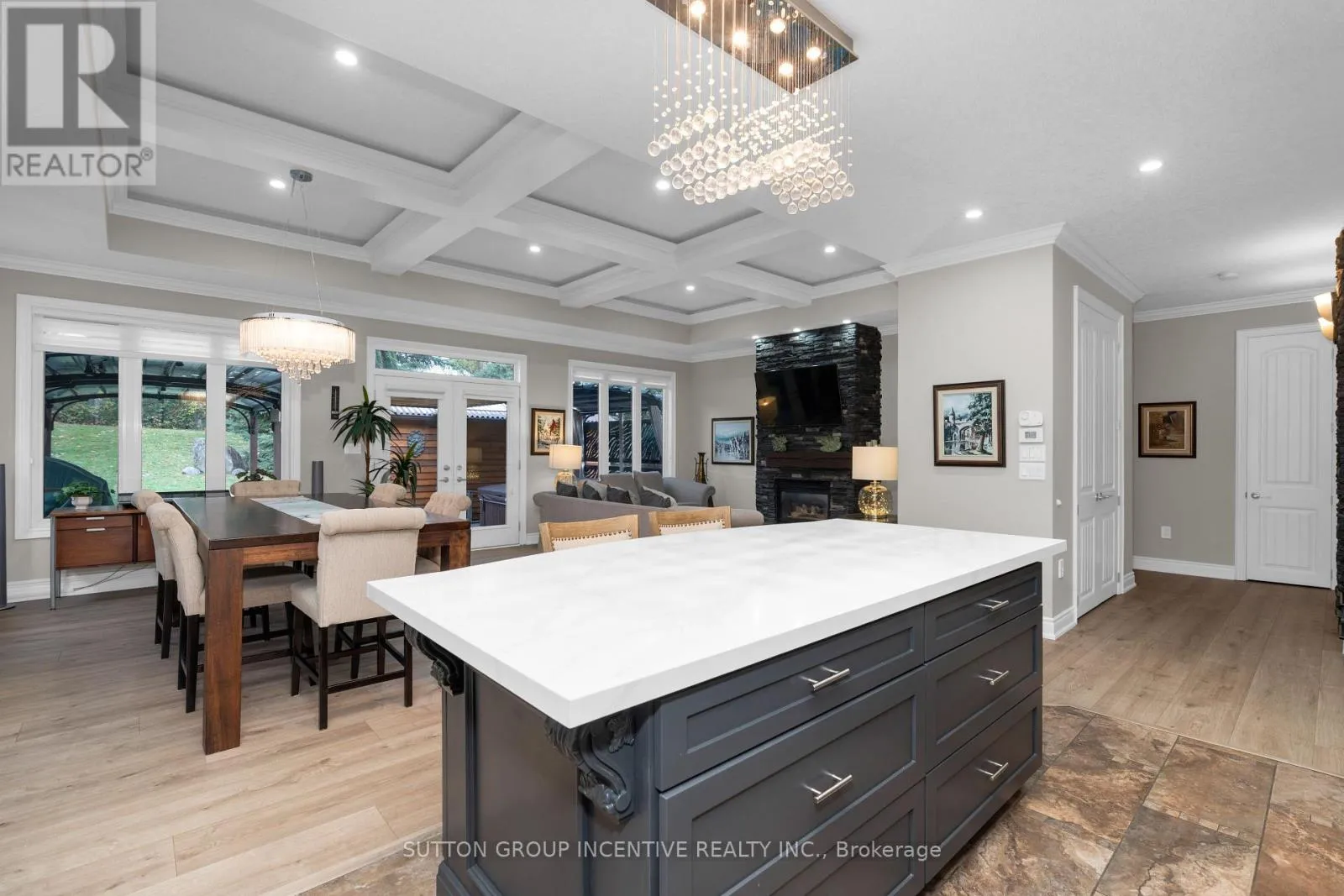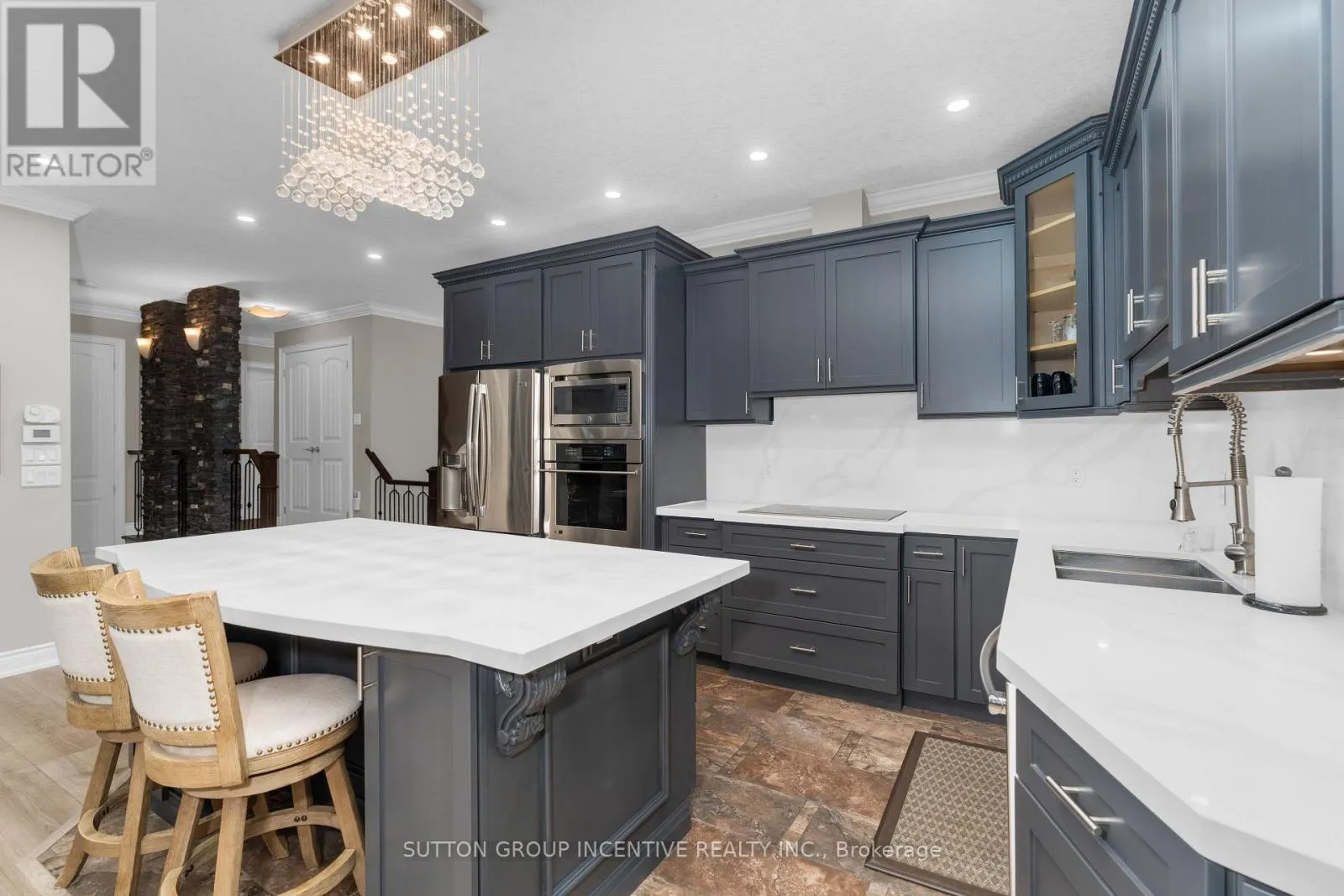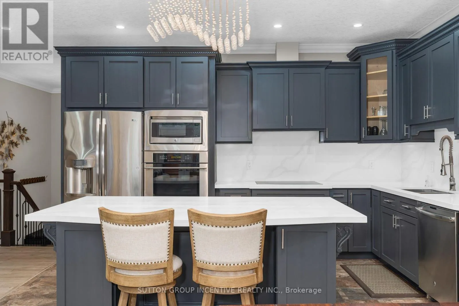 Cross Streets: Ardagh/Snowshoe. ** Directions: Ardagh to Snowshoe Trail. This stunning custom-built stone and stucco home offers exceptional curb appeal and style with over 100k in recent upgrades. Step inside to a grand office featuring custom cabinetry, stone accents, timber beams, and soaring ceilings - the perfect workspace to inspire productivity and creativity. An open-concept layout flows seamlessly from the kitchen through the living and dining areas, showcasing gorgeous new premium flooring (2024). The kitchen is a true showpiece with refreshed cabinetry, quartz countertops which extend into the backsplash (2025), under-cabinet lighting, built in wall appliances, induction style stovetop and a striking coffered ceiling that adds a touch of sophistication. Step outside to the private backyard - complete with pergolas, a hot tub, fully fenced yard (2024), and a charming new cedar plank shed (2024). Inside, unwind in the oversized primary bedroom with a spacious walk-in closet and a luxurious spa-like ensuite. Two additional large bedrooms and a beautifully finished 4-piece bathroom offer plenty of space for family or guests.The lower level impresses with an expansive open-concept family room, a stylish bar, custom wine cellar, and new premium flooring throughout. A fourth bedroom, additional bathroom, and an infrared sauna complete this incredible space - ideal for relaxation and entertaining. The fully finished, heated garage with sleek epoxy flooring is the perfect spot to store your summer wheels in style! (id:27476)