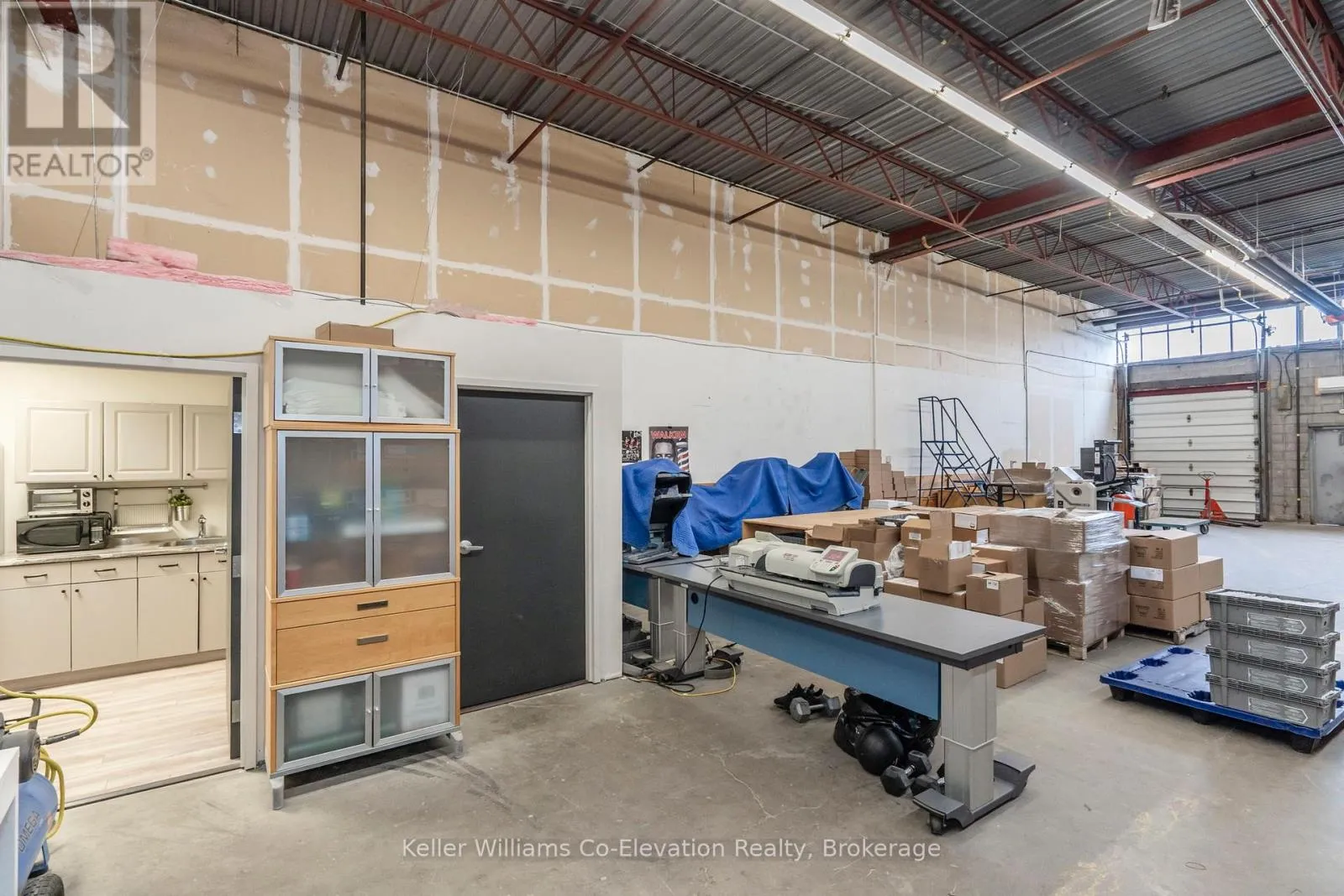 Cross Streets: Big Bay Point Rd/Bayview Dr. ** Directions: Hwy 400 N to Essa Rd to Fairview Dr to Big Bay Point Rd to Bayview Dr. Prime 3,000 sq ft industrial end unit available in Barrie's thriving south end. This bright, well-maintained space offers the perfect blend of professional office and functional warehouse, designed for a modern business looking to grow without compromise. Enjoy a clean, updated interior featuring two washrooms, a dedicated kitchenette, new laminate office flooring, upgraded lighting, and efficient radiant heat throughout. The layout includes front offices with A/C and a spacious warehouse with a dock-level door, ideal for shipping, storage, or light manufacturing. Conveniently located minutes from Highway 400 and steps from public transit, this unit provides easy access for staff, clients, and deliveries. Ample front and rear parking make operations seamless, and the surrounding area offers a variety of restaurants, shopping, and amenities. A turnkey space in a highly accessible, high-growth corridor - perfect for companies ready to elevate their presence. Tenant pays utilities. Annual escalations apply. (id:27476)