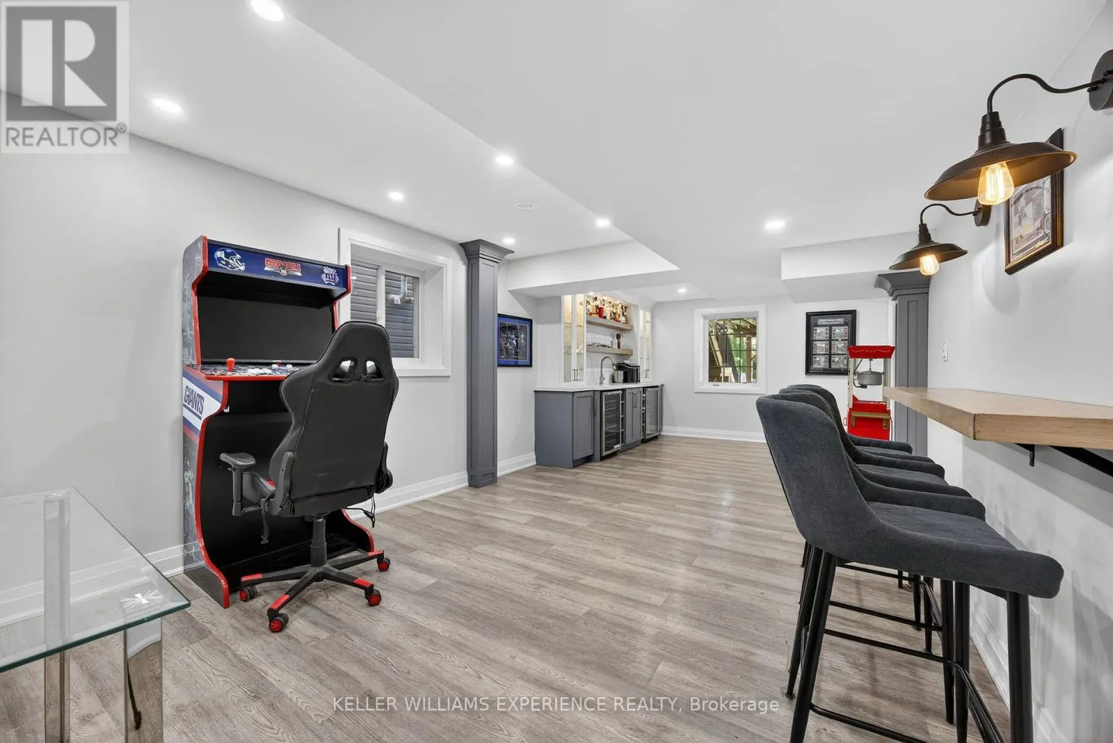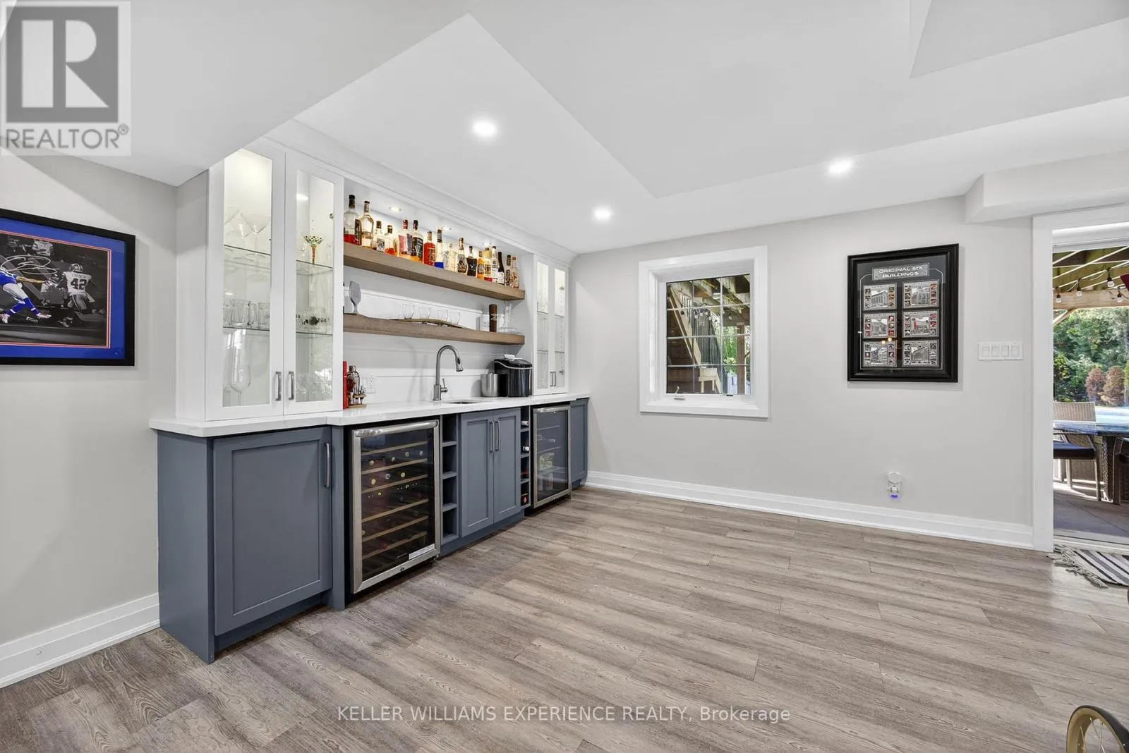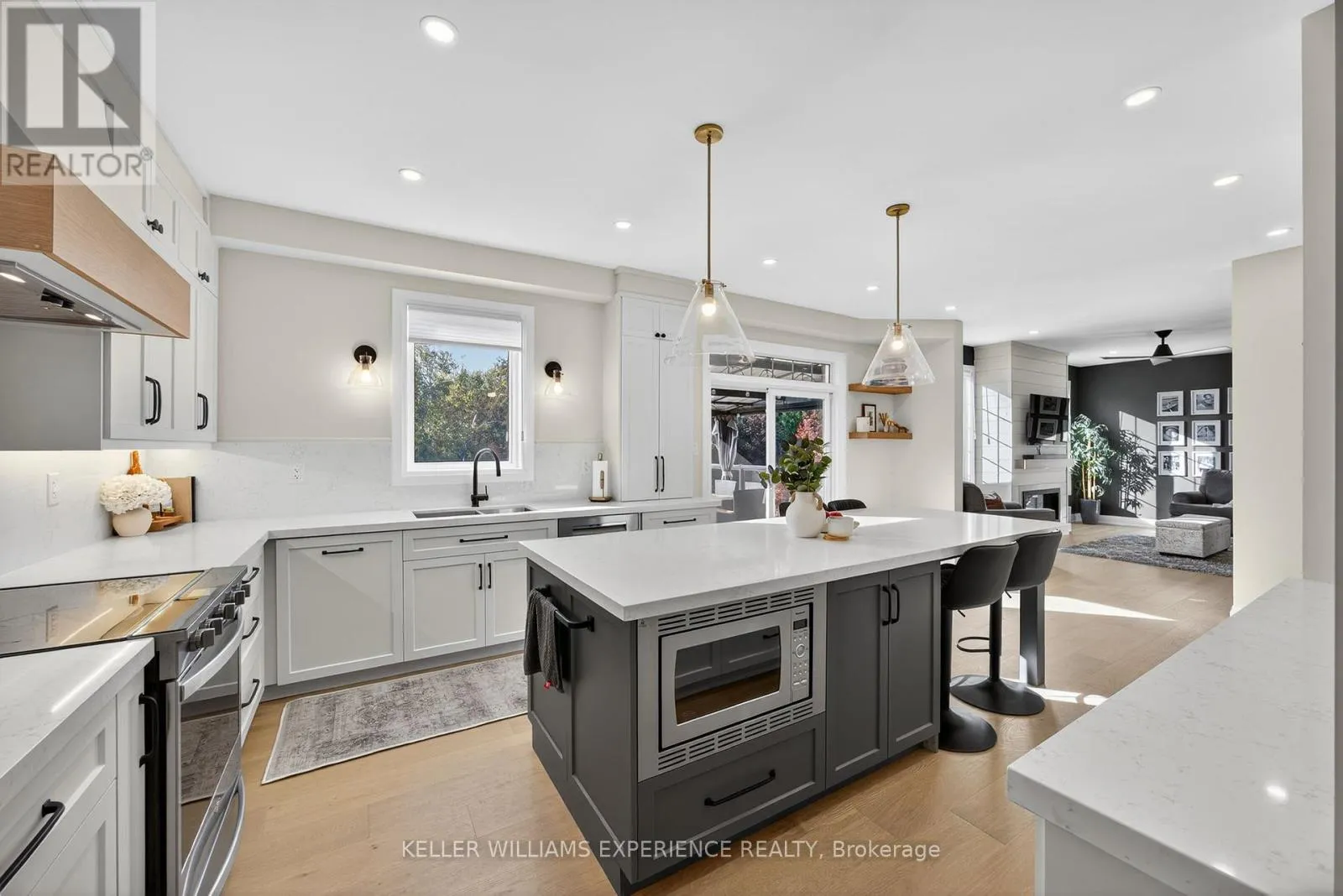 Cross Streets: PRINCE WILLIAM WAY / THE QUEENSWAY / REGALIA WAY. ** Directions: BIG BAY POINT ROAD / PRINCE WILLIAM WAY / THE QUEENSWAY / REGALIA WAY. Fully Renovated Innishore Beauty Backing onto EP Land with Walk-Out Basement & In-ground Heated Saltwater Pool! Welcome to this top-to-bottom renovated all-brick 2-storey showstopper, perfectly positioned on quiet cul-de-sac on a premium with no neighbours behind. The main floor impresses with 9 ft smooth ceilings, pot lights, motorized window coverings, and wide-plank hardwood throughout. Entertain in the versatile living/dining space, or cook in your dream kitchen featuring crisp white cabinetry, quartz counters, timeless backsplash, soft-close drawers, appliance garage, and a large island that brings everyone together. Unwind in the cozy family room with a gas fireplace and private backyard views. A modern powder room and stylish laundry with herringbone tile with custom built-ins, laundry sink, and garage access add everyday convenience. Upstairs, retreat to the luxurious primary suite with a custom entertainment wall, walk-in closet, and a spa-inspired 5-piece ensuite with heated floors, dual vanity, and standalone tub. Three additional bedrooms share an updated 5-piece bath. The walk-out lower level is an entertainers dream with a spacious rec room, gas fireplace, built-ins, speakers, a games area with bar with stunning custom cabinetry, a 4-piece bath with frameless glass shower, and a 5th bedroom perfect for large families or guests. Step outside to your private backyard oasis featuring a deck with glass railings for unobstructed views, lower-level patio, and inground heated saltwater pool, all surrounded by mature trees and nature. This home is truly move-in ready and made for modern family living. (id:27476)