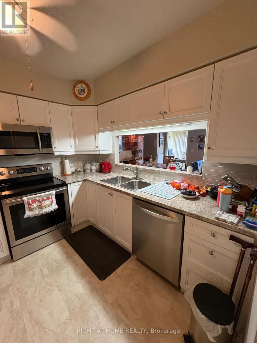 Cross Streets: Madelaine & Dean. ** Directions: Big Bay Pt or Madelaine to Dean. his Essa Suite is 1100sq ft with 2 bedrooms, 2 full baths with one shower walk-in with safety bars. Primary bedroom has his and hers closets and ensuite bath. The second bedroom closet has built-in Wardrobe. There is also a large living room/dining room and a separate solarium. It has a lovely upgraded kitchen with stainless steel appliance and ceramic back splash, and a Seineg Ceiling Fan. The Terraces of Heritage Square is an Adult over 60+ building, with lots of amenities. These buildings were built with wider hallways and with handrails. Ground floor lockers and a ground floor covered but open aired garage with designated parking spots and a car wash station. Gorgeous roof top gardens off the second floor, and so much more. Bathrooms with safety bars and heat lamps. Its independent living with all the amenities you will need. Walking distance to the library, restaurants and groceries. ** Open House tour every Tuesday at 2pm Please meet in lobby of 94 Dean Ave ** (id:27476)