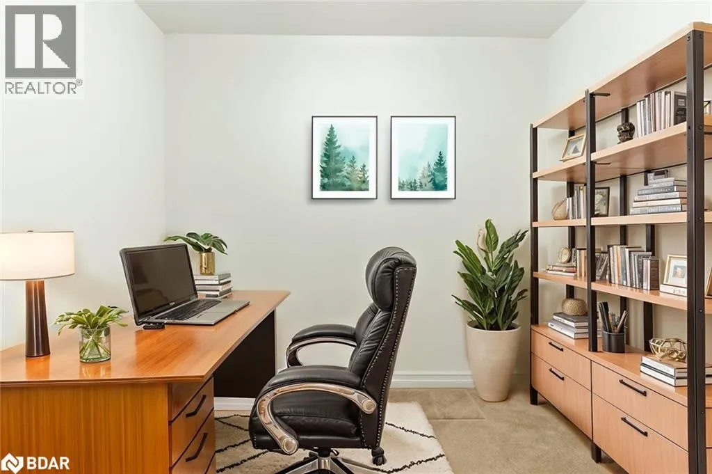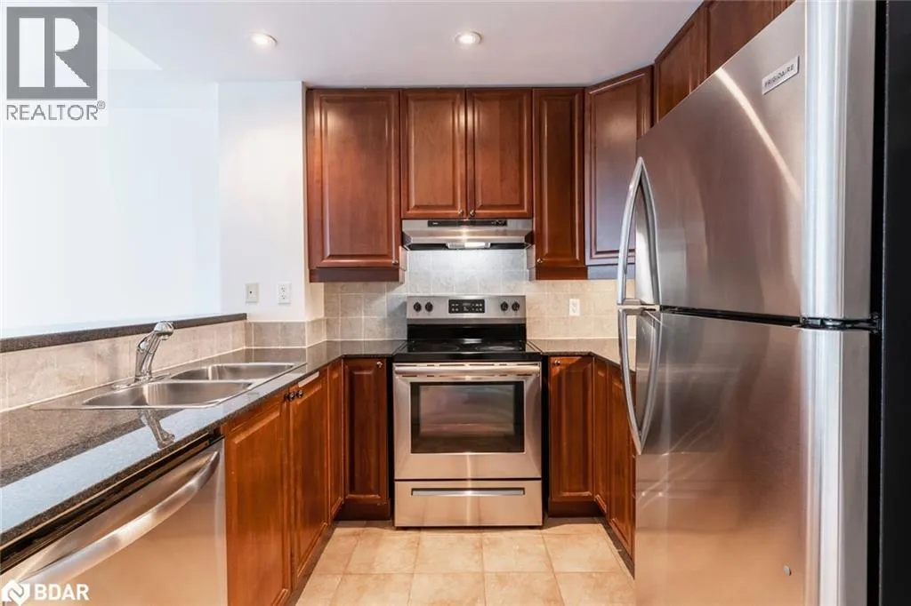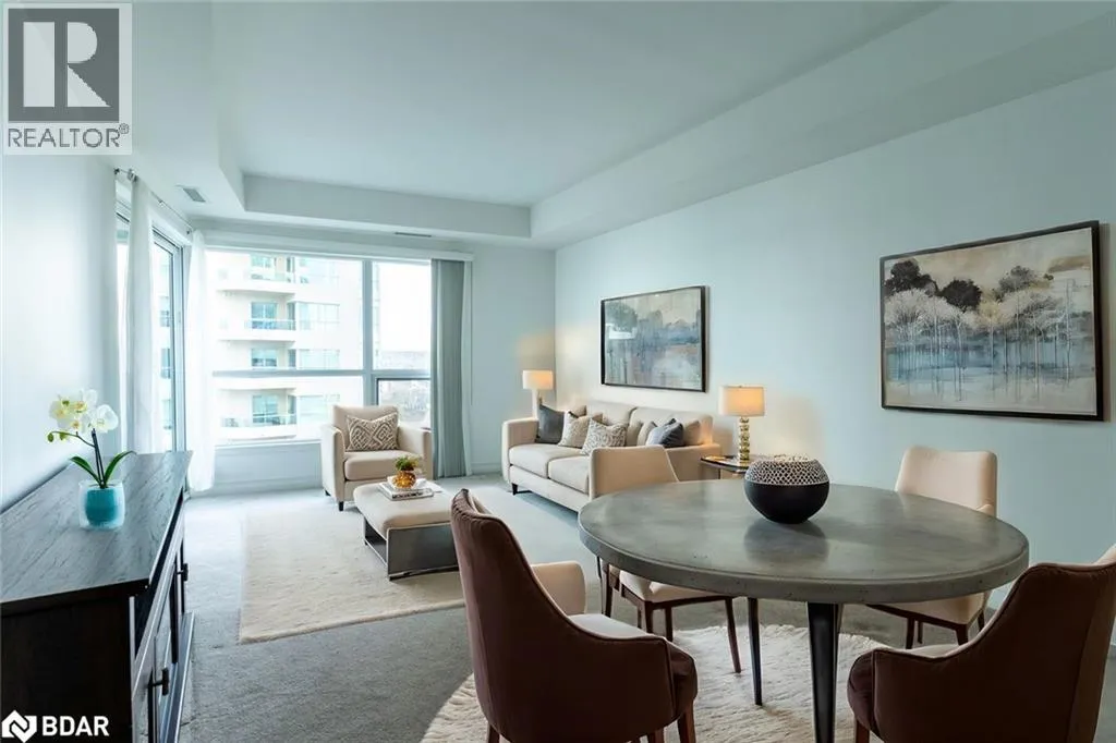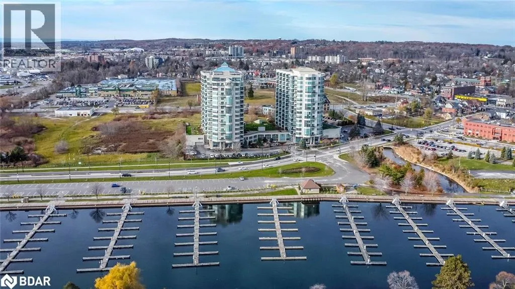 Highway 400 N/Dunlop St W/Toronto St 1 BED + DEN CONDO WITH VIEWS OF KEMPENFELT BAY, UNDERGROUND PARKING, STORAGE LOCKER & PREMIUM BUILDING AMENITIES! Picture starting your mornings with the shimmer of Kempenfelt Bay just across the street and ending your evenings on a private balcony watching boats glide through the marina as the sky gently softens into warm sunset hues. This 1-bedroom plus den condo located at 6 Toronto Street #1005 places you in the heart of downtown Barrie, where café patios, boutique shopping, scenic waterfront trails, the sandy beach and beautifully connected biking and walking paths shape a lifestyle that feels both relaxed and alive. Set within the sought-after Waterview Condominiums, a sophisticated grand lobby and refreshed common areas create an impressive first impression, while premium amenities, including a pool, sauna, hot tub, exercise room, games room, library, guest suites, and visitor parking, elevate everyday living far beyond expectations. Natural light pours through the bright, open-concept layout, flowing effortlessly to the walkout balcony with sweeping views of the bay and marina that never lose their magic. The well-equipped kitchen shines with stainless steel appliances, tiled backsplash, tile flooring and a breakfast bar that invites slow mornings and lingering conversations. A calming primary bedroom with a walk-in closet offers a peaceful retreat, while the den transforms with ease into a home office or reading corner. In-suite laundry adds practicality, and an owned underground parking space with an exclusive storage locker completes a setting where waterfront scenery, downtown energy and refined living come together to create a #HomeToStay that feels impossible to forget and even harder to leave! (id:27476)
