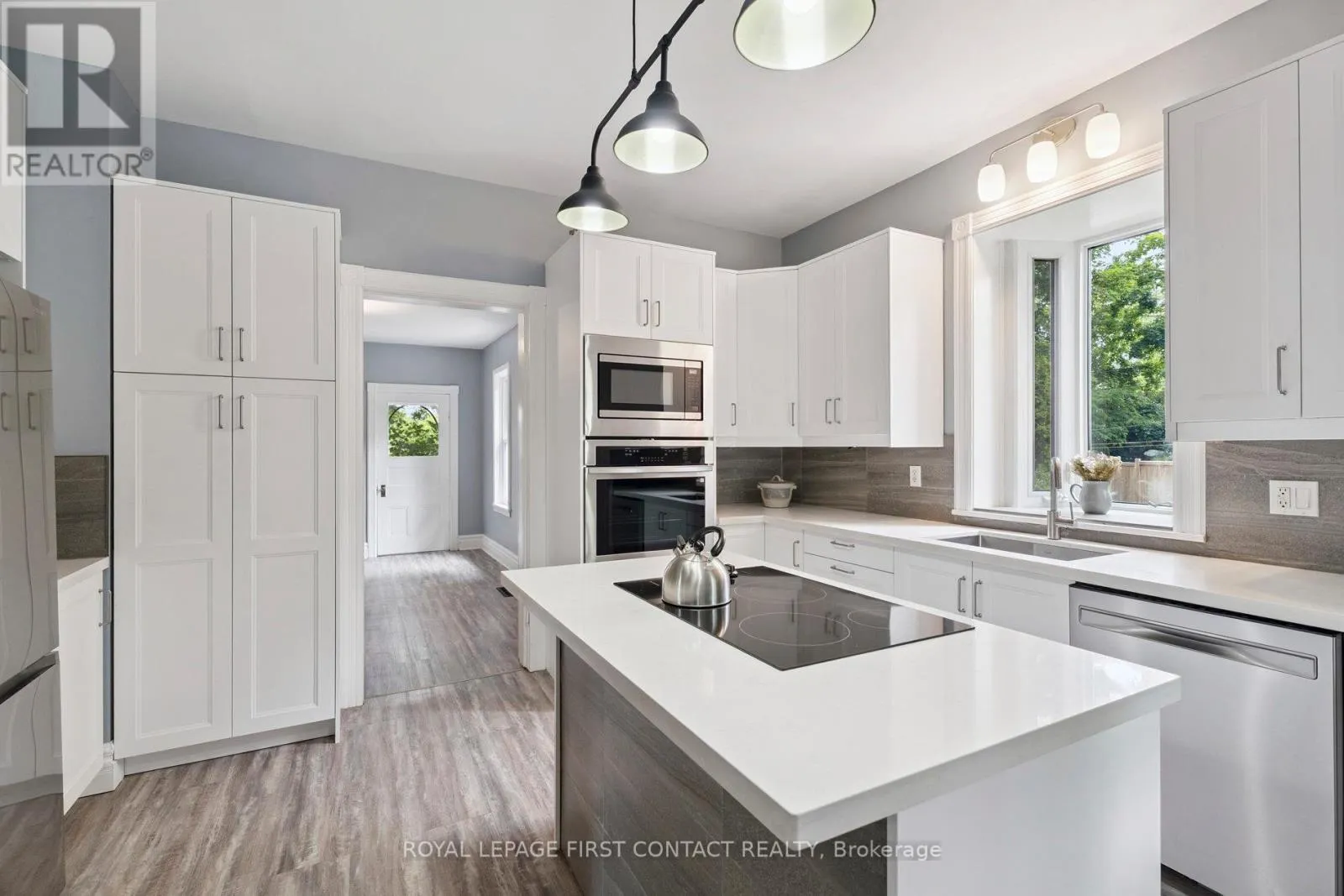 Cross Streets: Burton Ave & Essa Road. ** Directions: Burton Ave between Essa Road and Bayview Dr. Beautifully renovated Century Home - Allendale (Barrie) walk to Go Train, central to all amenities. Old world charm combined with professional renovation. Move in condition. New Kitchen 2025 with five stainless steel appliances. Upstairs features three good sized bedrooms, recently remodeled bath plus fabulous sun room. Curb appeal galore. Wrap around veranda. Long driveway around to the back with a garage suitable for a small car if required but an awesome garden shed. All new light fixtures, freshly painted and super clean (id:27476)