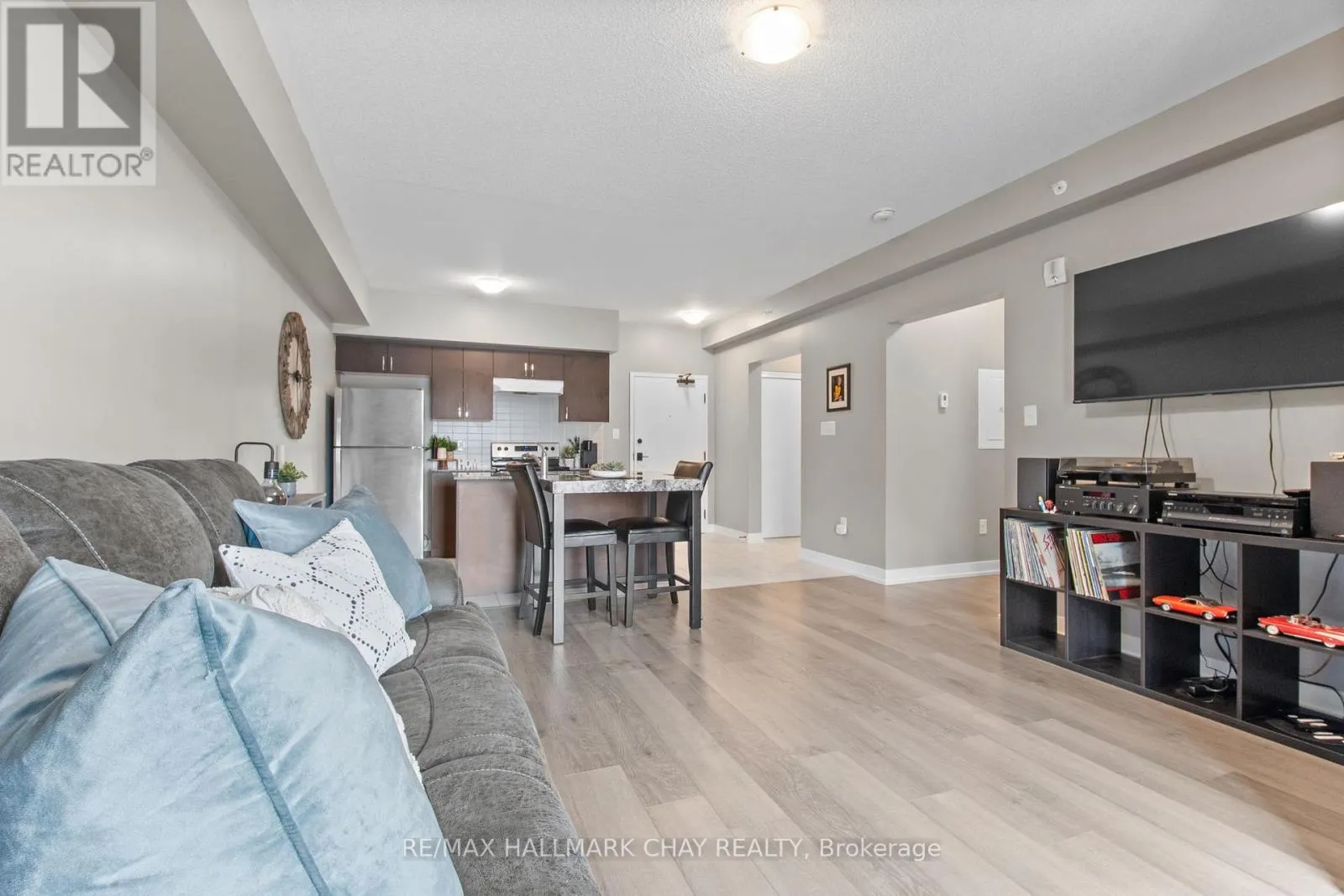 Mapleview Dr E/Spice Way Beautiful 1-bedroom plus den condo overlooking the park offers a functional and stylish layout perfect for first-time buyers, downsizers, or investors. Step inside to discover an open-concept living space with contemporary finishes, a sleek kitchen featuring island with breakfast far and stainless steel appliances, and a bright living room with access to your private balcony- ideal for enjoying your morning coffee or unwinding at the end of the day.The spacious primary bedroom includes a large closet, and the versatile den offers the perfect spot for a home office, reading nook, or guest space. The bathroom features a modern stand-up shower, and the convenience of in-suite laundry adds to the easy, low-maintenance lifestyle this unit offers. Comes with one outdoor parking space. Located in the sought-after Bistro 6 community, this culinary-inspired development offers impressive amenities including a community kitchen, spice library, gym, yoga area, outdoor BBQ stations, and a playground. Residents enjoy a true sense of community with thoughtfully designed spaces that bring people together.Conveniently situated in Barries south end, you're just minutes to the Barrie South GO Station, Highway 400, shopping, restaurants, schools, and parks. This location makes commuting a breeze while keeping you close to everything you need. Whether you're looking to get into the market or add to your portfolio, this condo offers style, value, and a vibrant lifestyle. (id:27476)