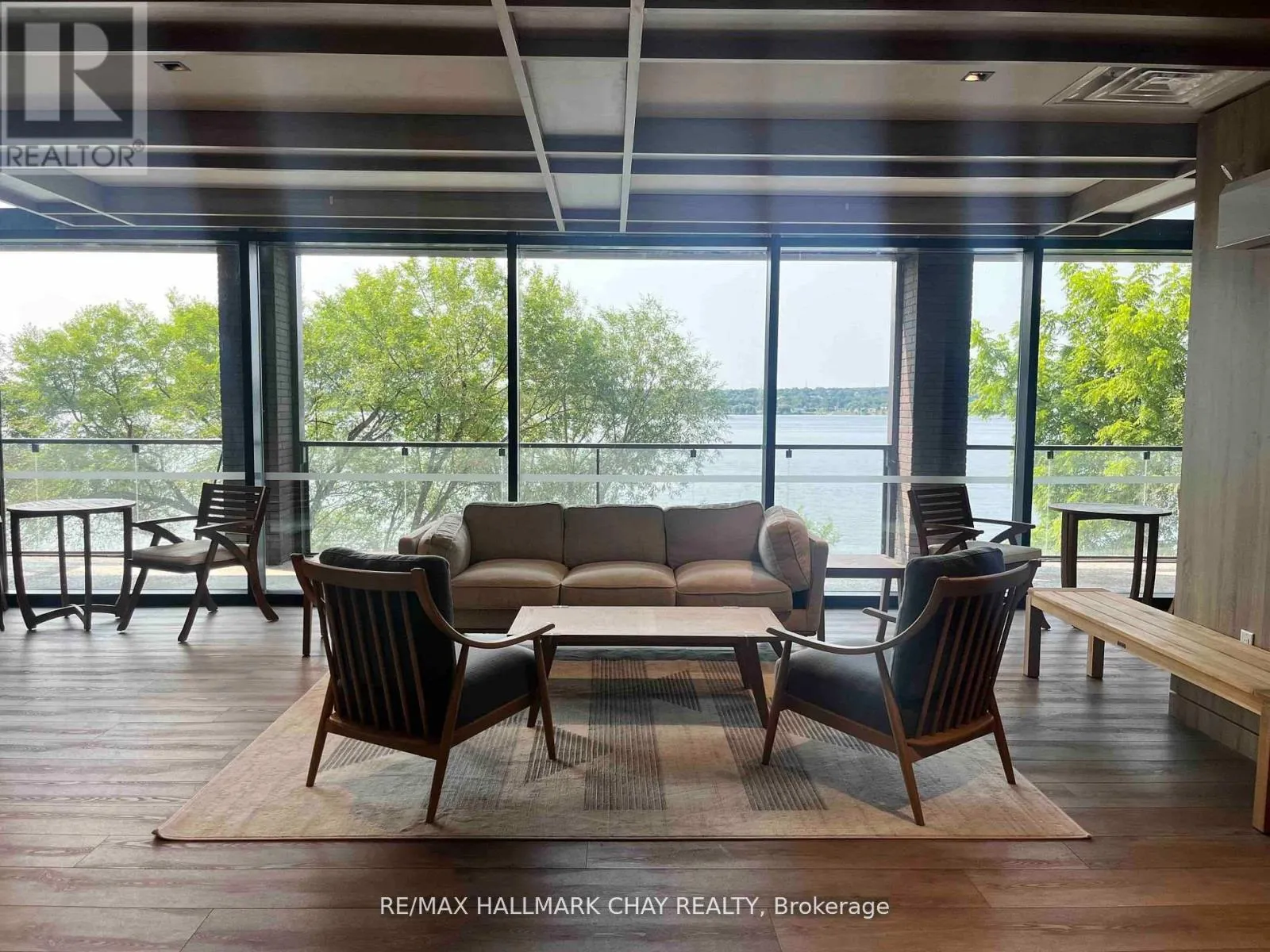 Mulcaster to Dunlop Welcome to the Lakhouse, Barrie's newest luxury condominium. Lakhouse is a contemporary, 10-storey resort-inspired condominium idyllically located on the shores of Lake Simcoe in the vibrant city of Barrie. Live and experience the views of the 5th floor overlooking lush greenery. Over 1100sqft of living space you will be sure to love the vibrancy and luxury of living right on the Barrie's water edge and everything the building has to offer. More than just a building, this space offers an enviable lifestyle. Surrounded by the beauty of nature and breathtaking lakeside views, along with luxurious amenities and downtown. The LakClub features a party room, catering kitchen, hot tub, sauna, steam room, fitness studio & dining/meeting room complete with a double-sided fireplace. Also, two roof top terraces, BBQ stations & fireplaces. Steps to the walking/biking trails, beach, park, restaurants, shops, entertainment, and downtown festivals. Additional 24 Hour Concierge/security service, underground parking and storage locker included. (id:27476)