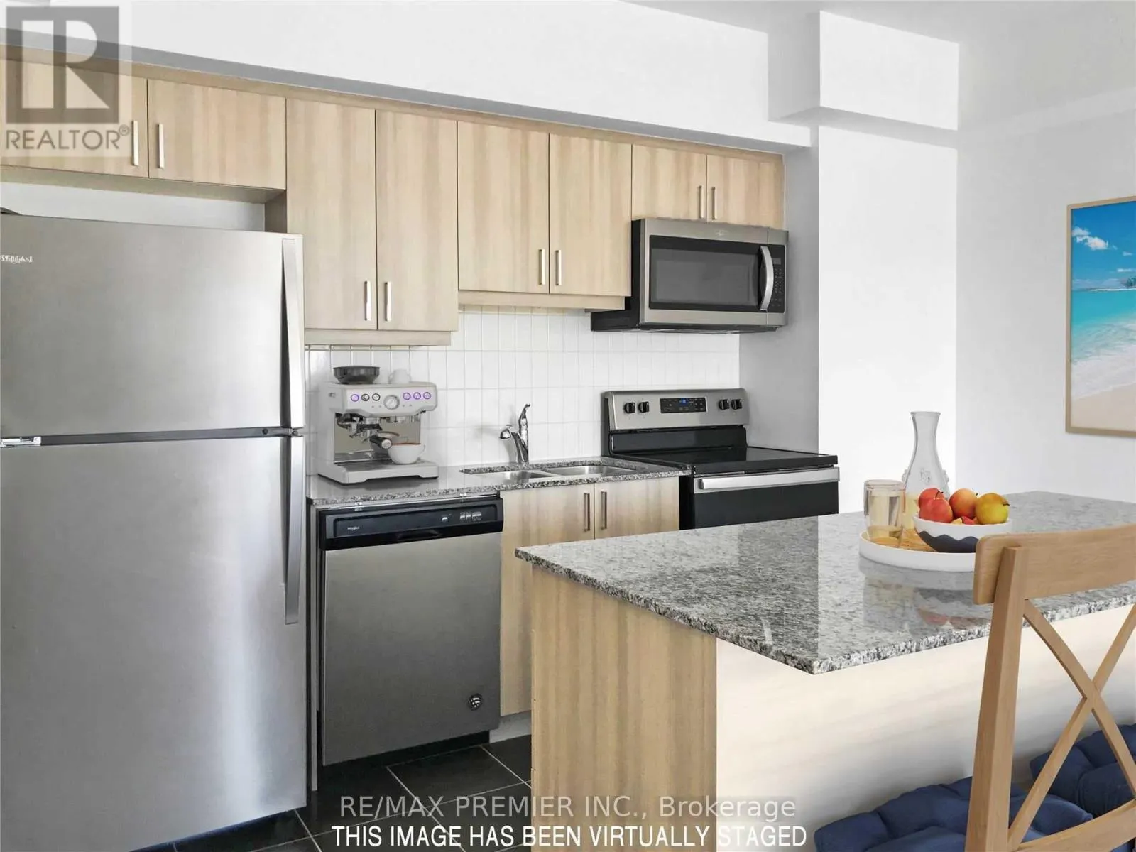 Yonge St and Mapleview Dr Bistro Culinary-Inspired Condo Living in a Desirable Location! Experience stylish urban living in this 742 sq ft penthouse suite, perfectly situated walking distance to the Go Station, transit, and grocery shopping. Just minutes from the waterfront, Hwy 400, Restaurants, and more. This bright and open-concept layout features 9' smooth ceilings, a modern chef-style kitchen with granite countertops, backspalsh, and breakfast bar, plus laminate flooring throughout for a seamless flow. Relax in the spacious living area that opens to private balcony with gas BBQ hookup and beautiful, unobstructed views of trees and ravine. The sleek bathroom includes a walk-in glass shower, and you'll enjoy the convenience of in-suite laundry. This unit offers comfort, style, and unbeatable convenience-all in one exceptional location. (id:27476)
