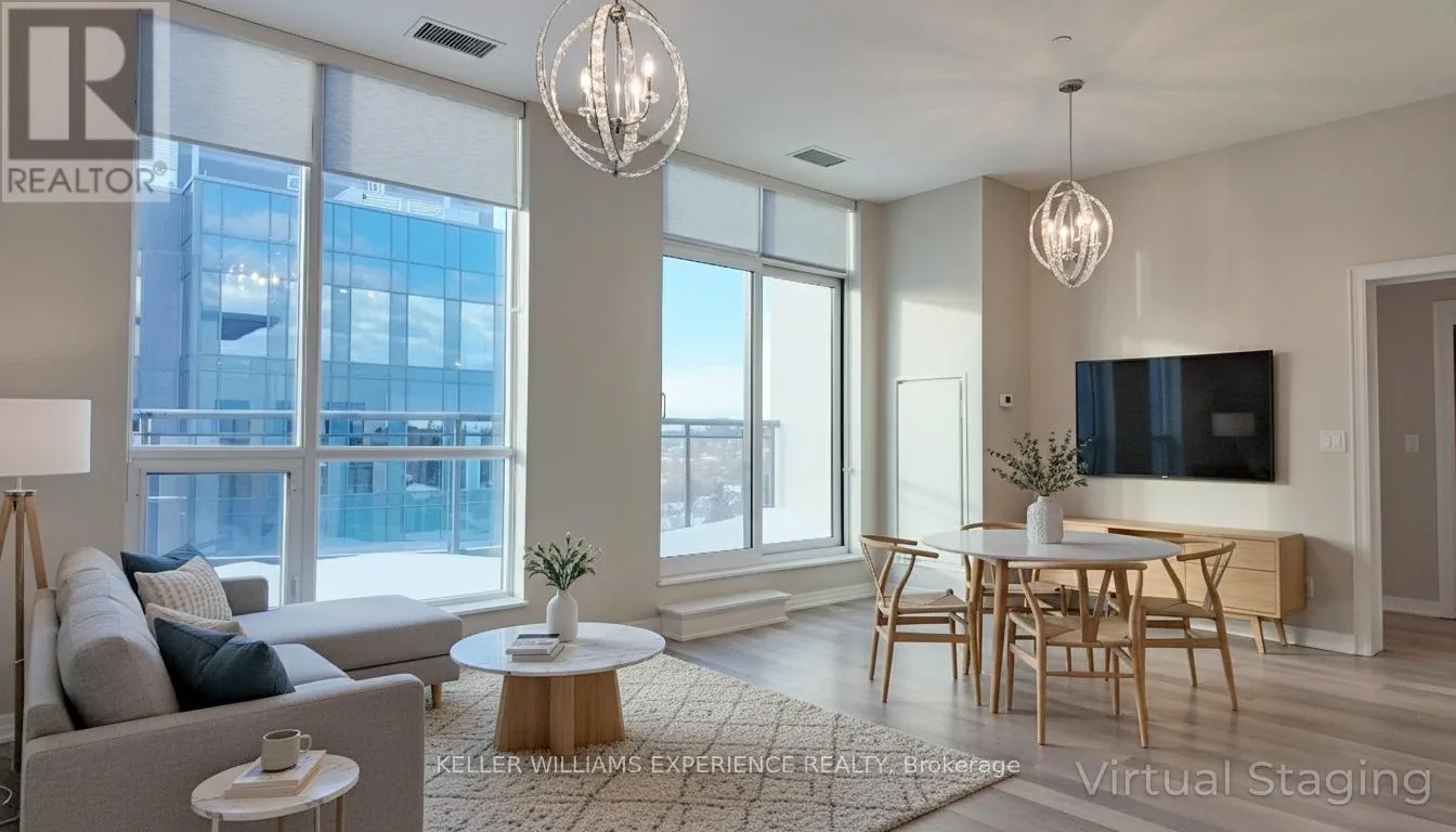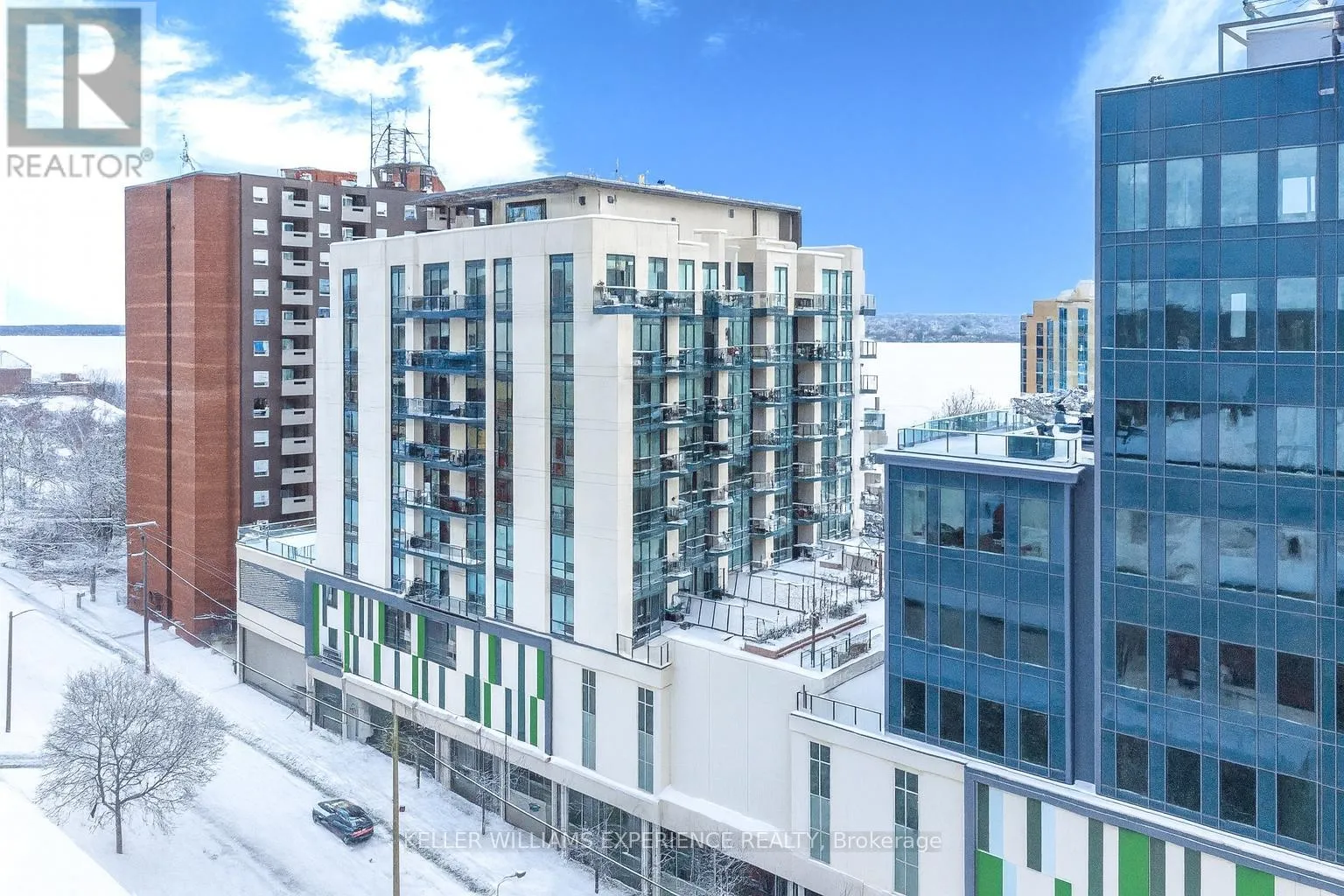 Cross Streets: Mulcaster St To Worsley Street. ** Directions: Mulcaster St & Collier Street to Worsley. Lakeview Condos Grand Penthouse in Downtown Barrie! Experience luxurious penthouse living in this spacious 2-bedroom + den, 2-bathroom condo with breathtaking, unobstructed west-facing views of Lake Simcoe and Kempenfelt Bay. Ideally located just steps to Barrie's vibrant downtown, waterfront trails, restaurants, and shops. This well-maintained, stylish suite features a bright, open-concept layout with soaring 10-foot ceilings and expansive floor-to-ceiling windows, complemented by custom blinds that flood the space with natural light. The great room opens onto a large, south-facing terrace, perfect for relaxing or entertaining, and there's a private balcony off the primary bedroom. The primary bedroom features a private three-piece ensuite that has been recently upgraded with a stylish walk-in shower, a new vanity, tiles, and fixtures. The modern kitchen offers newer Whirlpool stainless steel appliances, neutral-toned cabinetry, gleaming white quartz countertops, and a stylish backsplash. A gas hookup for a gas stove is available, and a water line to the fridge. Both bedrooms are generously sized, and the den offers a flexible space for work, a sofa bed for guests, or lounging. Enjoy the convenience of your own private in-suite laundry area with custom shelving. Storage is aplenty with a premium-sized extra-large storage locker and large closets within the unit. Year-to-date (2025) water and hydro costs are just $490.89; heated and cooled by a highly efficient and modern heat pump system. Enjoy the convenience of an owned underground parking space and the flexibility to store a bike in the shared bike room. The penthouses offer two large balconies ideal for quiet summer evenings or entertaining. Building amenities include a fitness centre, party room, and a common outdoor entertaining space on the third floor with a BBQ. Affordable luxury with stunning views in a prime location by Lake Simcoe, don't miss this rare offering! (id:27476)