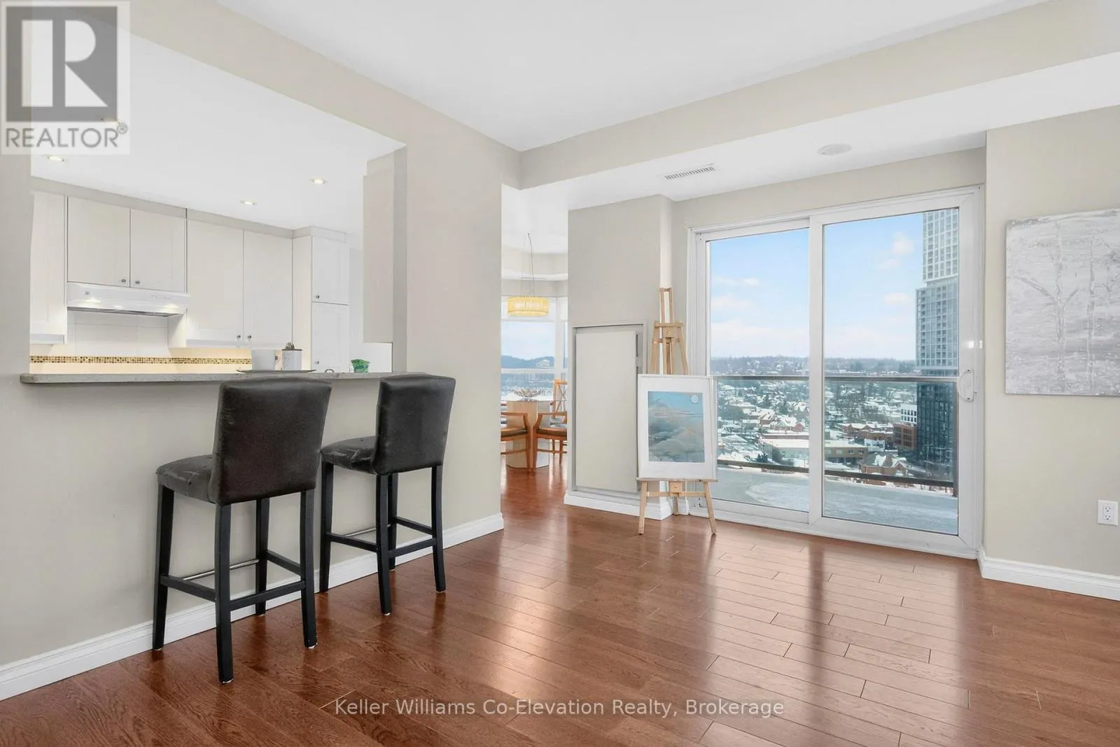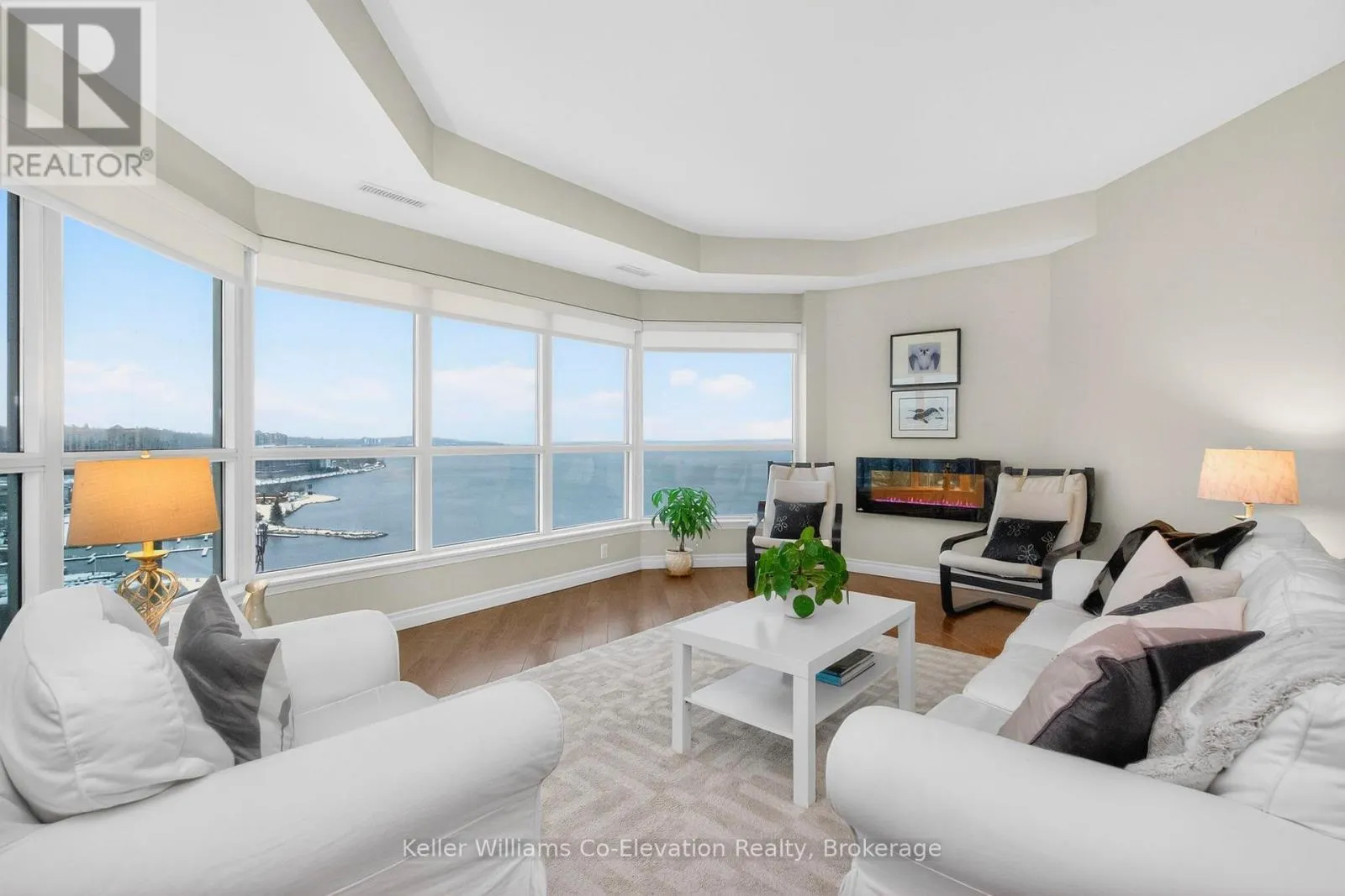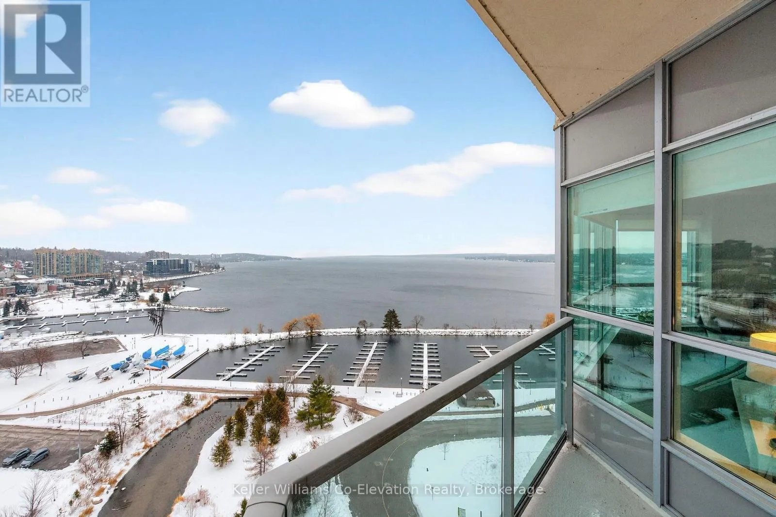 Cross Streets: Toronto St/Simcoe St/Lakeshore Dr. ** Directions: Bayfield St to Simcoe St to Lakeshore Dr. One of a Kind Opportunity - First Time Offered by the Original Owner! Welcome to Unit 1601 at The Water View. Lake front condo living doesn't get any better than this. This exceptional 1600+ Sq-ft open-concept 2-bedroom, 2 bathroom luxury condo offers rare unrivalled panoramic views of the entire bay and city skyline, stretching as far as the eye can see. Enjoy peaceful sunrises and glowing sunsets that light up the horizon. A timeless layout enhanced with hardwood and ceramic flooring completes this stunning residence. Features include: A beautiful living room with stunning water views, spacious kitchen with a breakfast bar open to the main living space, a dedicated dining area with a walkout to the balcony and a generous in-suite laundry with plenty of storage space. The expansive primary bedroom features city/lake views, a 4-piece ensuite, and a walk-in closet with a secondary bedroom that is equally spacious and inviting. Start and end your day on the exquisite balcony, where you can soak in breathtaking views of Kempenfelt Bay, the marina, and the mesmerizing city lights reflecting on the water's surface. This unit includes a premium underground parking spot and large storage locker. While beautifully maintained, this unit presents a rare opportunity to personalize a truly grand waterfront residence making it a smart investment. The updates don't end inside the unit, the building itself has recently gone through a transformation which saw beautiful updates to the front lobby and hallways. The building has some terrific state of the art amenities including an indoor pool, spa, and sauna, gym, games room, party room, library, guest suites, visitor parking and a park like 3rd level terrace. Walk out your front door to the Barrie City Marina, Centennial Beach, and the shores of Lake Simcoe or take a short stroll into Barrie's downtown to enjoy fantastic local restaurants and shops. This is a must see! Owners are very accommodating on closing dates. Shows 10/10. (id:27476)