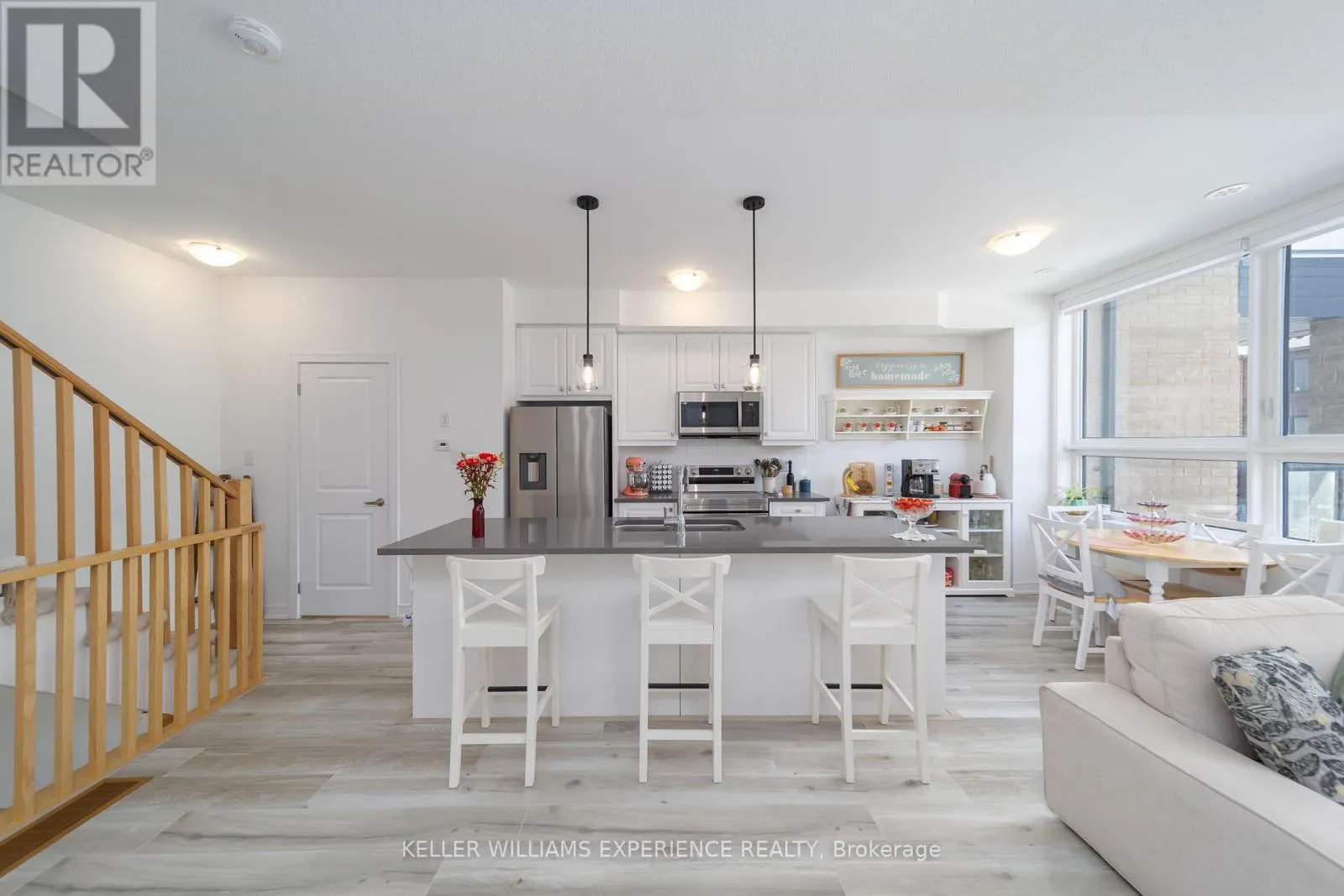 Mapleview Dr & Lily Dr Step into contemporary living with this beautifully maintained, newly built three-storey townhouse, offering two spacious bedrooms, 1.5 bathrooms, and an open-concept design that maximizes space and light. The main floor welcomes you with 9' ceilings, sleek cabinetry, quartz countertops, and stainless steel appliances for a modern touch throughout. Both bedrooms upstairs provide comfort and privacy while giving you some well deserve time for rest. Perfectly situated in the vibrant Barrie South community, this home is minutes from Barrie South GO Station, Highway 400, the waterfront, and top amenities including shopping, dining, parks, and schools ideal for families and professionals seeking a seamless lifestyle. This isn't just a home it's an elevated way of living. (id:27476)