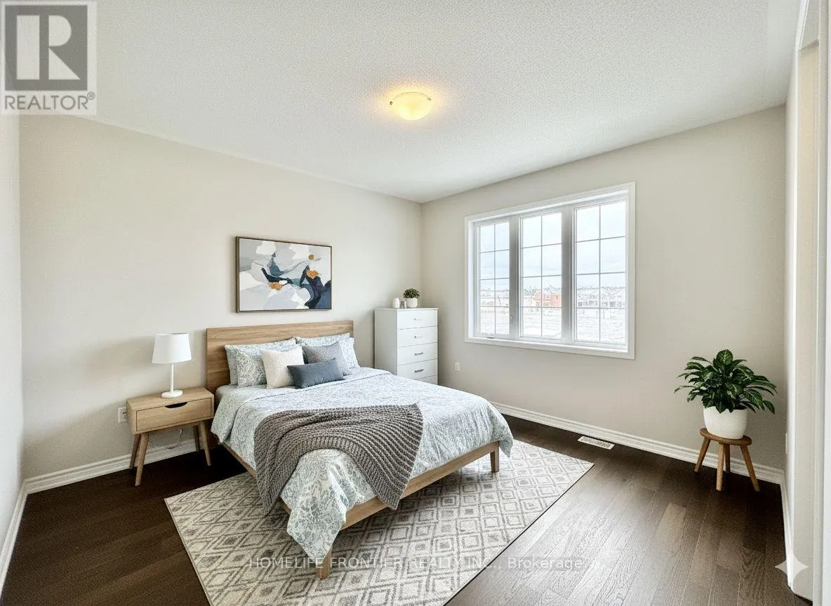 Cross Streets: Ireton St & 25th Sdrd. ** Directions: Mapleview Drive East & Yonge Street. Welcome to your brand-new, never-lived-in Mattamy Logan a stylish 2,661 sq ft detached home with a true double-car garage, vacant and ready for you to move in right away. From the foyer, you're met with 9 ft ceilings on both levels, an airy open concept layout, and seamless hardwood throughout the entire home absolutely no carpet all finished in fresh, modern, neutral paint that makes the space feel bright, clean, and upscale. Showpiece gourmet kitchen: upgraded soft-close cabinets quartz waterfall island with extended seating, matching quartz counters and full-height backsplash, a deep stainless sink with a premium pull-down faucet, and organized pull-out garbage/recycling. The kitchen flows effortlessly into the great room, where a sleek electric fireplace creates a warm focal point for everyday living and entertaining. Comfort and efficiency are built in with an air-source heat pump, furnace-mounted humidifier, gas BBQ line off the rear patio, and garage door opener already installed all the practical upgrades you want from day one. Upstairs, the rare five-bedroom layout delivers incredible flexibility for large families, guests, or a home office setup. Every bedroom has direct bathroom access. The primary suite is a true retreat, offering a deep soaker tub, oversized frameless glass shower with rainfall head, double sinks, a private water closet, and a spacious walk-in closet. Two additional bedrooms also enjoy walk-in closets and ensuite access, while the remaining bedrooms share a smart Jack-and-Jill bath perfect for kids or extended family. All upper bathrooms are upgraded with quartz counters and premium fixtures, and all bedrooms offer well-appointed closets, including mirrored sliding doors. Snow removal paid for the entire season & Free Rogers Fibe Internet service (speed. 2.5GB Speed with unlimited usage) up until Nov 2026 (id:27476)