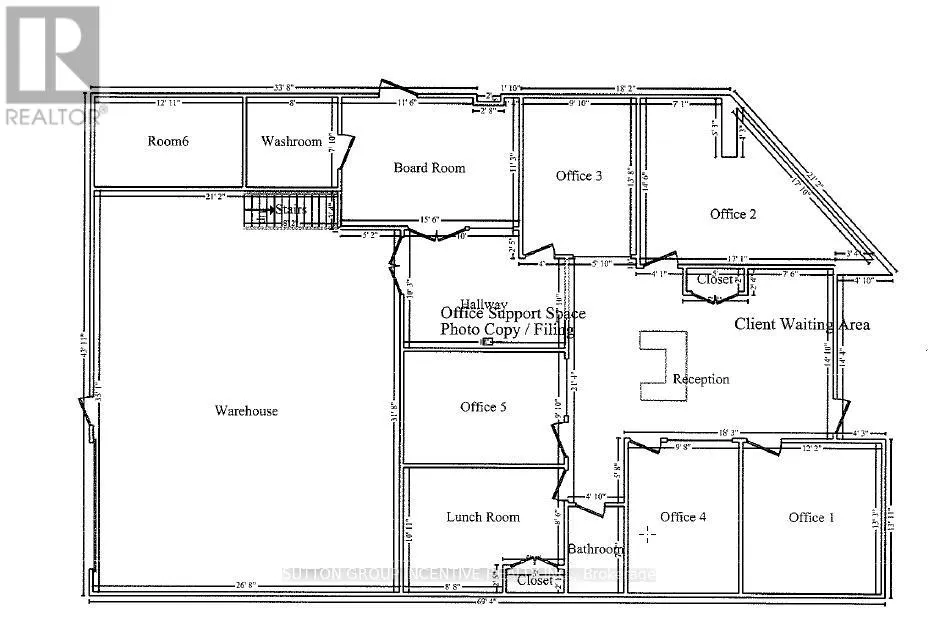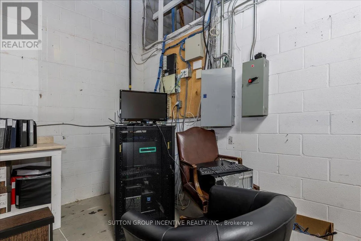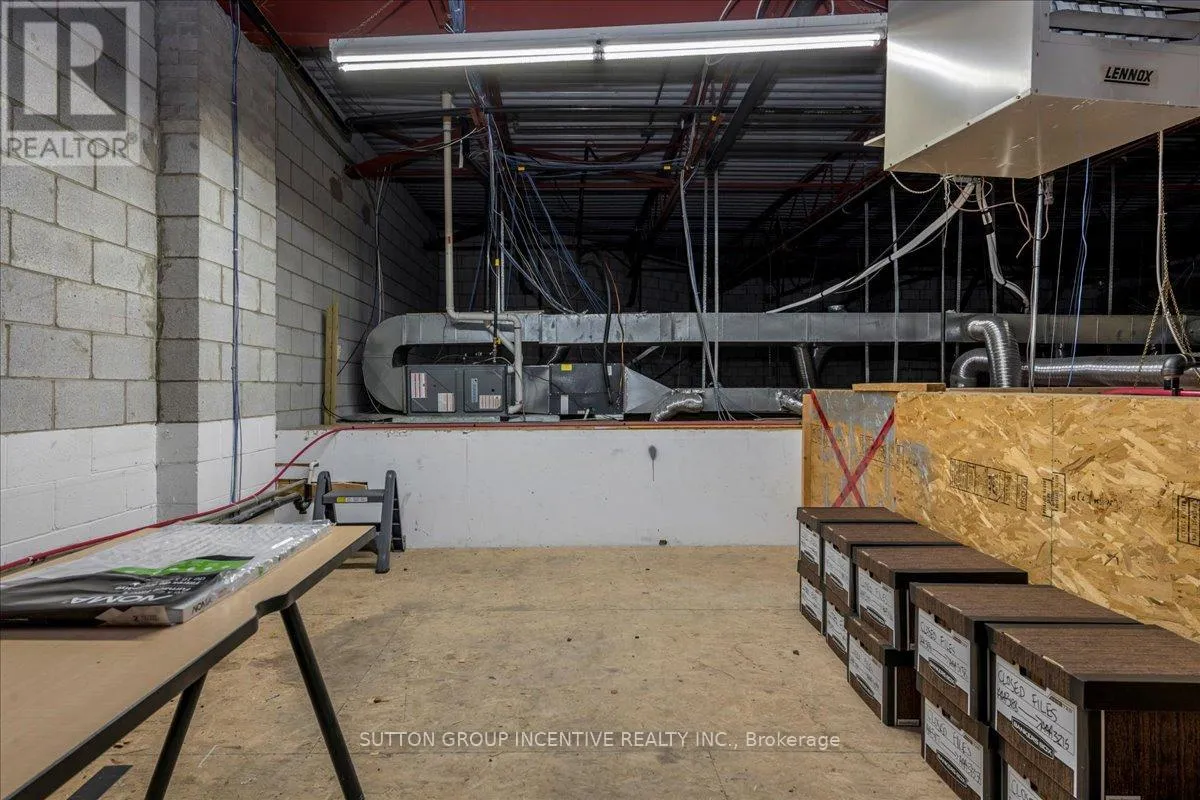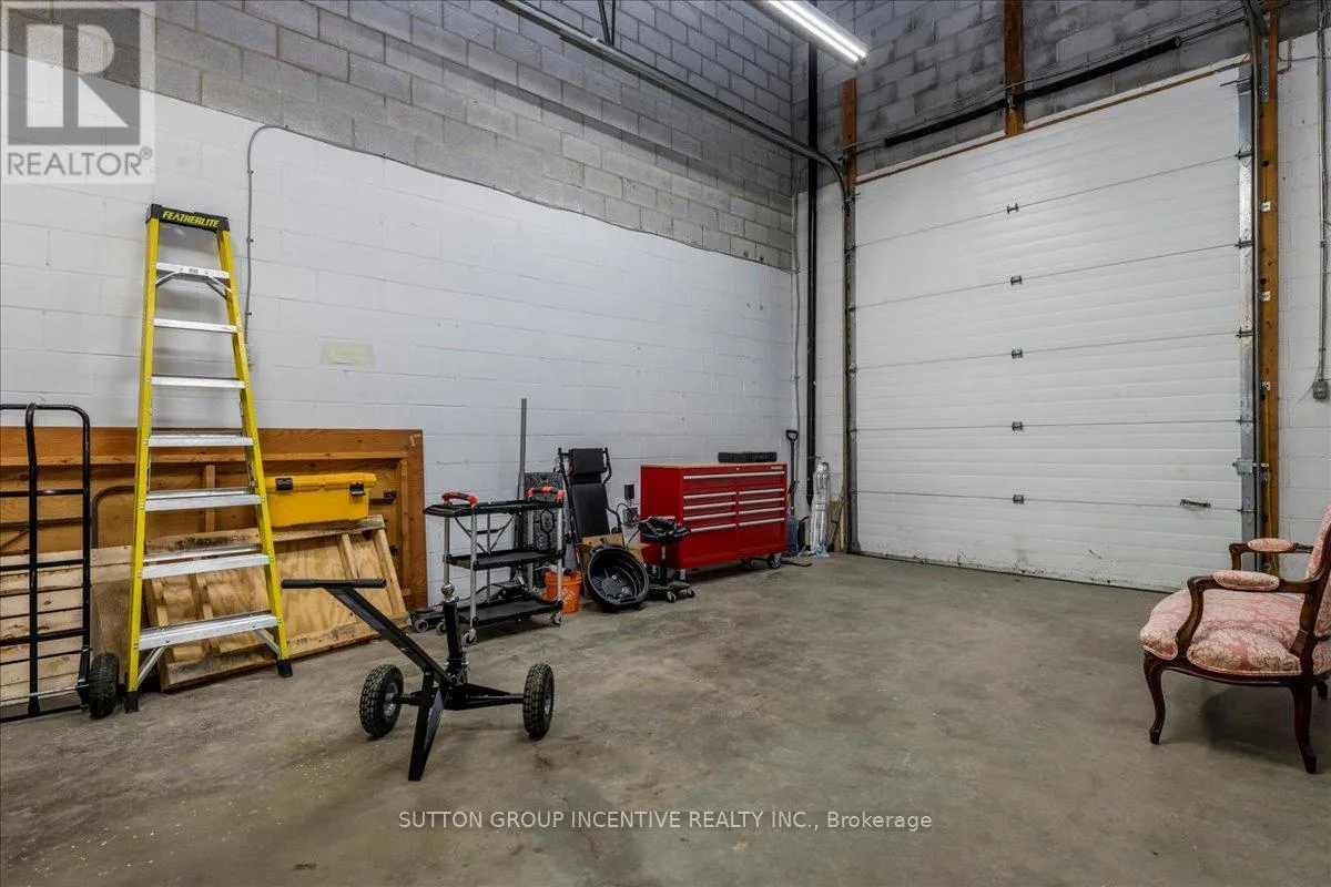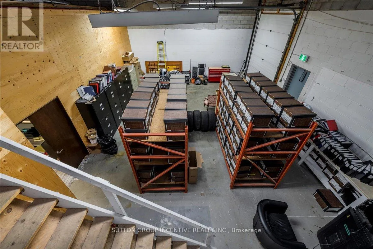 Cross Streets: Tiffin Street & Patterson Road. ** Directions: Located at Corner of Tiffin & Patterson, facing Patterson. Stop paying someone else's mortgage -- own your workspace in the heart of Barrie, just minutes from downtown and Hwy 400. This professionally finished office spans two commercial condo units and was fully renovated in 2019. The front office area features a welcoming reception, waiting area, bright boardroom with custom glass doors, staff/lunch room, four private offices, open work area, and two washrooms -- ideal for a wide range of professional users. At the rear, utilize an approximate 740 SF of warehouse space with a 19' clear height and a 10' x 12' roll-up door, plus an additional 182 SF mezzanine for extra storage. Comfort and efficiency are covered with ductless heat pumps in the front offices for added cooling (2020), updated central air (2020), and a new forced-air natural gas furnace (2023).Included are a built-in custom desk and hutch in the angled office, custom blinds throughout, fridge, dishwasher, microwave, HWT (owned) and boardroom table. Additional furnishings (including copier) may be available, subject to negotiation. Flexible possession. Monthly condo fees of $775.93 include water/sewer, snow removal, landscaping, insurance, management, non-exclusive parking, and building envelope maintenance. (id:27476)