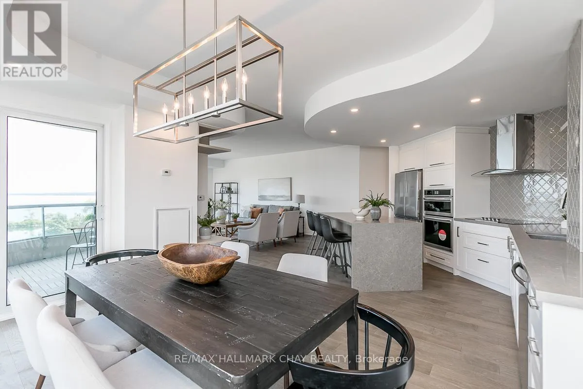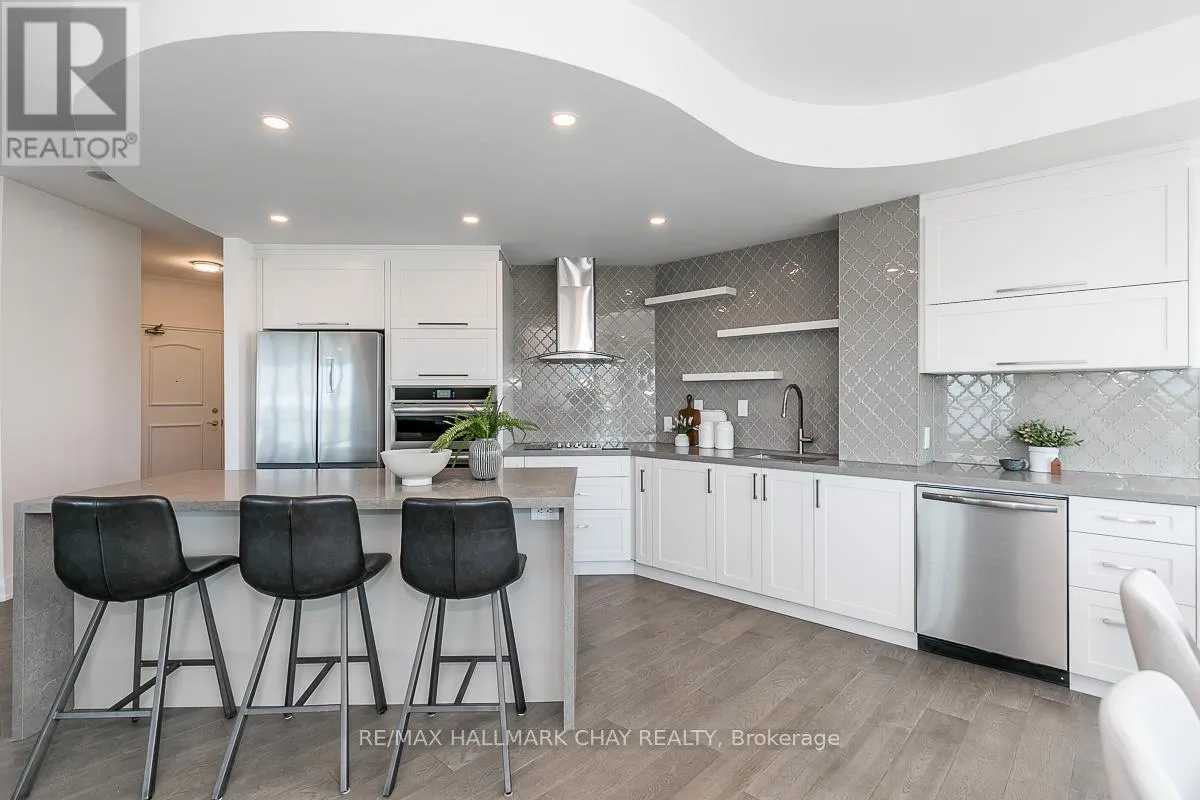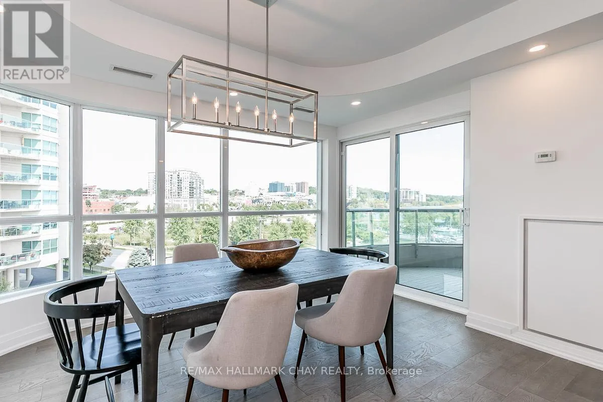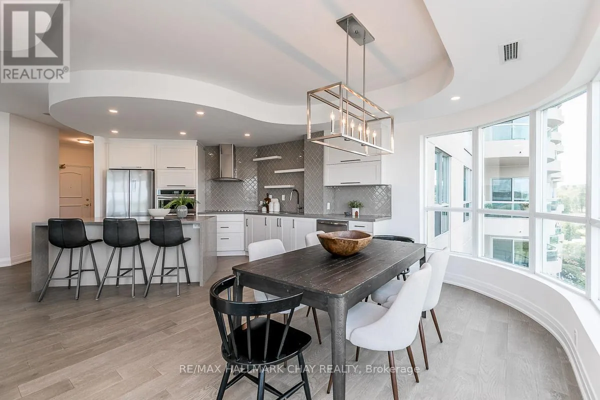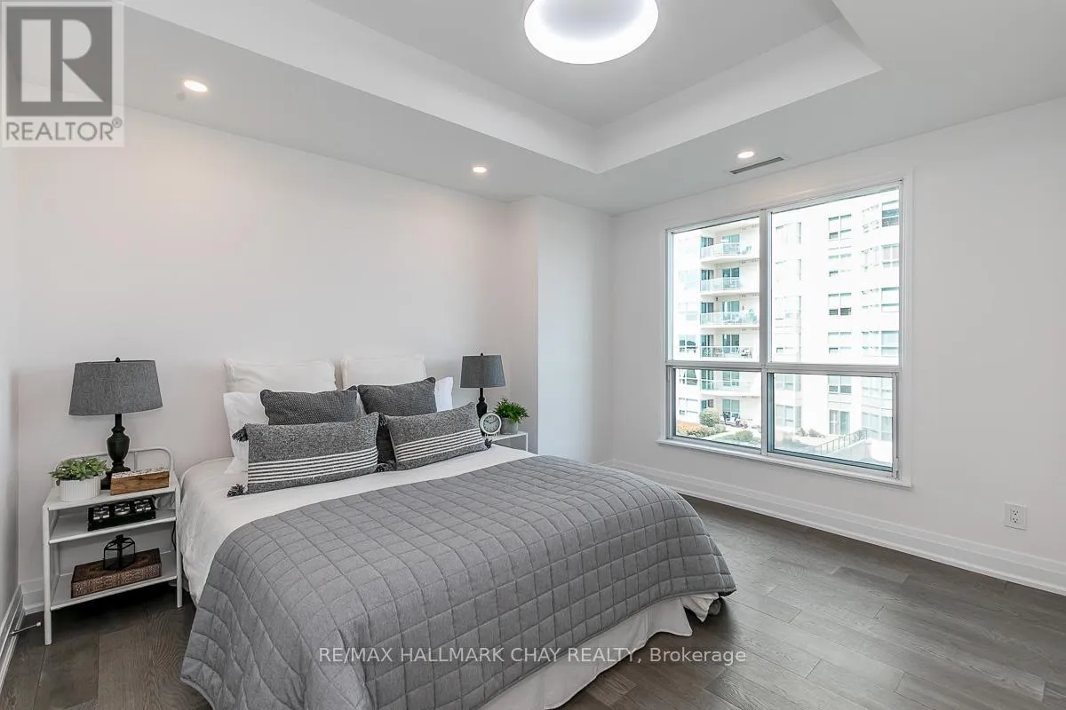 Cross Streets: Toronto St / Simcoe - Lakeshore. ** Directions: Lakeshore to Toronto St. EXPERIENCE REFINED WATERFRONT CONDO LIVING * PRESENTING 2 Toronto Street, Suite 509 - -the coveted "Driftwood Model" in Barrie's prestigious Grand Harbour condo community. Beautifully updated and renovated with modern touches - this two-bed, two-bath residence blends timeless elegance with all the comforts of home. Unmatched waterfront views & exceptional space - with 1,579 sq.ft. of thoughtfully designed living - this fully upgraded suite offers generous principal rooms, floor-to-ceiling windows, and 9' ceilings that flood the space with natural light. Spacious living room features a cozy gas fireplace while the full-sized dining room opens to a large private balcony - perfect for morning coffee, evening wine, or simply soaking in the waterfront ambiance. Beautiful updated interior features custom kitchen with ample storage, engineered floor throughout. Primary suite with abundant closets with built-in organizers and a spa-inspired private ensuite. Convenience of guest bedroom, full guest bath, ensuite laundry. One parking space (owned) and exclusive locker. Throughout the building you will notice attention to design in the common areas like the tasteful reception area, as well as landscaped grounds with seasonal pond. Exclusive amenities are yours to enjoy - indoor pool, sauna, hot tub, change rooms, party room, games room, library, gym, guest suites, visitor parking. Step out your door to the waterfront activities Barrie has to offer - boardwalk, beaches, marina. Steps to public transit, GO Trains and Buses. Easy access to key highway commuter routes - north to cottage country and south to the GTA. Barrie offers all the key amenities - services, shopping, fine and casual dining, entertainment and outstanding all season recreation! Welcome Home to Waterfront Condo Life in Barrie - where Luxury meets Convenience! (id:27476)