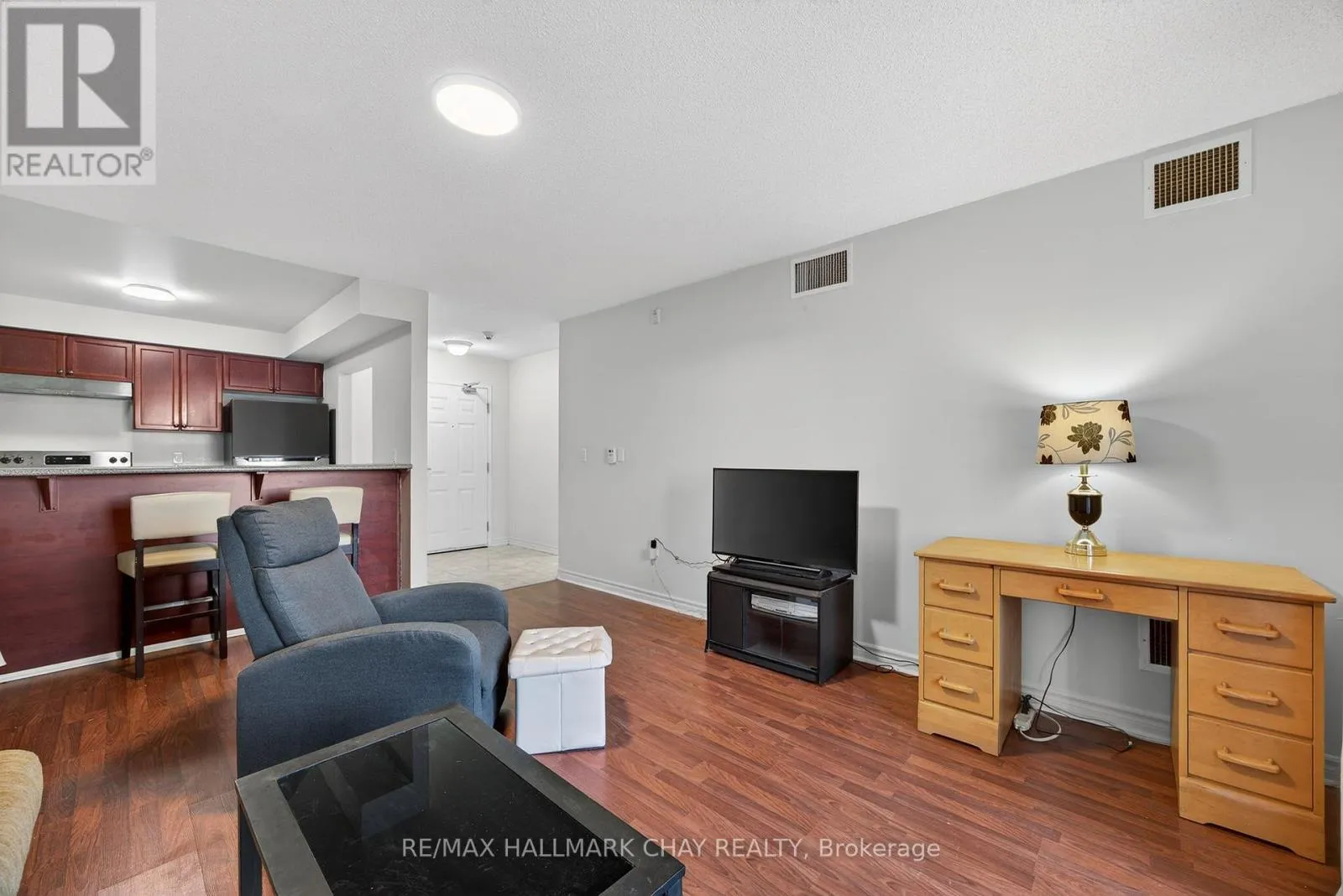 Cross Streets: Coulter St & Cundles Rd W. ** Directions: Bayfield St or Cundles Rd W to Coulter St. Welcome to the desirable Sunnidale Vistas community located in the heart of Barrie. This attractive main-floor one-bedroom condominium apartment is ideally located within walking distance to shopping centers, malls, parks, and everyday amenities, with easy access to Highway 400. The well-designed unit features laminate flooring throughout, a walk-out to a private patio, stainless steel appliances, a large storage unit, and one above ground parking space. Wheelchair accessible and move-in ready, this condo is well suited for first-time buyers, downsizers, or investors. Low Maintenance fees provides excellent value and include suite water, building insurance, utilities for common areas, and common elements, as well as landscaping, snow removal, elevator maintenance, property management, general repairs, and reserve fund contributions. Building amenities include BBQs allowed, bike storage, visitor parking, and pets permitted subject to condominium bylaws and restrictions. This is a SMOKE FREE building !!! (id:27476)