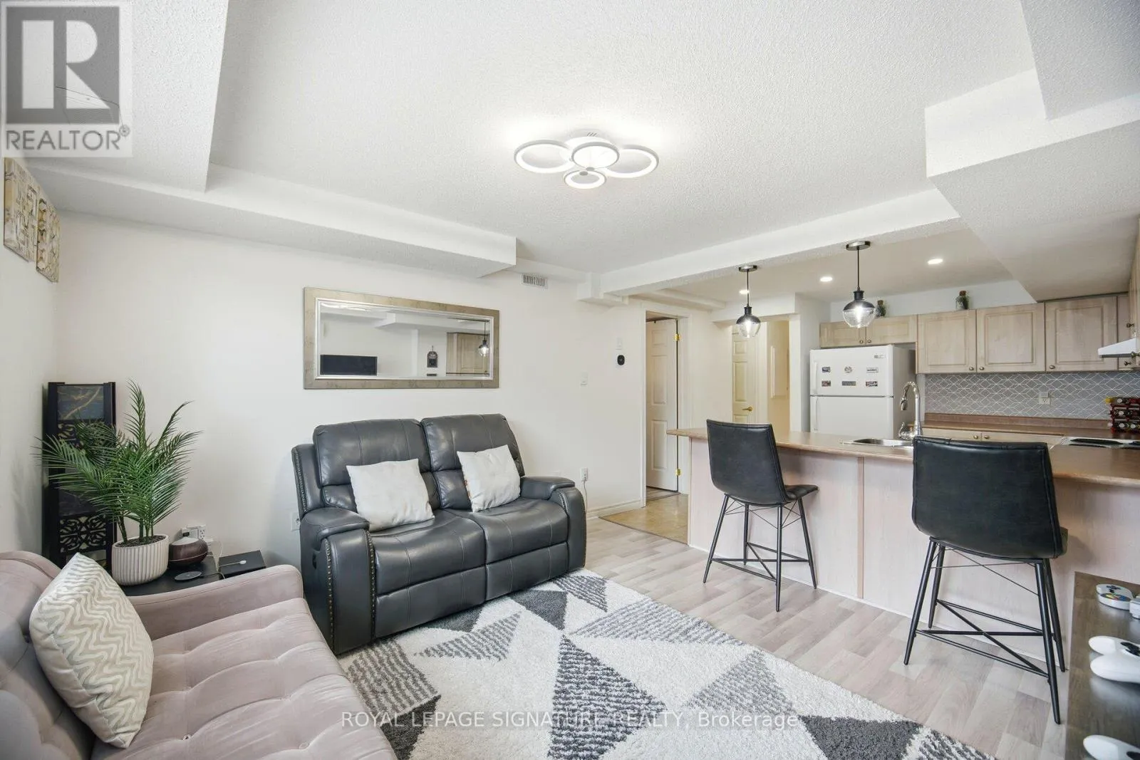MAPLEVIEW DR TO GOODWIN DR AN EXCELLENT OPPORTUNITY FOR FIRST-TIME BUYERS, DOWNSIZERS, SENIORS, OR INVESTORS. WALKABLE CONVENIENCE AND EASY COMMUTING. Meticulously maintained and move-in ready. bright corner-unit condo "townhouse Styled" offers the perfect blend of style, comfort, and convenience. Located in a quiet, low-rise, family-friendly development, this turn-key 1-bedroom home is flooded with natural light thanks to its corner exposure and large windows. The open-concept main level features laminate flooring, a spacious living area, and a modern eat-in kitchen complete with backsplash, upgraded pot lights, and all appliances included-ideal for everyday living and entertaining. The kitchen was tastefully updated in2023. The generously sized bedroom offers excellent views and is equipped with a high-efficiency heating and cooling system for year-round comfort. Equipped With A full 4-piecebathroom. Additional features include a dedicated utility room, in-suite laundry, one parking space, and professional painting completed prior to listing. Enjoy low condo fees, low utility costs, and truly maintenance-free living with no snow removal or grass cutting. The development is kid-friendly and includes its own playground, with convenient mobility access and parking close to the unit. Ideally situated just minutes from Barrie South GO Station, Mapleview Shopping Area, top-rated schools, grocery stores, restaurants, and major amenities. (id:27476)