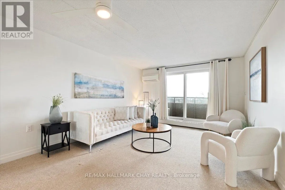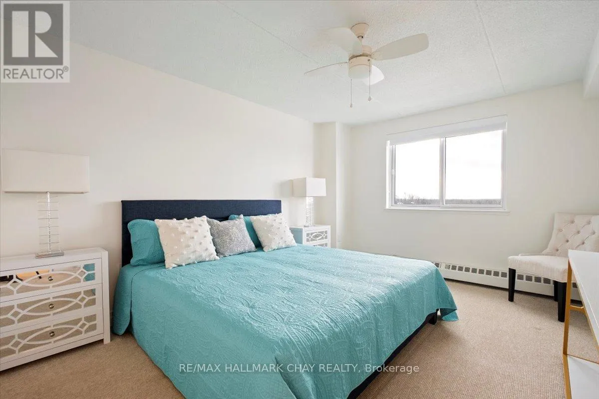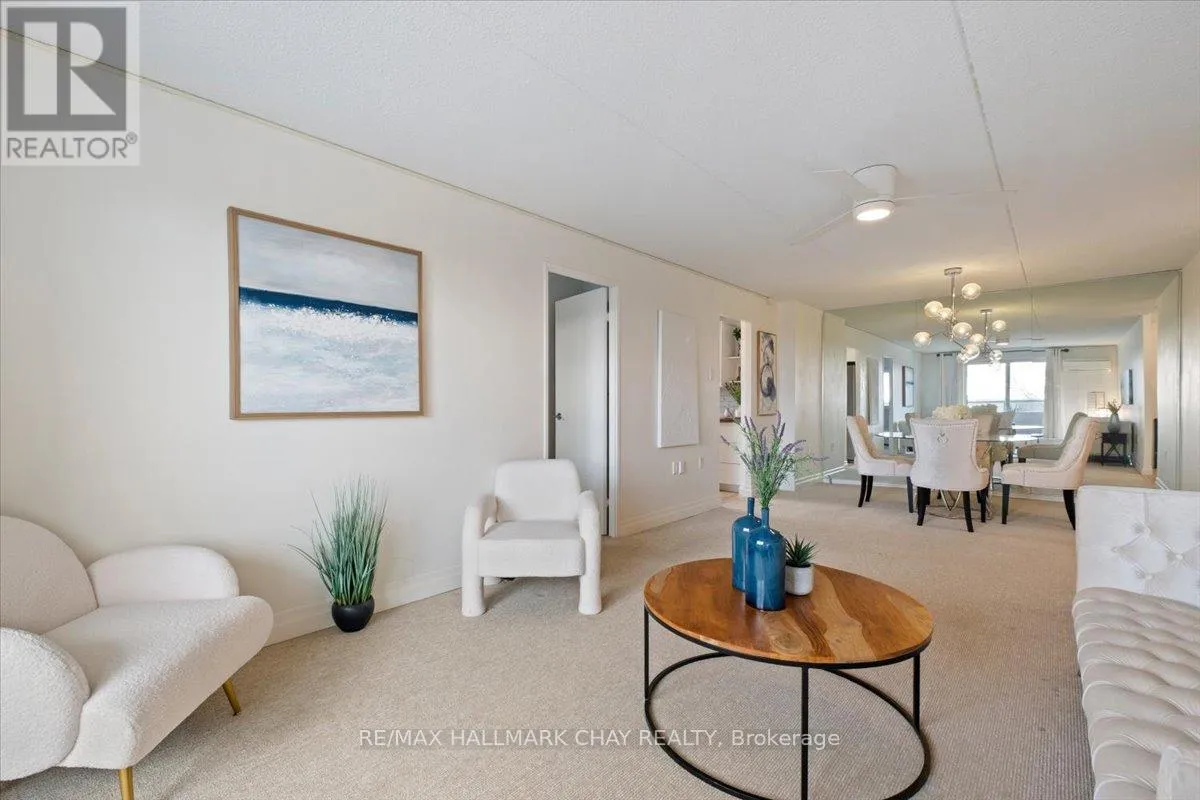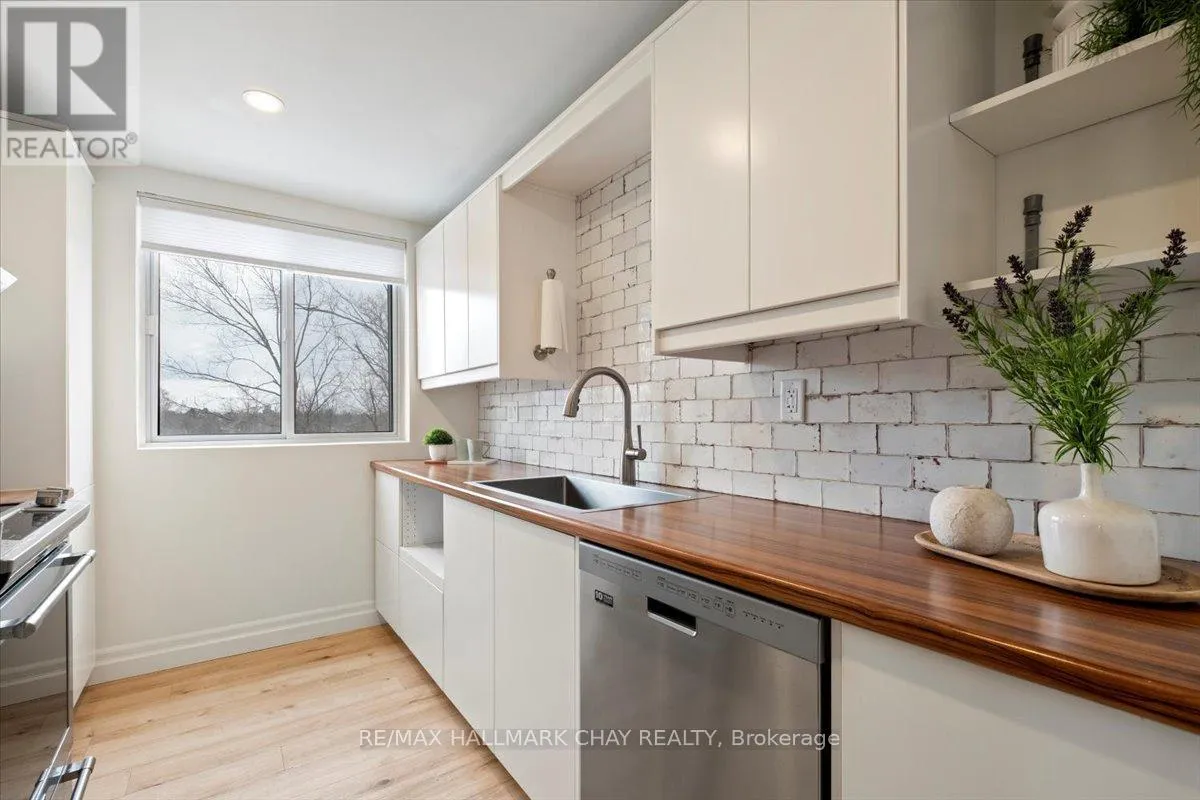 Cross Streets: Johston St and Blake St. ** Directions: Blake St just north of Johston St. Welcome to Carriage Park condominium. Rarely offered renovated 3-bedroom, 2 bath suite. Kitchen upgrades include cabinets, stainless steel appliances, backsplash, countertops. Loads of counter space, deep stainless sink, faucets, food pantry, pot drawers, recessed pot lights and undermount cabinet lighting. Oversized living and dining room area with sliding glass doors out to an extra-large balcony with a view of Kempenfelt Bay. Spacious primary bedroom, 2nd and 3rd bedrooms provide ample space for guests, home office or tv room. Beautifully renovated main bathroom with walk-in shower, upgraded vanity and flooring. Convenient 2-piece guest bathroom off the 3rd bedroom. Neutral paint, upgraded flooring, modern lighting and large windows make this suite bright and cheery. Well kept building with dual elevators, upgraded common areas, bright clean common laundry area, large party room, underground parking plus visitor parking. Close to Johnson's beach, walking trails, located in the quiet east end of Barrie. Public transit steps from the front door, close to shopping, restaurants, and other amenities. (id:27476)