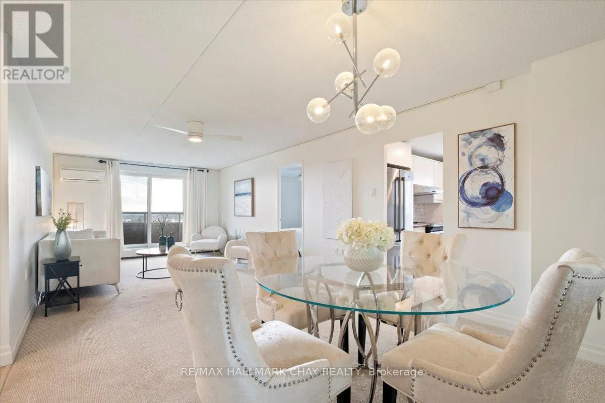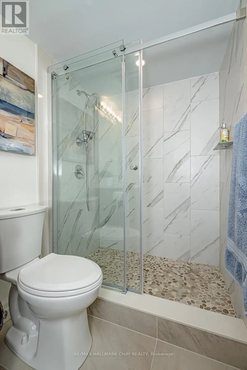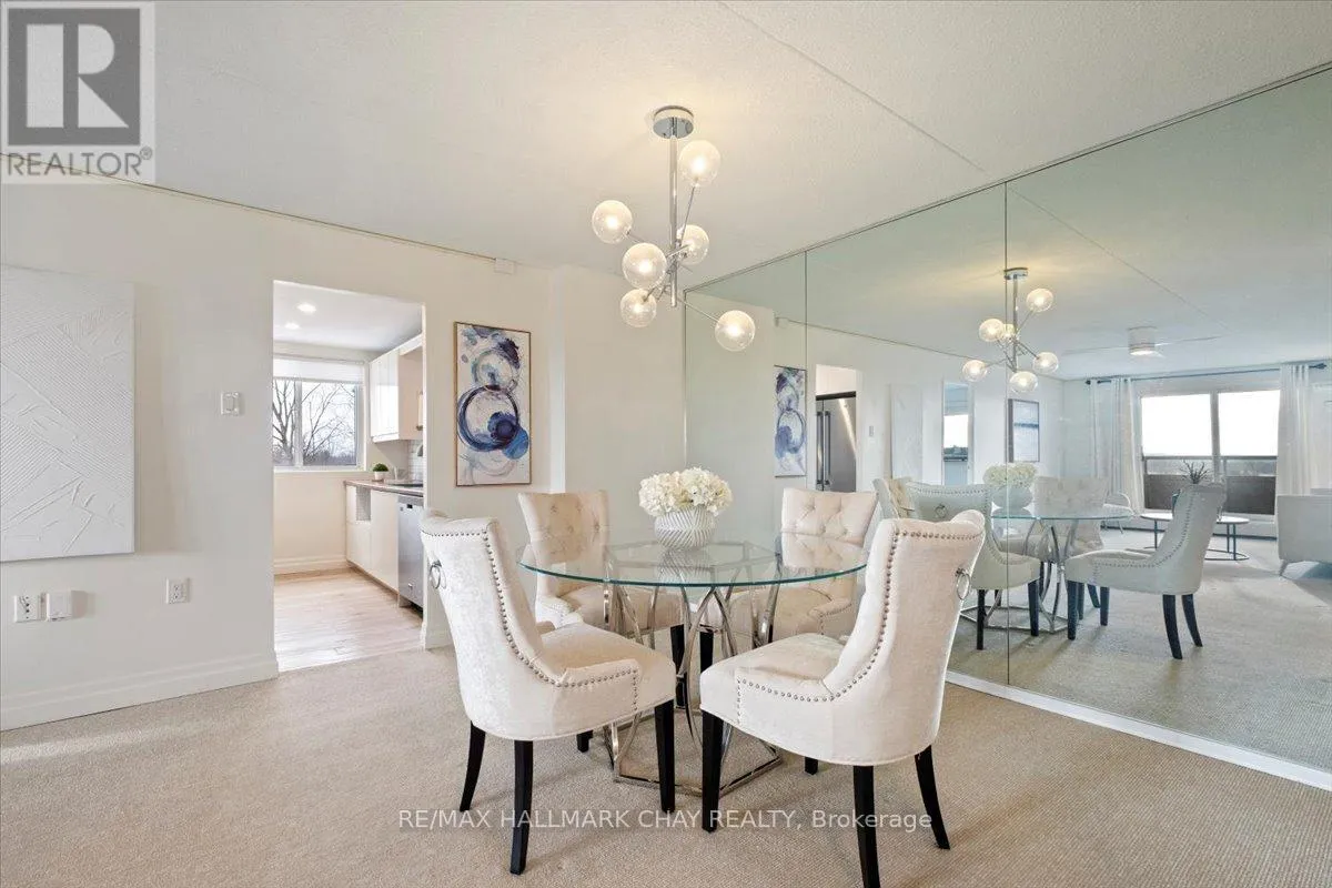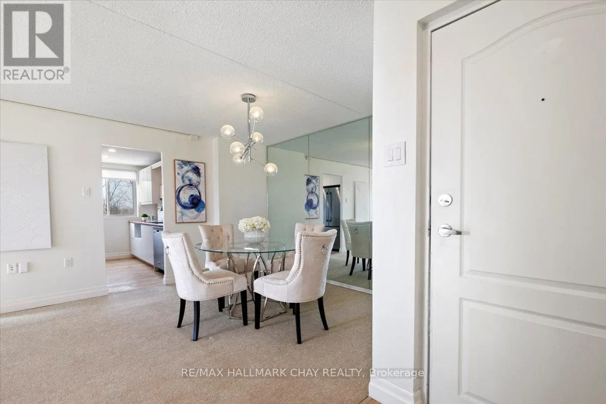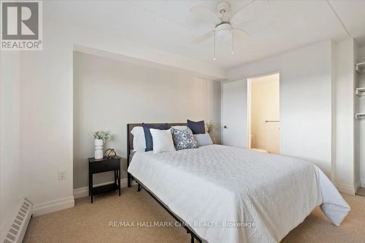 Cross Streets: Johston St and Blake St. ** Directions: Blake St just north of Johston St. Welcome to Carriage Park condominium. Rarely offered renovated 3-bedroom, 2 bath suite. Kitchen upgrades include cabinets, stainless steel appliances, backsplash, countertops. Loads of counter space, deep stainless sink, faucets, food pantry, pot drawers, recessed pot lights and undermount cabinet lighting. Oversized living and dining room area with sliding glass doors out to an extra-large balcony with a view of Kempenfelt Bay. Spacious primary bedroom, 2nd and 3rd bedrooms provide ample space for guests, home office or tv room. Beautifully renovated main bathroom with walk-in shower, upgraded vanity and flooring. Convenient 2-piece guest bathroom off the 3rd bedroom. Neutral paint, upgraded flooring, modern lighting and large windows make this suite bright and cheery. Well kept building with dual elevators, upgraded common areas, bright clean common laundry area, large party room, underground parking plus visitor parking. Close to Johnson's beach, walking trails, located in the quiet east end of Barrie. Public transit steps from the front door, close to shopping, restaurants, and other amenities. (id:27476)