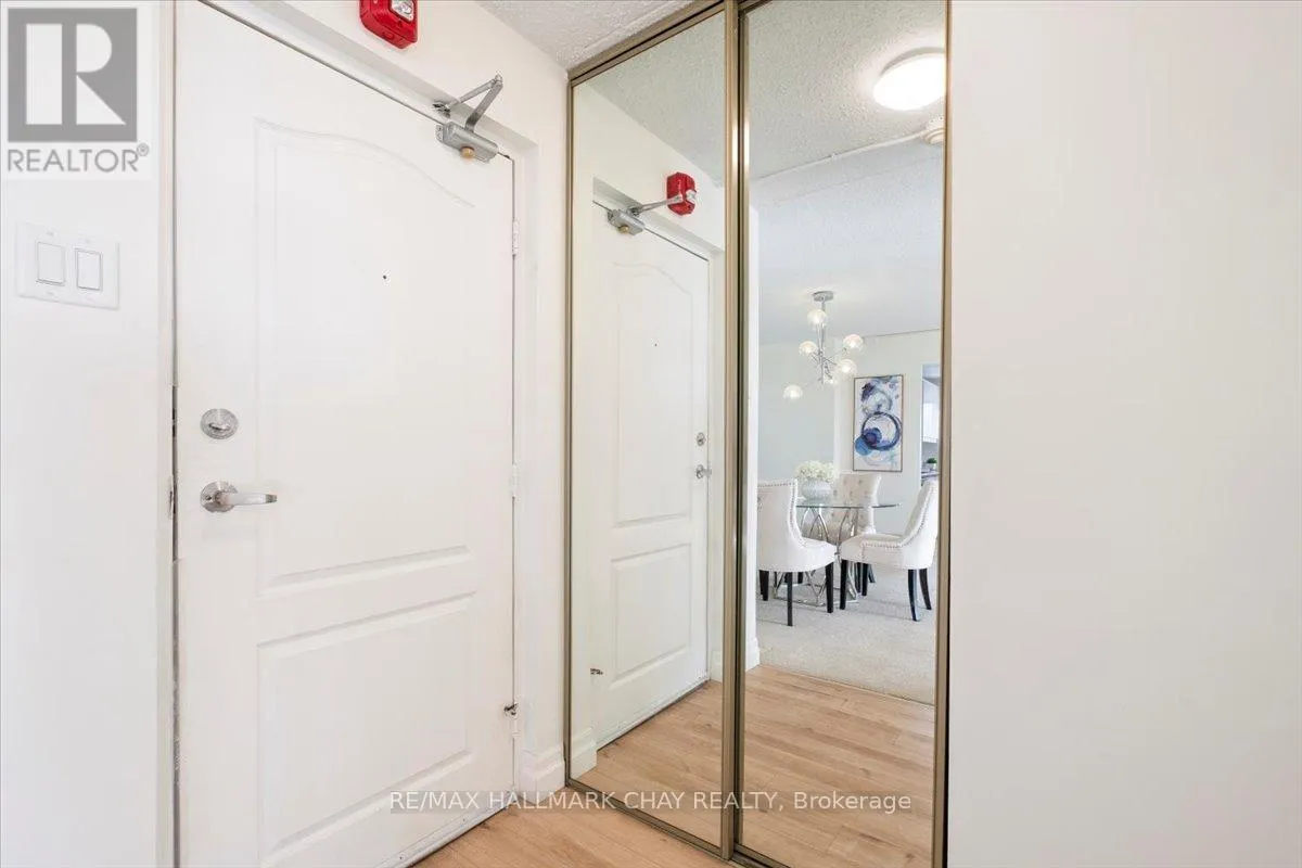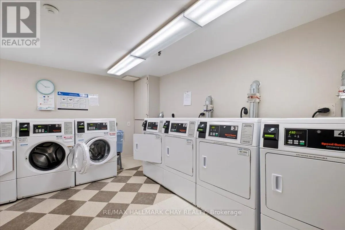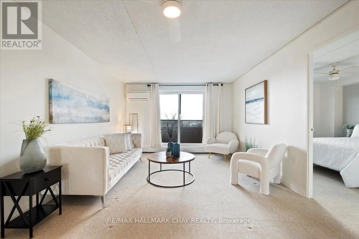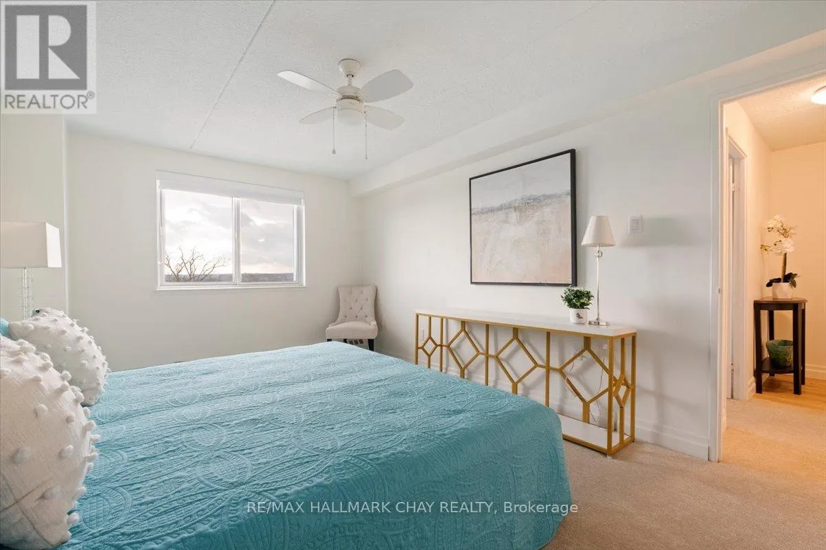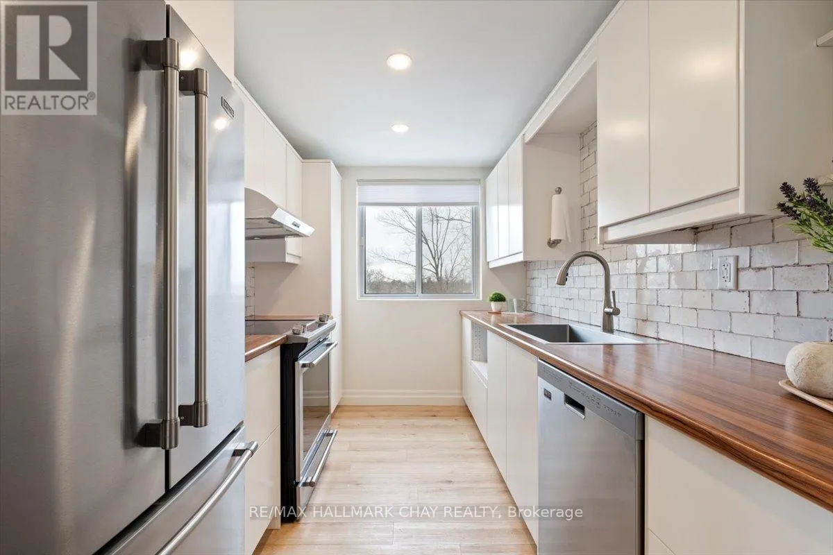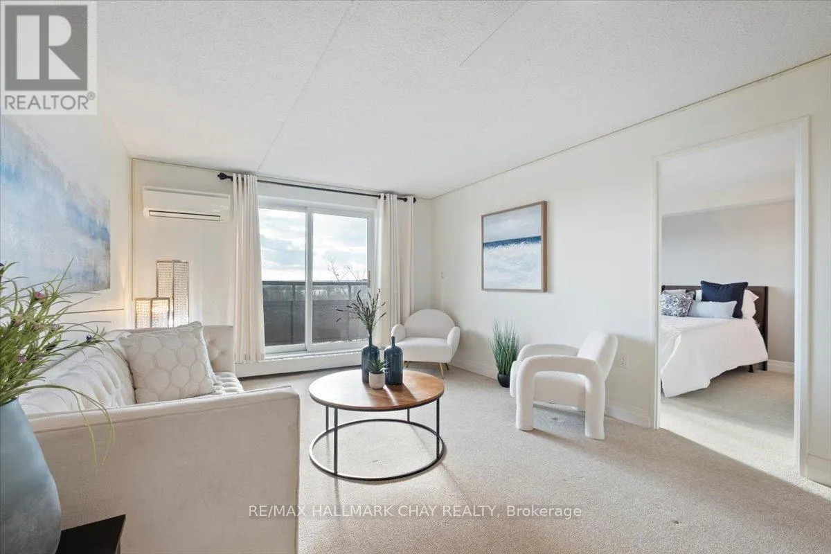 Cross Streets: Johston and Blake. ** Directions: Blake St to North of Johnston St. Welcome to Carriage Park condominium. Rarely offered renovated 3-bedroom, 2 bath suite. Kitchen upgrades include cabinets, stainless steel appliances, backsplash, countertops. Loads of counter space, deep stainless sink, faucets, food pantry, pot drawers, recessed pot lights and undermount cabinet lighting. Oversized living and dining room area with sliding glass doors out to an extra-large balcony with a view of Kempenfelt Bay. Spacious primary bedroom, 2nd and 3rd bedrooms provide ample space for guests, home office or TV room. Beautifully renovated main bathroom with walk-in shower, upgraded vanity and flooring. Convenient 2-piece guest bathroom off the 3rd bedroom. Neutral paint, upgraded flooring, modern lighting and large windows make this suite bright and cheery. Well kept building with dual elevators, upgraded common areas, bright clean common laundry area, large party room, underground parking plus visitor parking. Close to Johnson's beach, walking trails, located in the quiet east end of Barrie. Public transit steps from the front door, close to shopping, restaurants, and other amenities. (id:27476)