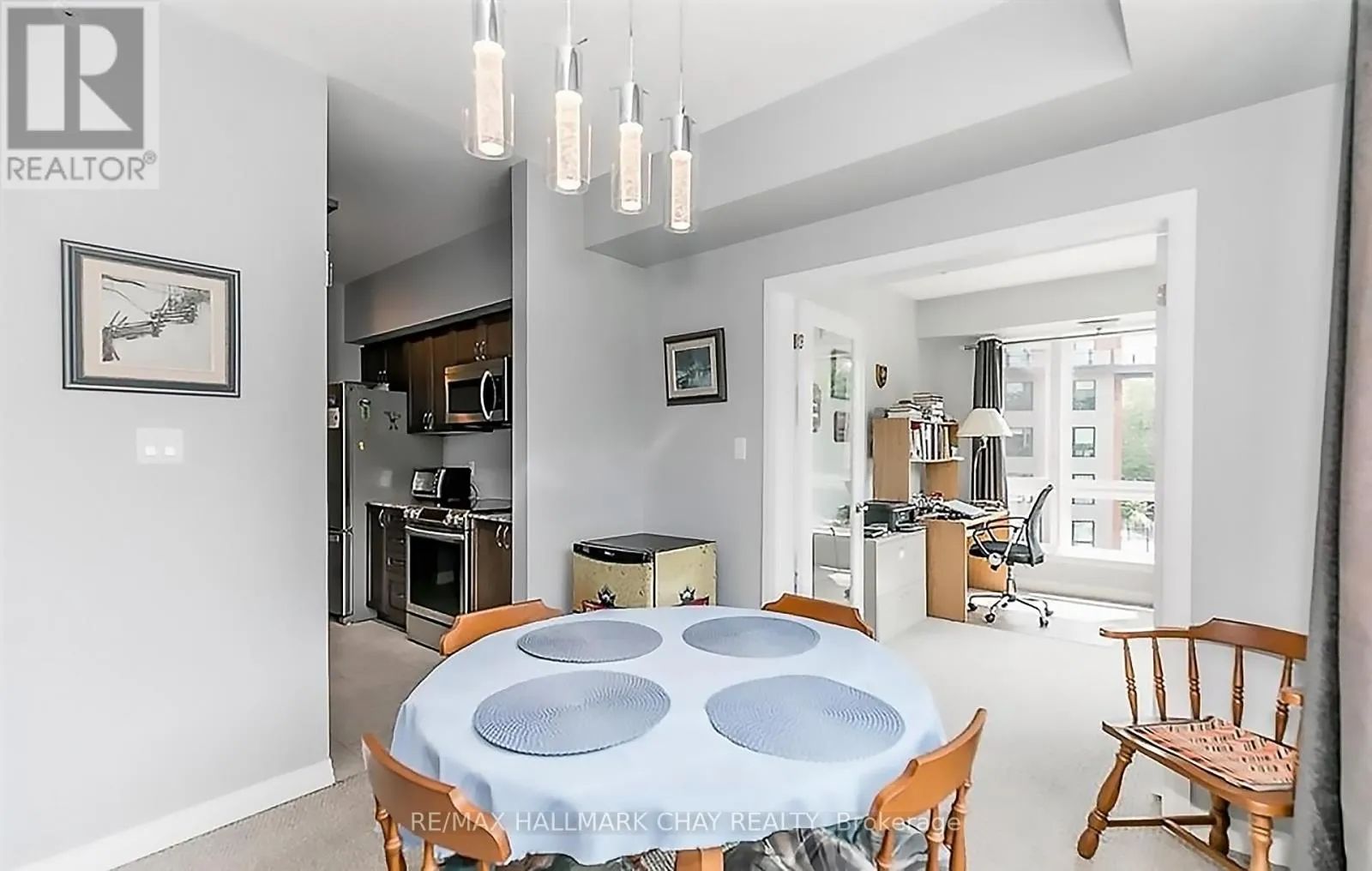 Cross Streets: 400/Essa Road/Bryne Dr. ** Directions: Access Complex via Essa Road or Bryne Dr. PRESENTING convenience of condo life at The Gallery on Essa Road - where making the switch to a care-free lifestyle feels effortless. Say "goodbye" to mowing lawns and shoveling driveways, and say "hello" to comfort, convenience, and modern living. This sought-after corner suite offers 1,454 sq.ft. of bright, open-concept living, enhanced by 9' ceilings and additional windows that flood the space with natural light. The functional layout includes a spacious primary bedroom, a second generous bedroom, a versatile den/flex space for home office or study zone, and two full baths. Enjoy the convenience of ensuite laundry and the rare benefit of BBQs permitted on your private, premium wrap-around covered balcony - perfect for outdoor dining and relaxation. This condo suite includes TWO owned parking spots (one indoor, one outdoor) plus a dedicated storage locker. Residents of The Gallery enjoy access to one of the area's best rooftop patios - ideal for al fresco dining, entertaining, morning coffee, or unwinding at the end of the day. Step outside and you're moments from Ardagh Bluff's scenic trails for hiking and biking, as well as a full range of amenities including shopping, services, fine and casual dining, entertainment, and all season recreation Simcoe County is known for. Commuters will appreciate easy access to public transit, GO Train service, and major highways north to cottage country or south to the GTA. Experience the ease, comfort, and convenience that condo living at The Gallery has to offer. Take a look today and discover a lifestyle you'll love. (id:27476)