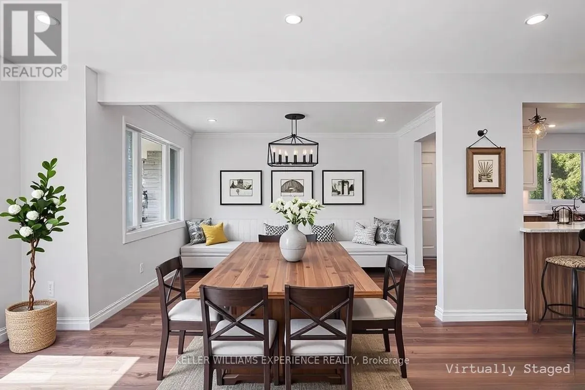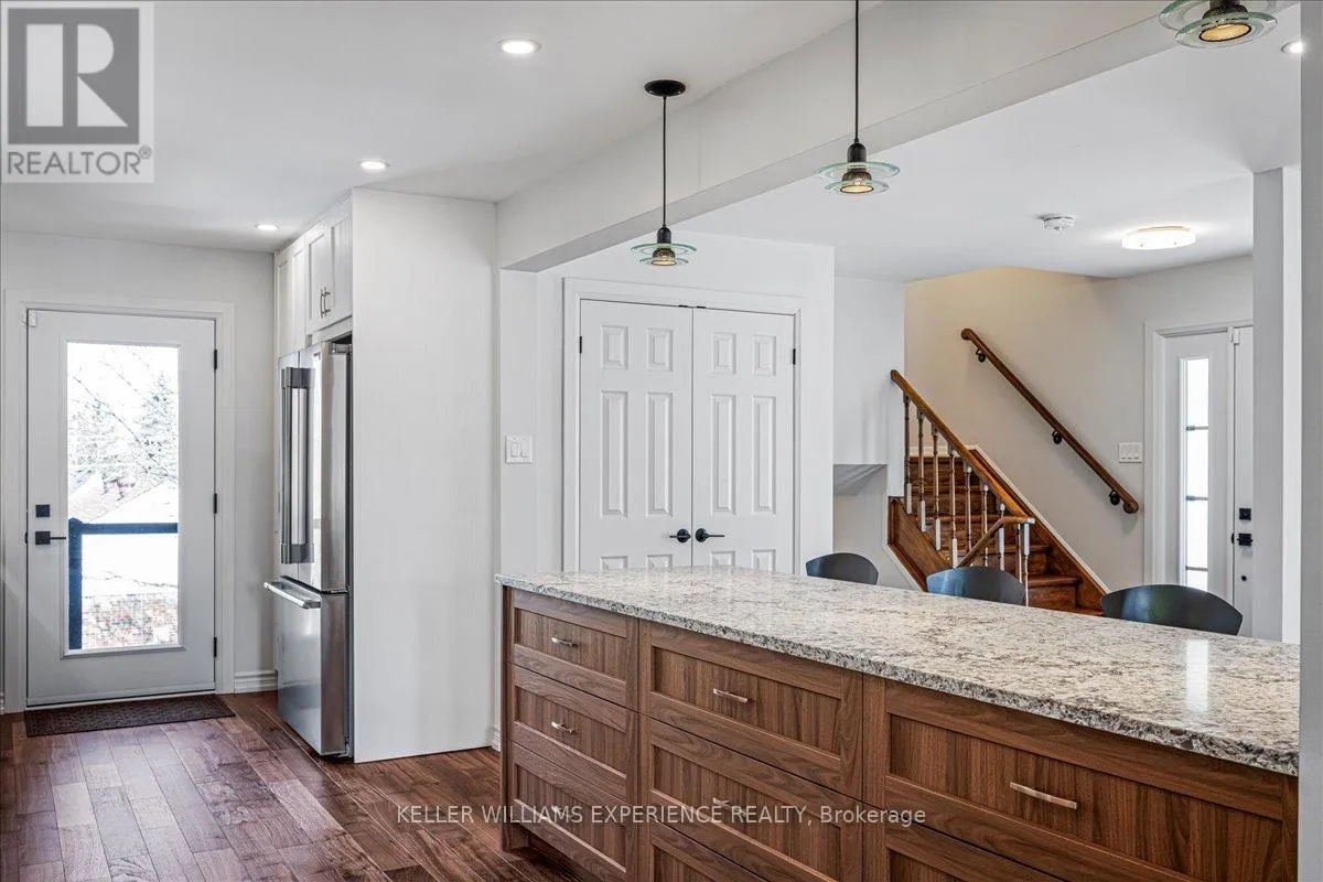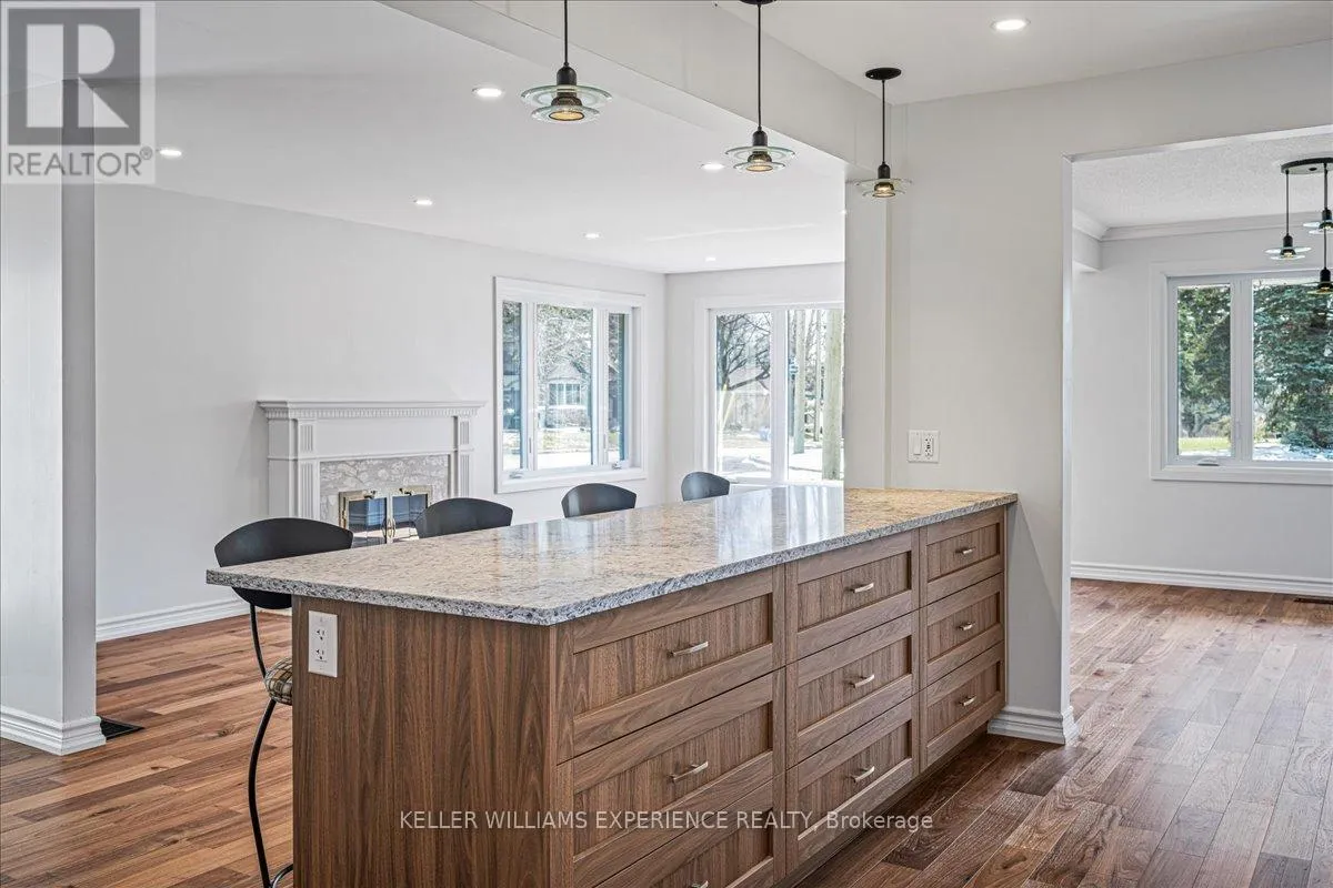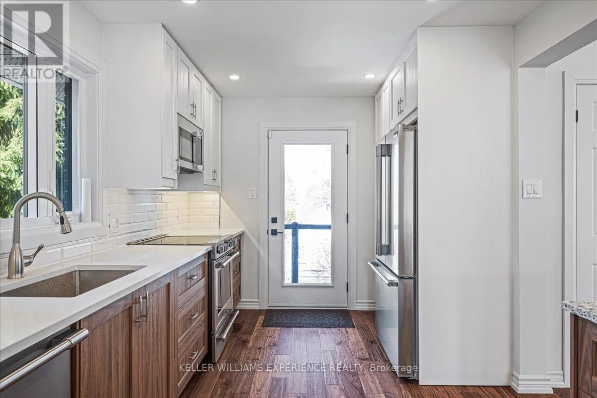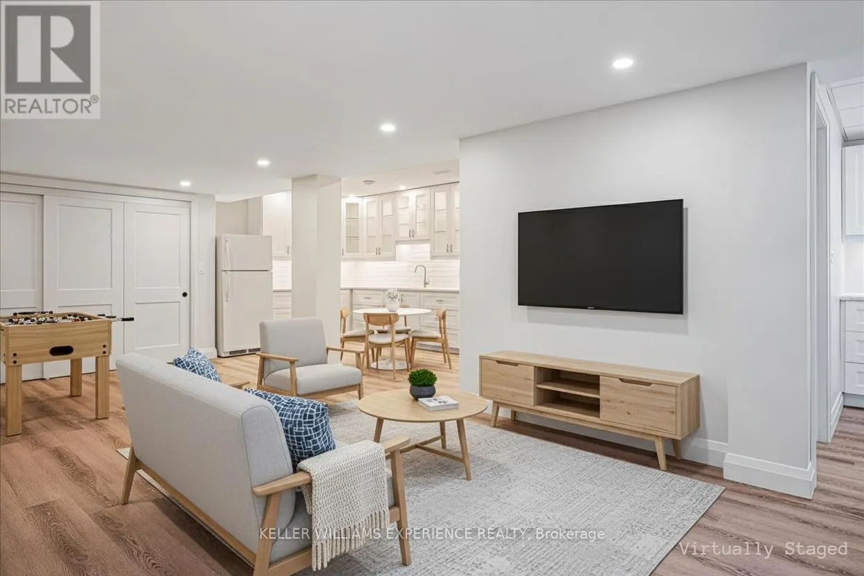 Cross Streets: Dundonald. ** Directions: Codrington Street to Dundonald Street to Eugenia Street. Located in the highly sought-after Codrington neighbourhood, this extensively renovated home has been transformed into a modern, functional, and beautifully designed home to meet today's lifestyle needs. The main floor offers a spacious, open-concept living, dining, and kitchen area with a bright, expansive flow. Southern-facing windows fill the space with natural light, while the chef-inspired kitchen features a large center island, quality finishes, and seamless connection to the living areas. Engineered hardwood flooring, upgraded fixtures, and lighting enhance the contemporary feel throughout. The second level offers three generously sized bedrooms with engineered hardwood floors, pot lights, large windows, and a stylish 4-piece bathroom. The third level adds two additional bedrooms, a den, and a full 3-piece bathroom-perfect for teens, guests, or a flexible work-from-home space. The fully finished fourth level provides even more functionality, featuring an additional family room, a second kitchen or wet bar area, a newly renovated 3-piece bathroom, storage, and a laundry room, creating excellent potential for in-law accommodation or extended-family living. Outside, the landscaped lot is equally impressive, offering irrigation, mature trees, perennials, a patio, and dedicated BBQ areas. The home is further enhanced by an oversized single garage with inside entry and a paved driveway for four vehicles. A convenient side-door entrance offers potential for a private in-law suite or professional home office. Upgrades include: furnace (2023), A/C (2024), windows and doors (2023), interior renovations (2023-2024), deck and railing (2024), and shingles (2017). Additionally, the seller has approved building plans and drawings for a detached double garage addition, adding further value and future potential. A rare opportunity to own a stylish and timeless property in one of the city's most desirable neighbourhoods. (id:27476)