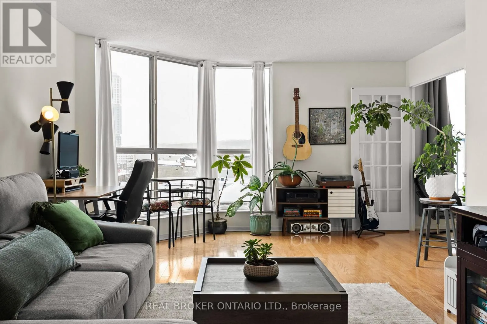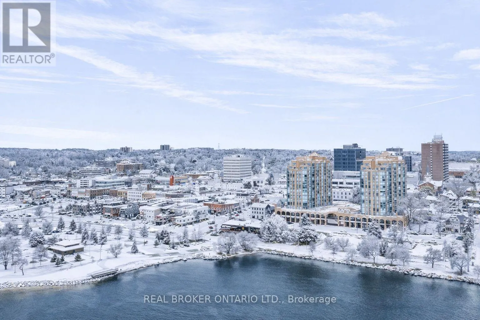 Cross Streets: Dunlop/Mulcaster. ** Directions: Dunlop. UTILITIES INCLUDED IN CONDO FEES! This beautifully updated 1-bed + den, 1-bath condo offers south-west exposure with fantastic views of Kempenfelt Bay, the marina, and downtown Barrie. Large windows flood the space with natural light, showcasing stunning sunsets and the city lights at night. The 775-square-foot unit features hardwood floors throughout the living room and den, with vinyl flooring in the spacious bedroom. A newly renovated bathroom elevates the space with a modern tub, toilet, vanity, and gorgeous tile work that seamlessly flows into the foyer. The den is perfect for a home office or hobby space, and the unit also offers convenient in-suite laundry. Included with the unit are one underground parking space and a storage locker. Building amenities feature an indoor pool, sauna, hot tub, gym, and a party/games room with monthly events. Condo fees cover heat/central air, hydro, water, building insurance, parking, and common elements, with on-site management, a superintendent, dual elevators, and visitor parking. Located just steps from waterfront trails, shopping, restaurants, and transit, this is downtown Barrie living at its best. (id:27476)