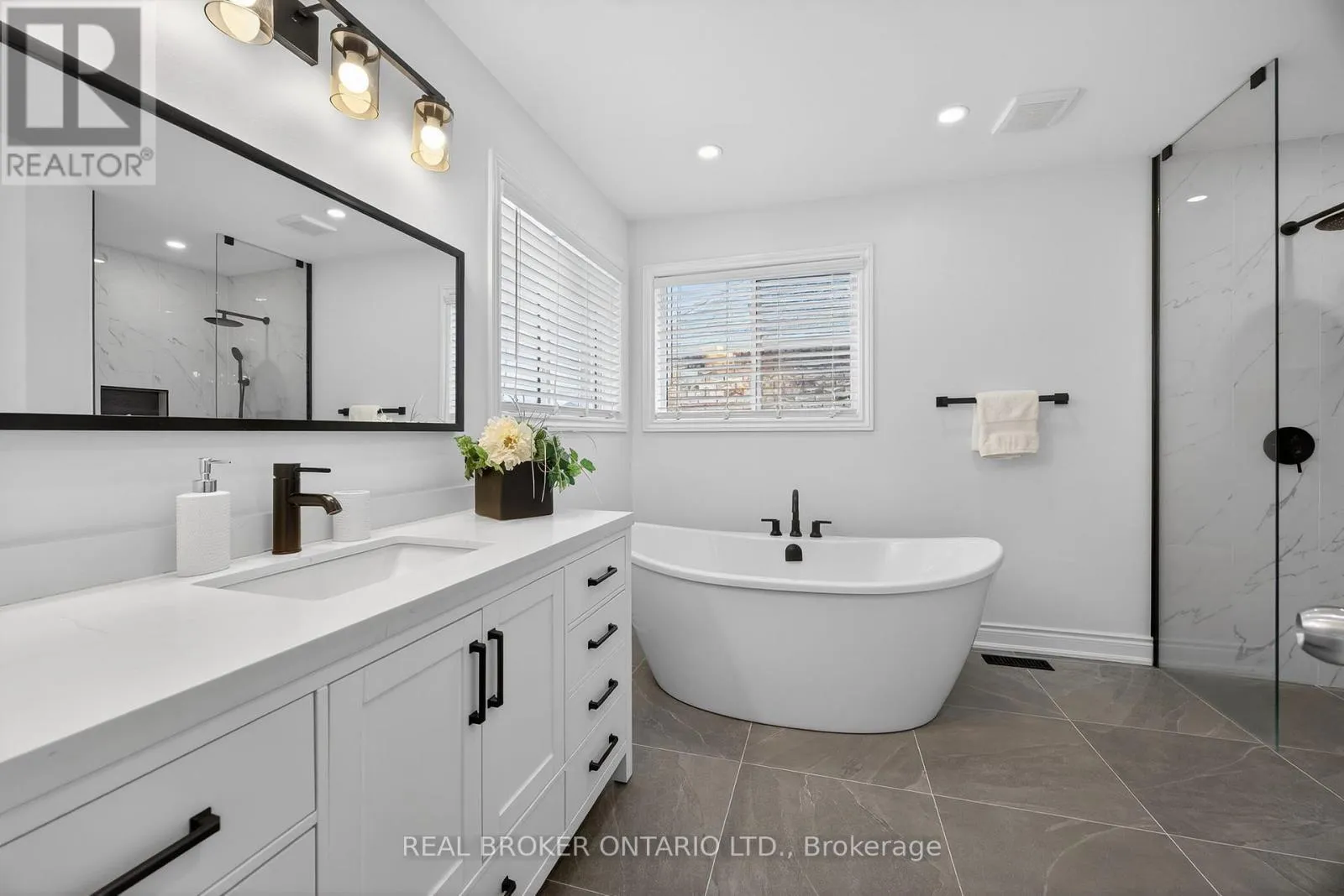 Cross Streets: Westminster and Sovereign's. ** Directions: Big Bay to Westminster to Sovereign's. Welcome to your dream family home in the heart of Barrie's highly sought-after south end. This stunning 4-bedroom residence has an open concept functionality. Amazing curb appeal makes a statement, featuring a contemporary brick exterior accented by black-framed windows, matching black garage doors, and a Douglas Fir coffered-ceiling front porch-the ultimate spot for your morning coffee.Step inside to an airy, light-filled main level finished in a timeless neutral palette. The open-concept layout creates a seamless flow between the spacious kitchen and the family room, making it ideal for busy family mornings or hosting friends. Upstairs, the primary suite is a true retreat, boasting a newly renovated, spa-like ensuite complete with a free-standing tub, waterproof walk-in shower with new glass doors, and elegant wainscoting.The fully finished basement adds incredible value, featuring a versatile layout including a large family area, gaming zone, craft space, and a newer additional bathroom.Peace of mind comes standard here: Enjoy the confidence of major updates including a new furnace and A/C (2023), plus a new roof and garage doors (2021). With 2,944 finished sq. ft. of living space, you are just minutes away from top-tier schools, premium shopping at Park Place, local dining, Go-Station and the luxury amenities of Friday Harbour. Flexible closing, immediate or delayed. Imagine yourself in this home located in Barrie's most desireble area surrounding Kempenfelt Bay, Lake Simcoe! (id:27476)