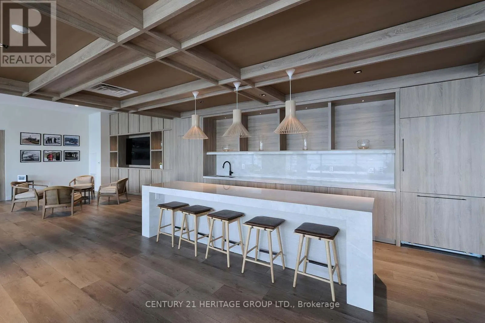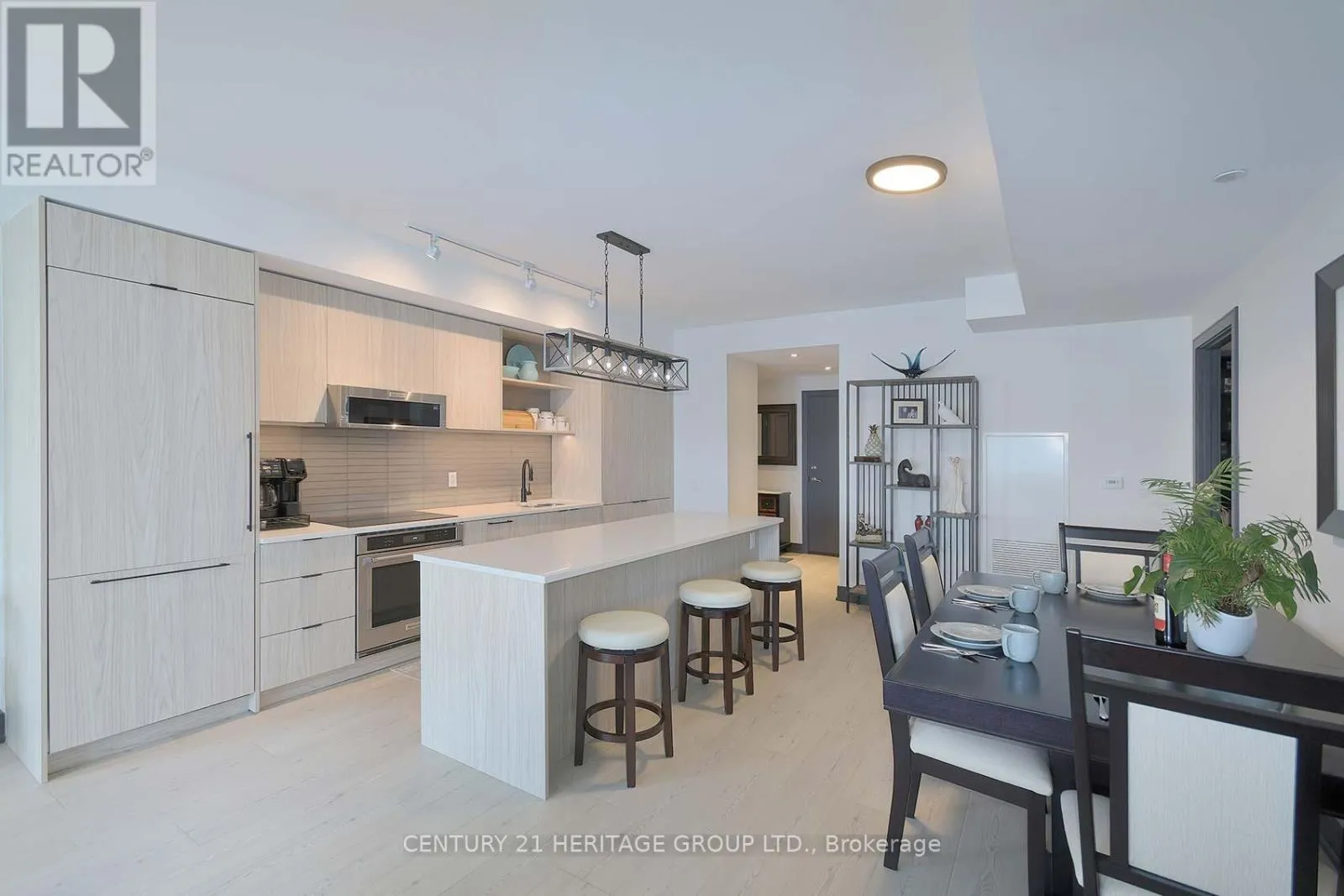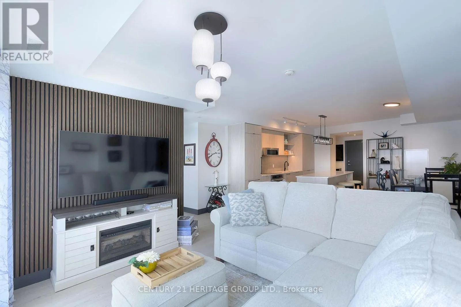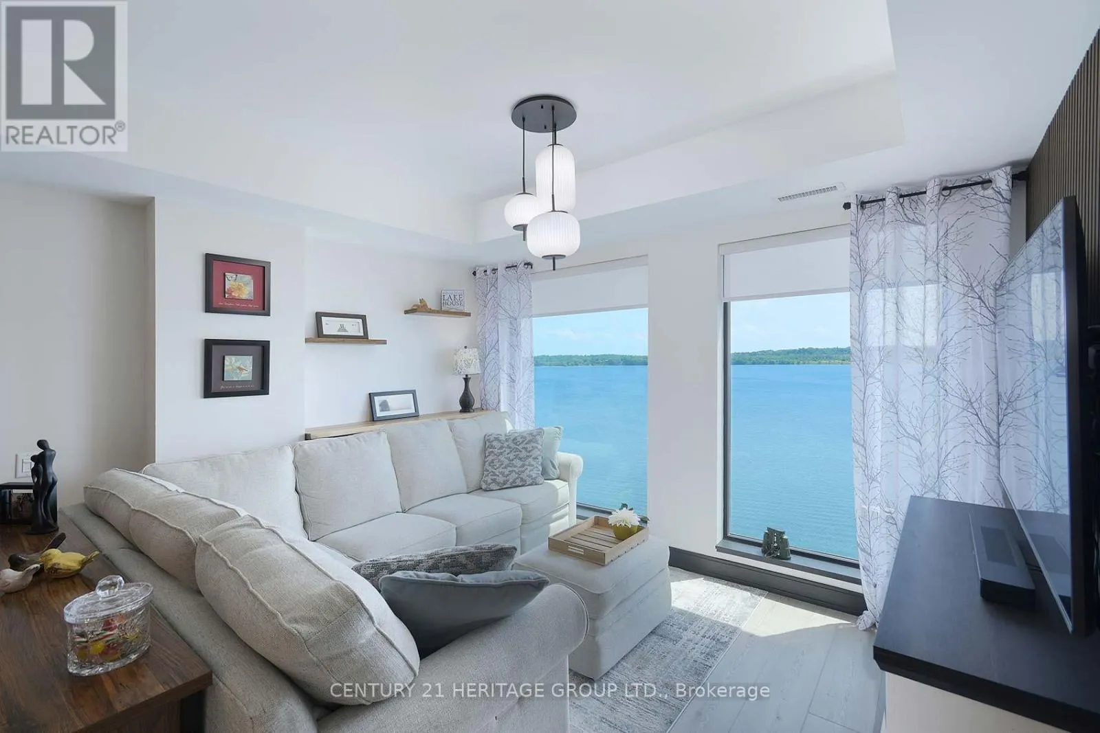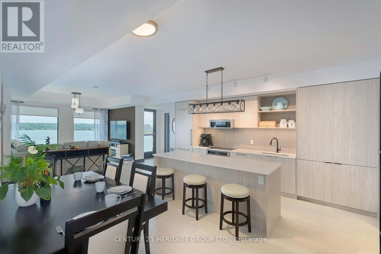 Dunlop St E & Poyntz St WATERFRONT VIEWS, TRUE LUXURY, THE DETAILS OTHERS DON'T HAVE Welcome to Lakhouse a rare, upgraded Sapphire model offering 1,510 sq. ft. of refined waterfront living on the shores of Kempenfelt Bay. With a sought-after south-facing exposure and unobstructed wall-to-wall lake views, this suite delivers the most captivating outlook in the building-daylight, sunsets, and shoreline sparkle included. Designed for both everyday ease and elegant entertaining, the home features a chef-inspired kitchen with a dramatic oversized island, sleek quartz countertops, and panelled high-end appliances, flowing seamlessly into a bright open-concept living and dining space highlighted by a custom feature wall with built-in TV mount. The showstopper continues outdoors with an innovative Lumon glass-enclosed balcony, creating a serene, year-round extension of your living space-perfect for morning coffee, dinner parties, or quiet evenings overlooking the bay. What truly sets Suite 602 apart from competing luxury offerings are the thoughtful "liveability" upgrades buyers crave: a versatile additional room ideal as a den or home office, plus a full-sized laundry room with custom cabinetry, a built-in folding station, and multiple dedicated hanging areas-paired with full-size, high-eff.machines. A rare front-hall powder room makes hosting effortless and everyday living more comfortable. Both bedrooms offer lake views, double closets & private ensuites, creating a true two-suite layout that's ideal for downsizers, professionals, or guests who appreciate privacy and comfort. And for condo living, the extras are exceptional: two premium parking spaces, a private hydraulic lift for a third vehicle, plus convenient same-floor storage. Residents at Lakhouse enjoy resort-inspired amenities including two rooftop terraces with BBQs and fire tables, fitness centre, sauna and steam rooms, dog wash station, guest suites, stylish social lounge & concierge service. Waterfront lifestyle--Without compromi (id:27476)