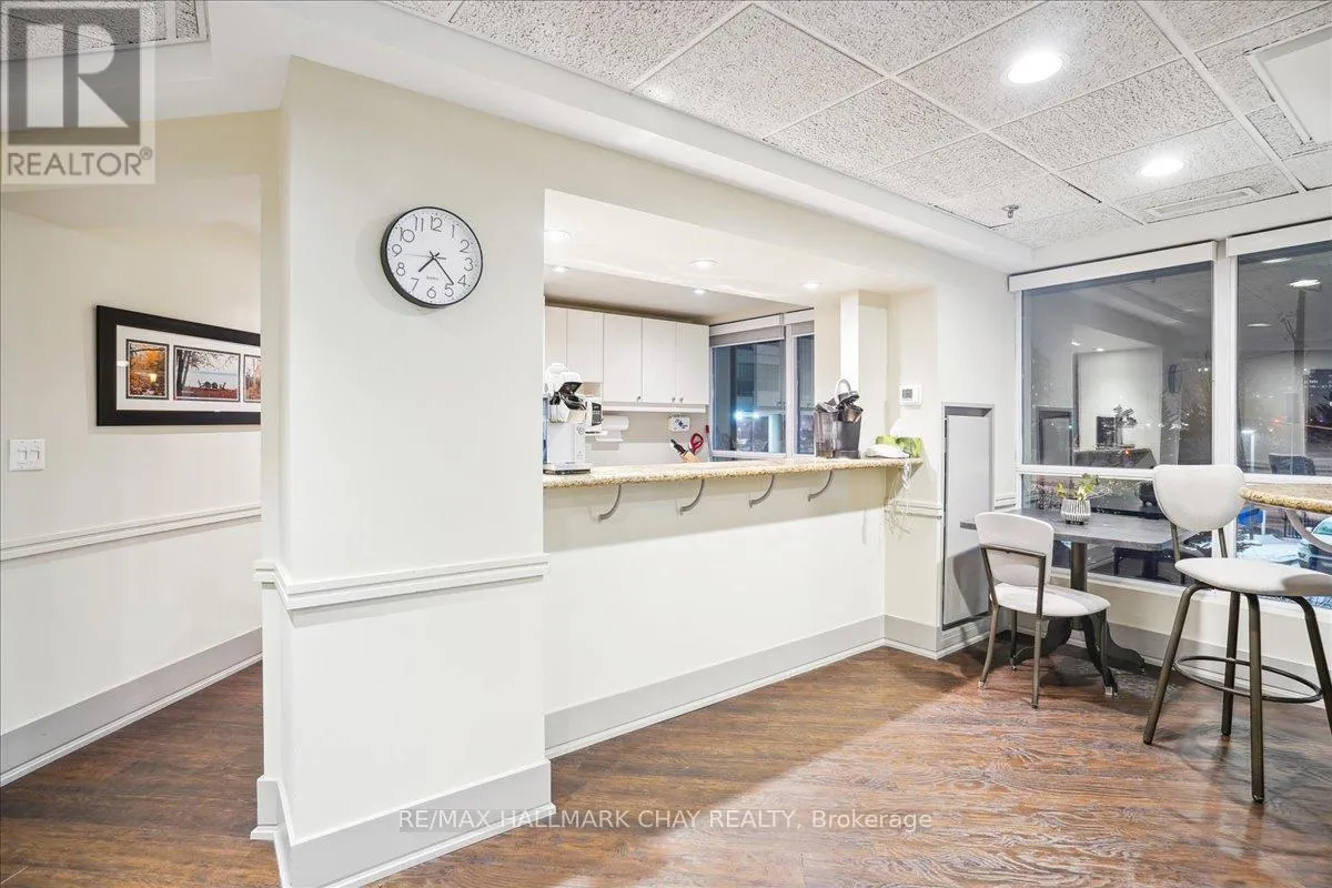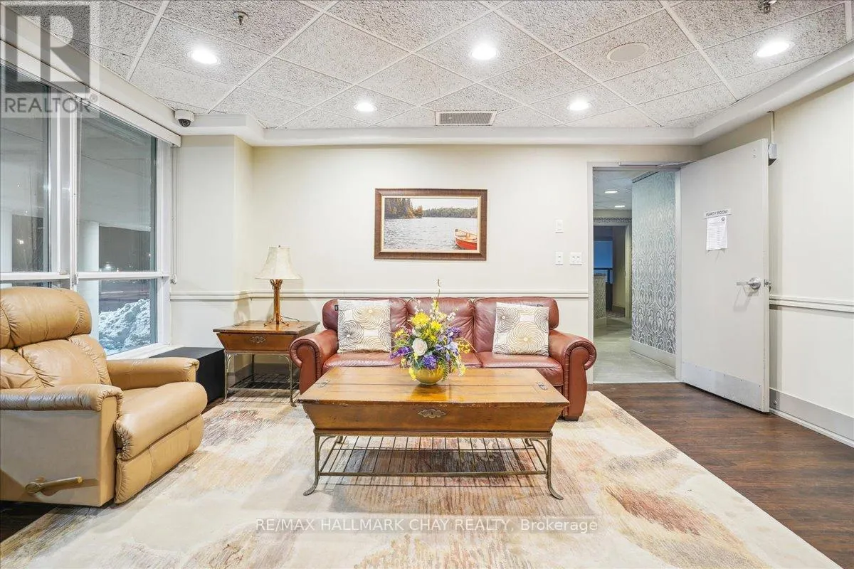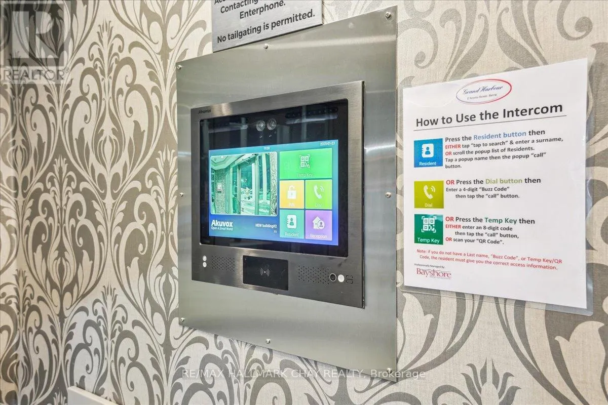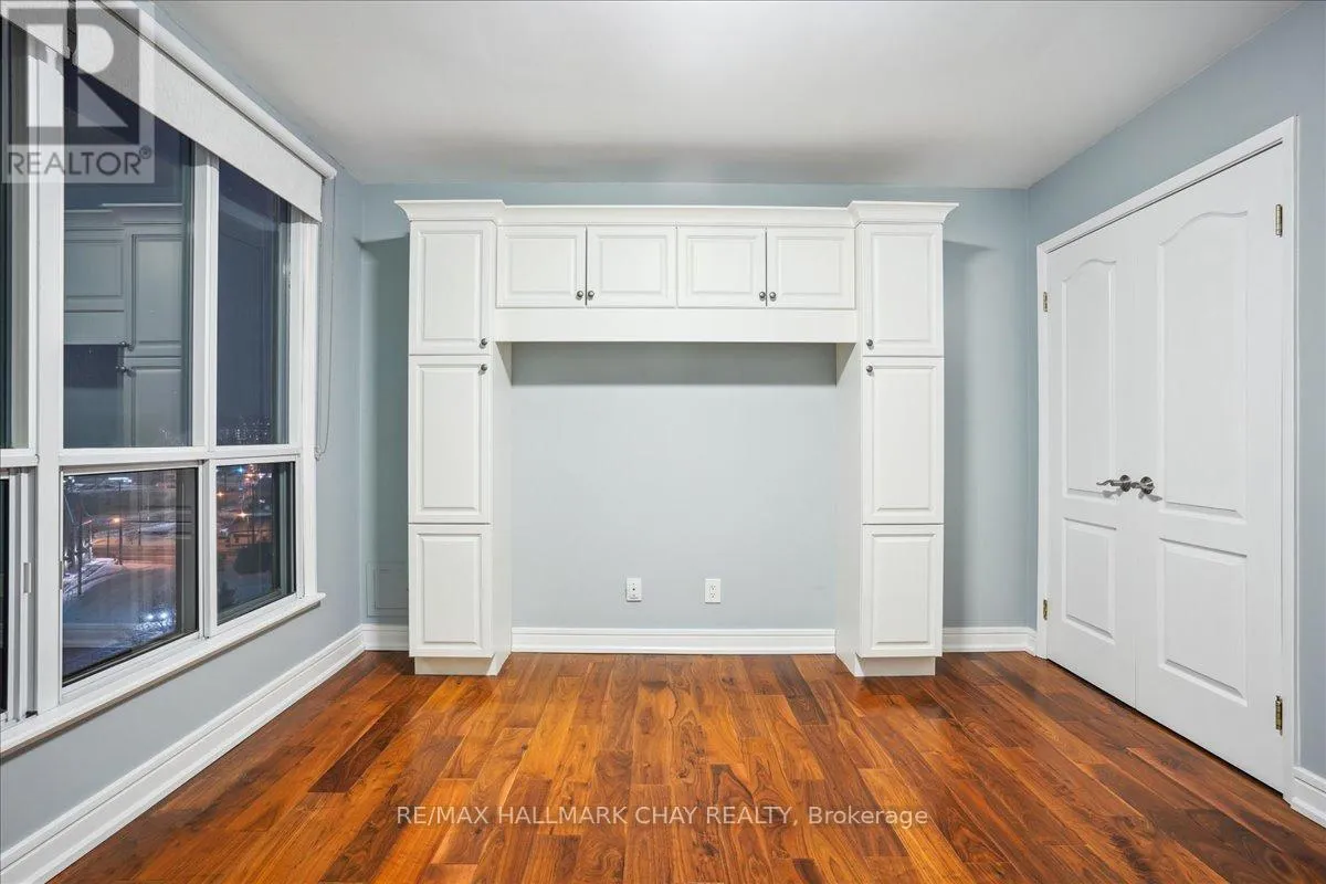 Cross Streets: Simcoe and Toronto. ** Directions: Simcoe St to Toronto St. Wake up every day to breathtaking views of Kempenfelt Bay in this beautifully bright and spacious 2-bedroom, 2-bath suite at the highly sought-after Grand Harbour. Offering approximately 1,340 sq ft of thoughtfully designed living space, this home delivers comfort, style, and an unbeatable waterfront setting.The expansive living room features a cozy gas fireplace, walls of windows, and a walk-out to a balcony where you can soak in panoramic views of the bay, and city skyline. A separate dining room makes entertaining effortless and flows seamlessly into the kitchen, complete with raised granite counters, full-height white cabinetry, stainless steel appliances, under-mount double sink, modern backsplash, pot lighting, and a breakfast bar overlooking the dining area.The primary bedroom is a true retreat with space for a king-size bed, large windows, a walk-in closet, and a private 4-piece ensuite with a separate glass shower. The second bedroom is ideal for guests, a home office, or den and is conveniently located across from the main 4-piece bath.Hardwood floors, tile in the kitchen and baths, crown molding, 9-foot ceilings, roller blinds, and a neutral colour palette add to the home's polished feel. In-suite laundry with stacked washer and dryer, recently updated toilets in both bathrooms, one indoor parking space, and a locker complete the package.Grand Harbour is a well-managed, amenity-rich building offering an indoor pool, gym, sauna, hot tub, party room, games room, guest suites, and an active social community. Walk to the GO Station, stroll to the beach, and enjoy waterfront living at its finest. Rare opportunity to become a part of such a wonderful building. (id:27476)