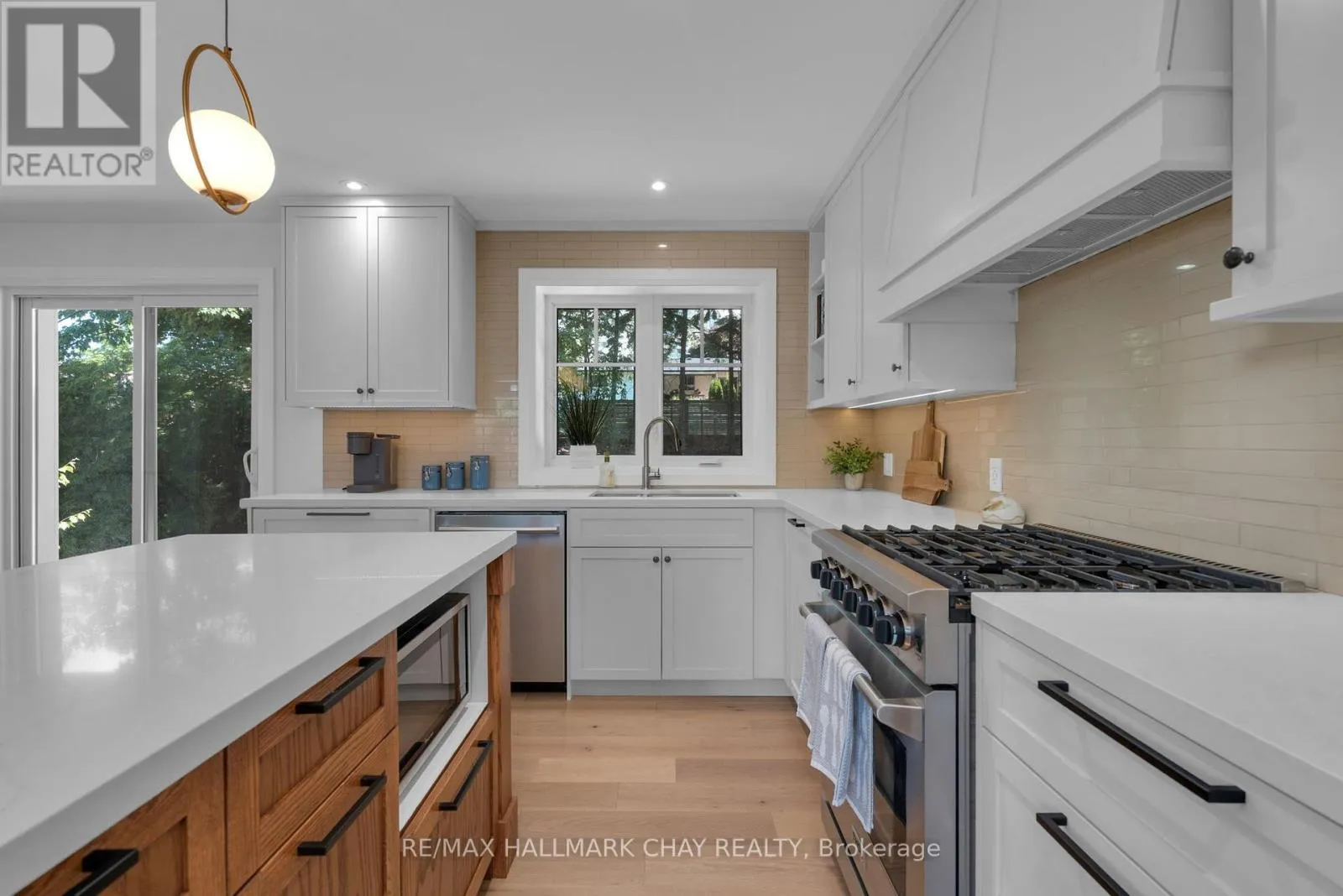 Cross Streets: Johnson St/Shanty Bay Rd. ** Directions: Blake St to Shanty Bay Rd. Tucked away in the prestigious Shanty Bay enclave of downtown Barrie, this exceptional custom-built residence offers a rare blend of luxury, privacy, and waterfront charm. Overlooking the shimmering waters of Kempenfelt Bay, this five-bedroom, five-bathroom home is designed to impress from the moment you arrive. A dramatic, oversized foyer welcomes you with refined finishes and heated floors, setting the tone for the comfort and craftsmanship found throughout the home.The heart of the house is a beautifully appointed chef's kitchen, complete with built-in appliances and thoughtfully designed for both everyday living and memorable gatherings. Not to mention the incredible oversized livingroom with gas fireplace and views of the water. For the wine enthusiast, a custom wine cellar provides the perfect space to curate and showcase your collection. Upstairs, three generously sized bedrooms each feature their own spa-like ensuite with heated floors and walk-in closets, creating private retreats for family and guests alike. Step outside to a serene, fully fenced backyard where mature trees create a peaceful, secluded setting-ideal for relaxing, entertaining, or simply enjoying the natural surroundings. Beyond the property, an enviable lifestyle awaits: stroll to Johnson Beach, explore nearby walking trails, or take advantage of the vibrant shops and restaurants just moments away. With quick access to Royal Victoria Hospital, Highway 400, and the waterfront, this historic neighbourhood seamlessly combines timeless character with modern convenience.This is more than a home-it's an invitation to experience refined living in one of Barrie's most sought-after locations. Book your private showing and discover firsthand what makes this property truly unforgettable. (id:27476)