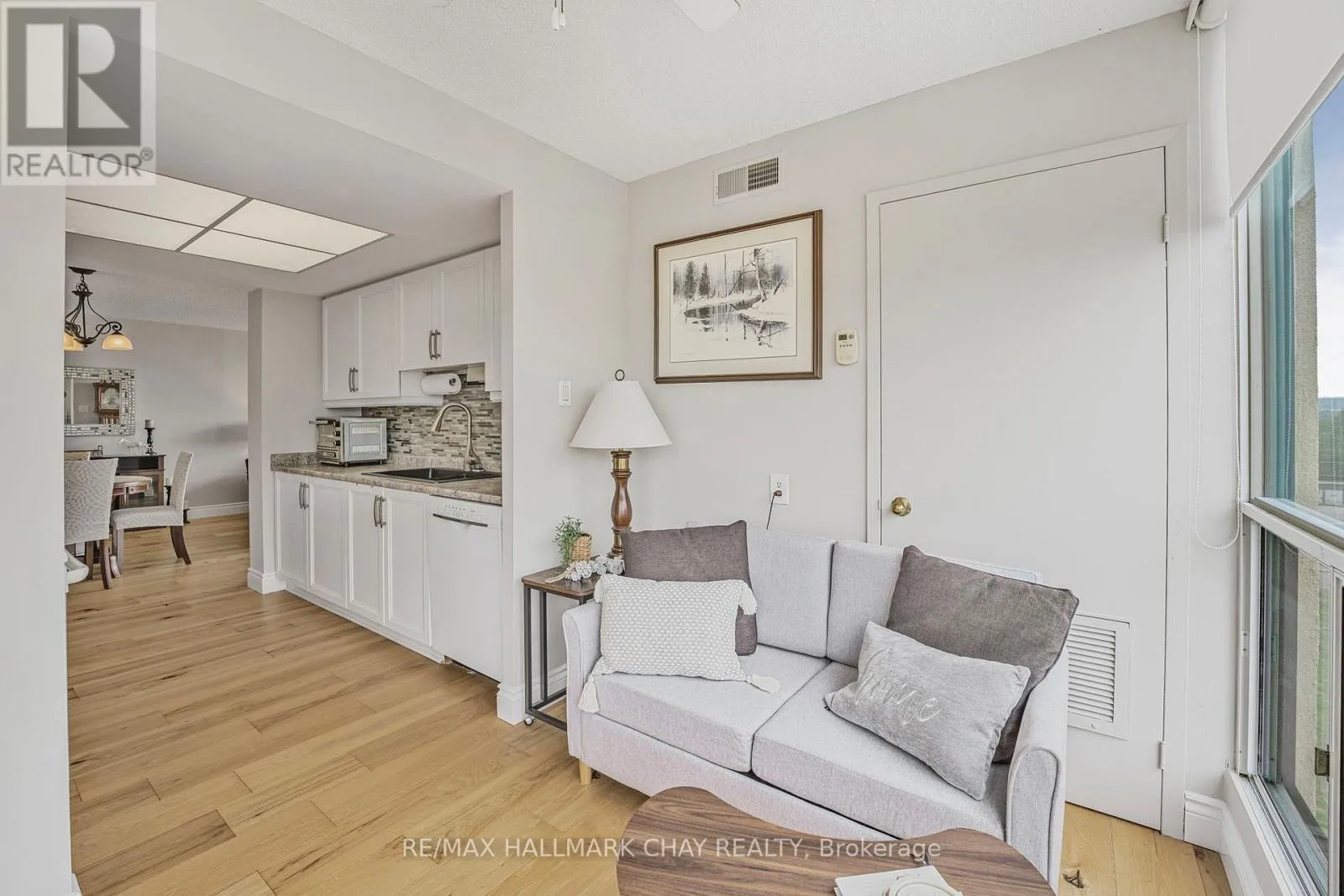 Cross Streets: LAKESHORE. ** Directions: LAKESHORE TO VICTORIA STREET. Affordable waterfront living with front-row views - a smart alternative along Barrie's shoreline.Welcome to Suite 610 at 65 Ellen Street, a bright and beautifully updated 2-bedroom, 2-bathroom condo in Barrie's sought-after Marina Bay Condominiums. Offering over 1,100 sq ft of thoughtfully designed space, this is an excellent opportunity to enjoy true waterfront living at a more attainable purchase price than many neighbouring buildings.Inside, you'll find warm engineered hardwood floors, a freshly painted interior, a spacious kitchen, and a charming waterside nook - ideal for morning coffee with lake views. Both bedrooms enjoy natural light and water vistas, while a large laundry and storage room adds everyday convenience.Marina Bay is ideal for retirees or busy professionals seeking easy, maintenance-free living. While condo fees are higher than some nearby buildings, they're balanced by a lower upfront purchase price, professional management, and a wide range of amenities including an indoor pool, sauna, fitness centre, party room, and guest suites. A covered parking garage means no snow clearing, and a pet friendly, social community makes it easy to feel at home.Step outside and you're immersed in Barrie's vibrant waterfront lifestyle - lakeside trails, downtown festivals, and Air Show views right from your window. Plus, walking distance to Allandale GO Station for easy commuting.With condo prices currently at a cyclical low and more selection available, buyers have a unique opportunity to secure waterfront views now, move in this spring, and enjoy a full summer by the lake. Lower purchase price, iconic location, and a lifestyle that delivers real value - because living by the water should feel this good. (id:27476)