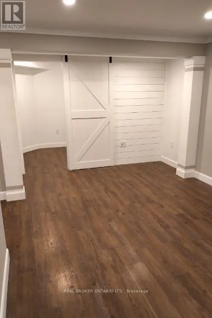 Cross Streets: BIG BAY POINT AND SANDRINGHAM. ** Directions: BIG BAY POINT TO SANDRINGHAM. Lovely lower level unit with 1743 square feet, 2 parking spots (1 driveway 1 garage), and your own section of the backyard featuring your own (not shared with owners) private deck, gazebo (provided), patio furniture (provided), BBQ (provided) and outdoor fireplace (provided). You will also find double French doors to the backyard, a massive over-sized living room and dining room with crown molding, pot lights and custom fireplace with tons of storage. The kitchen has soft closing drawers and cupboards, stainless steel appliances, backsplash, a pantry and wine rack. The master bedroom has two walk in closets, one big enough to be an office or den, neatly tucked behind a barn board door and shiplap accent wall. The spare bedroom is spacious and also has a double closet, plus there is another double closet in the hallway. Enjoy dimmer switches throughout the apartment, newer windows, in-suite laundry and lovely wide and solid doors. Use of the mezzanine in the garage is permitted for extra storage and the tenant is responsible for their own internet. Perfect location just minutes to many amenities, the library and schools. Landlord looking for single professional or couple. Sorry no kids. (id:27476)