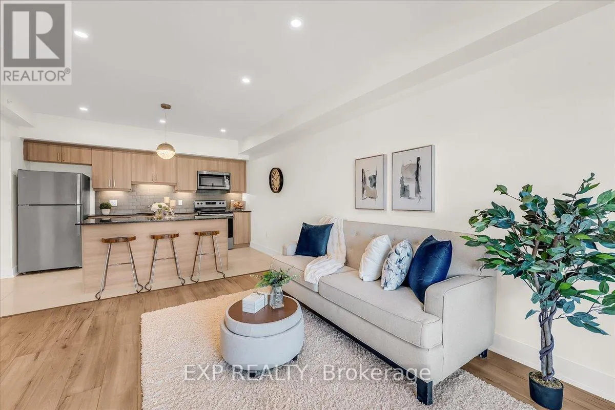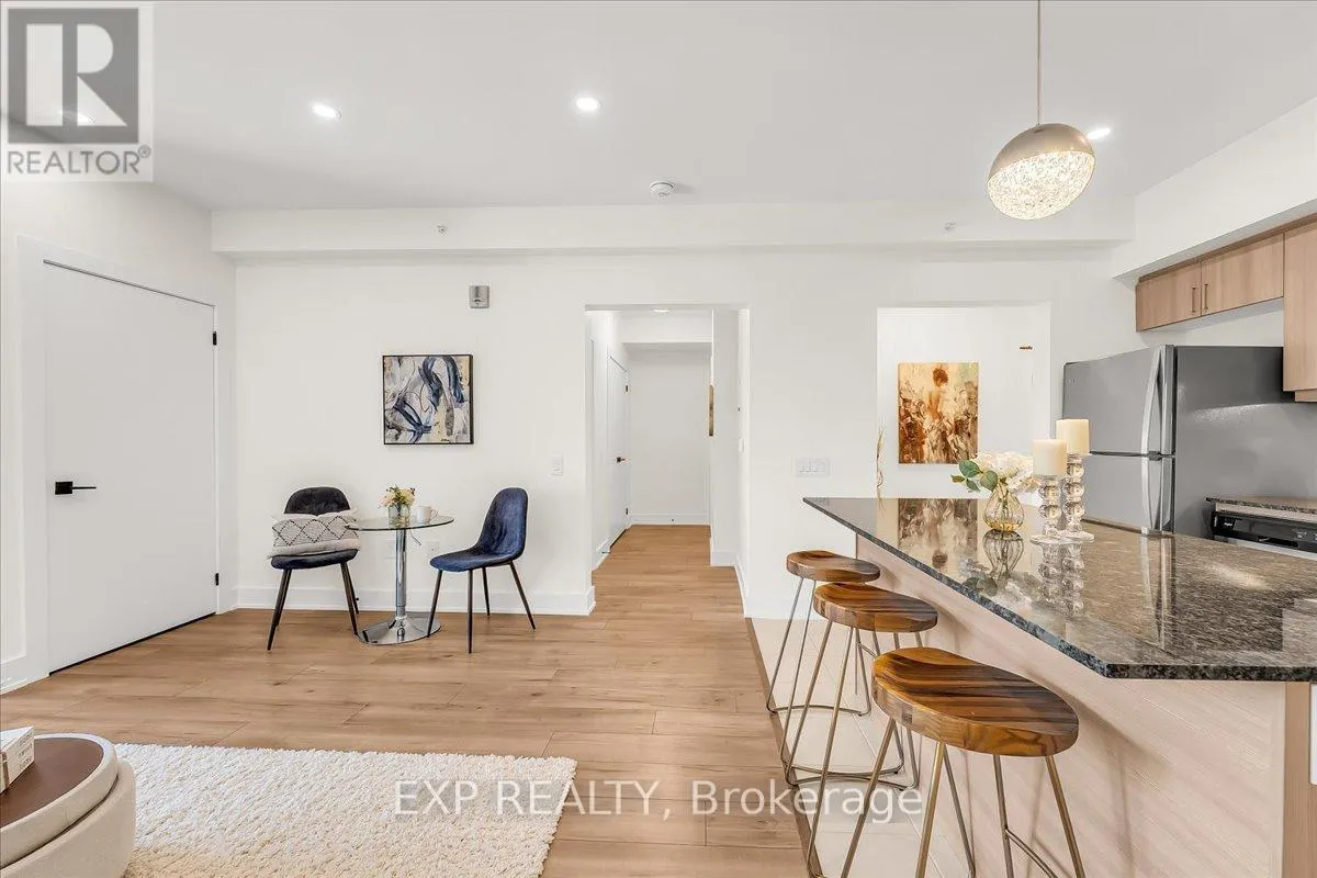 Cross Streets: Mapleview and Yonge. ** Directions: South Side of Mapleview Dr., East of Yonge St. Welcome to this beautifully upgraded one-bedroom condo with parking, in the highly desirable Bistro 6 community in southeast Barrie! Offering 760 sq. ft. of bright, freshly painted living space, this thoughtfully designed suite combines comfort, style, and functionality. Featuring 9-ft smooth ceilings, premium flooring throughout, and pot lights in the kitchen and living area, the space feels modern and inviting. Elegant light fixtures, upgraded trim, stylish interior doors, and Decora outlets and switches elevate the overall finish. The contemporary kitchen shines with an extra-large island, chic backsplash, under-cabinet lighting, and stainless-steel appliances, including an over-the-range microwave. Granite countertops, undermount sinks and soft-close cabinetry add both luxury and practicality throughout the suite. The sleek 3-piece bathroom includes a glass shower and additional storage. Enjoy in-suite laundry, a conveniently located surface parking space, and a private balcony offering a pleasant, open view with treetops in the distance - an ideal spot to relax or entertain. Bistro 6 residents enjoy access to premium amenities such as a communal spice kitchen and BBQ area, gym, yoga studio, and basketball court. Located within walking distance to the GO Station and just minutes to shopping, dining, and Hwy 400, this location is perfect for commuters. Ideal for first-time buyers, downsizers, or investors, this move-in-ready condo offers stylish, low-maintenance living in a vibrant community. Book your showing today! (id:27476)