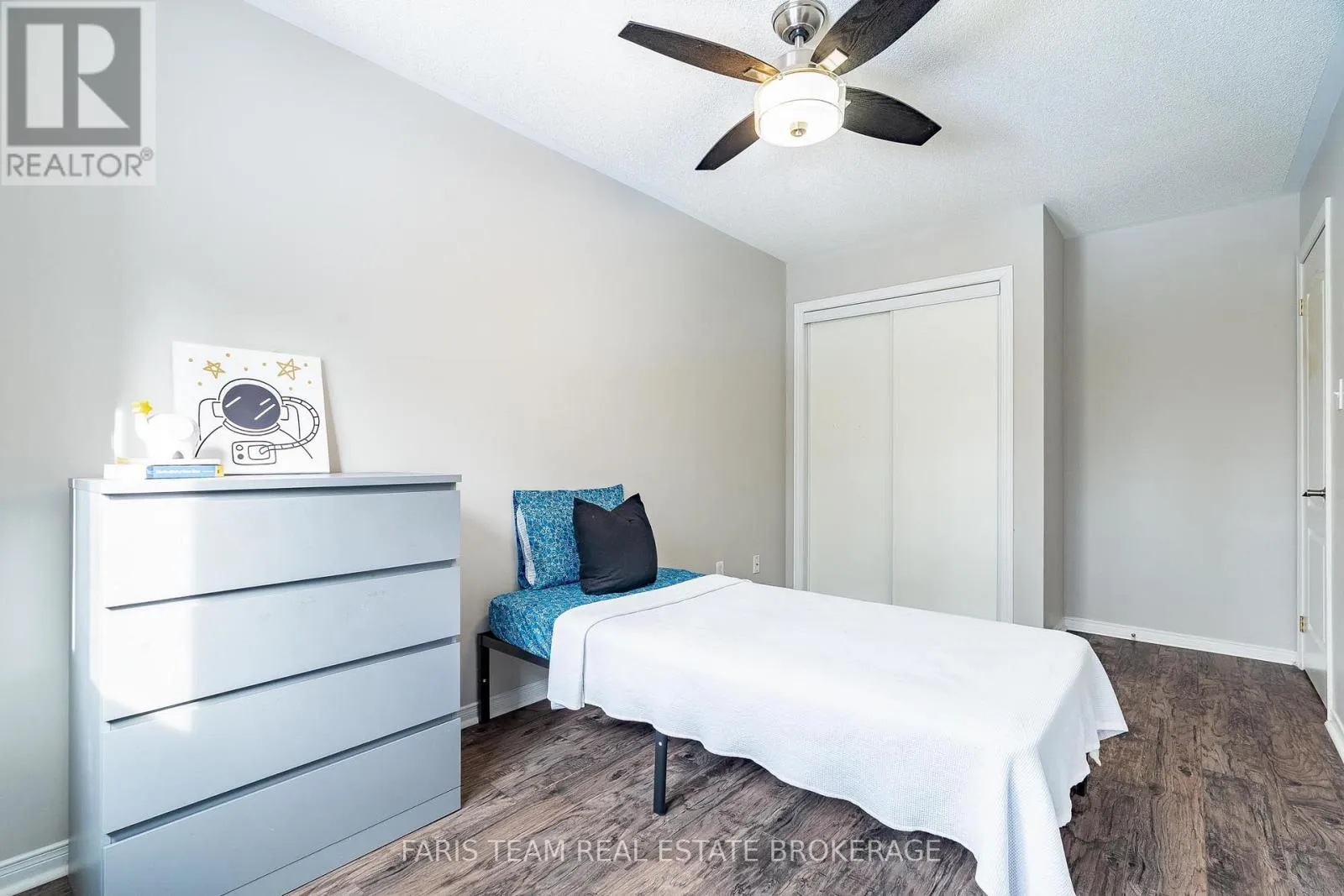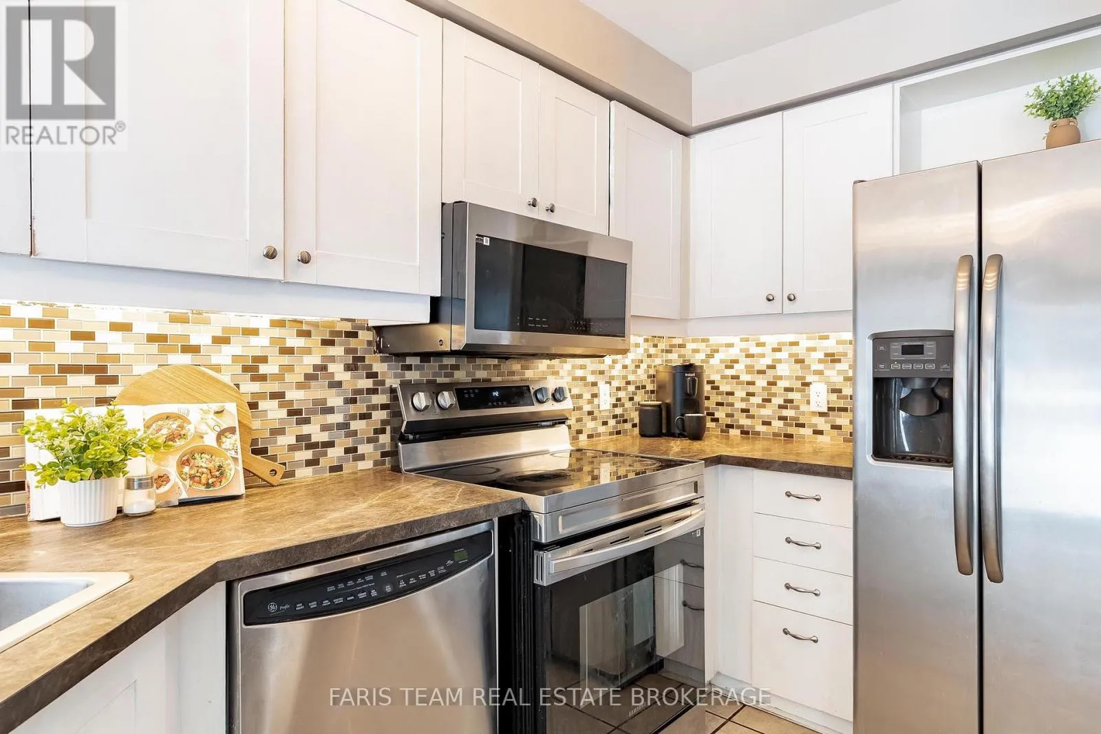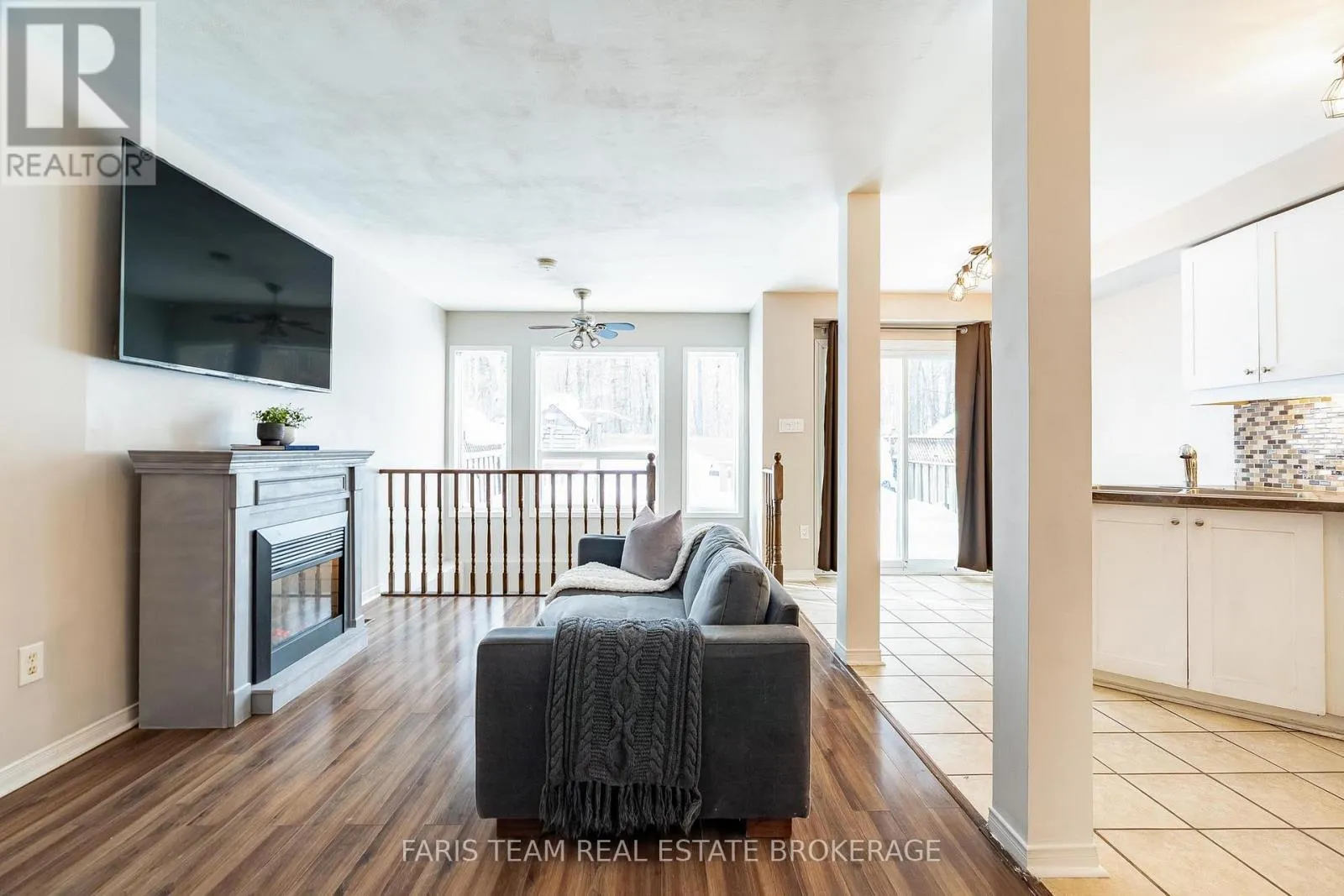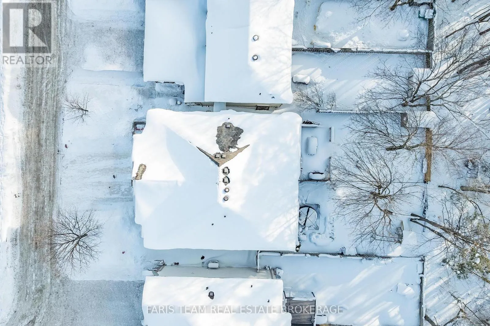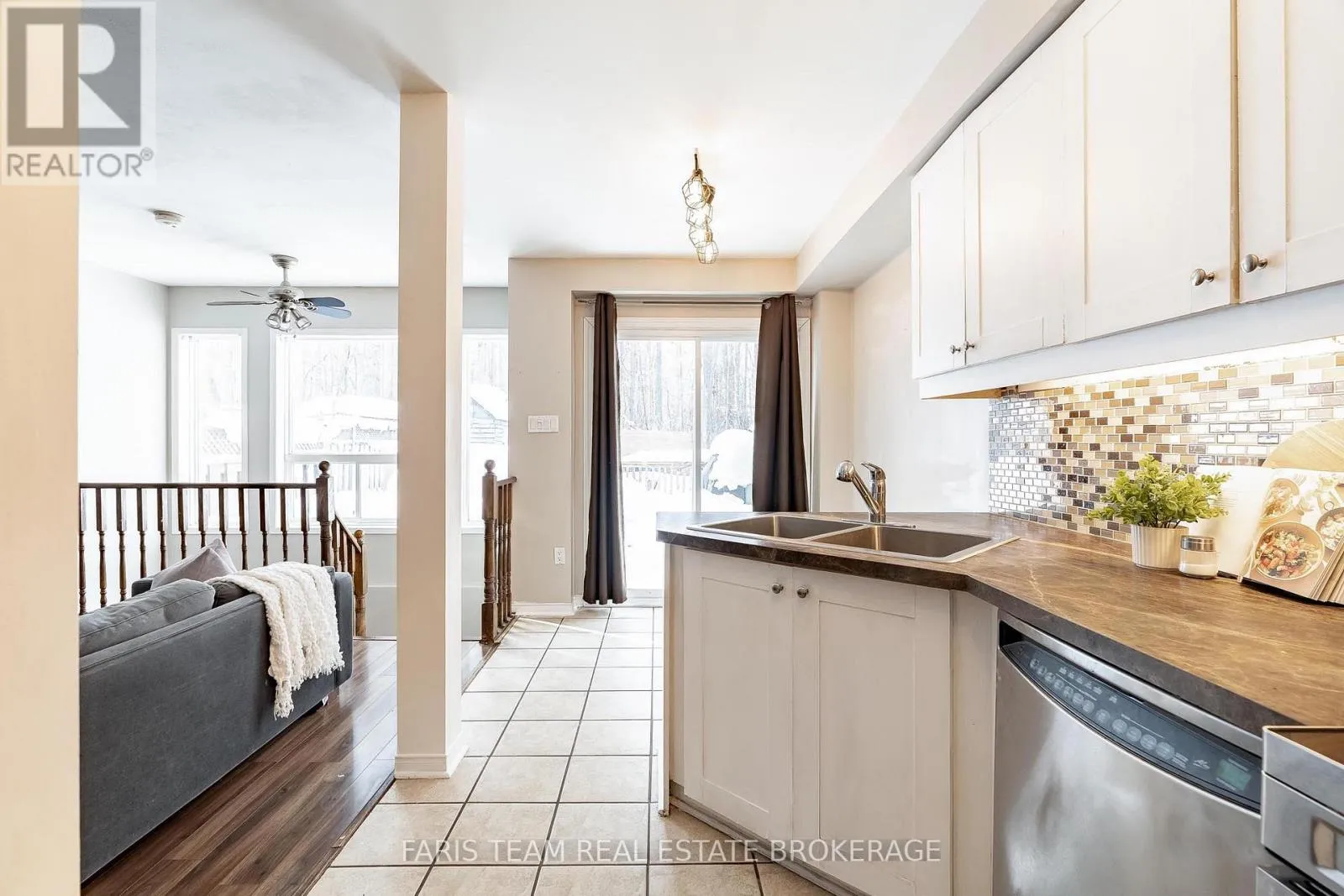 Ardagh Rd/Ferndale Dr S Top 5 Reasons You Will Love This Home: 1) Discover this freehold semi-detached townhome, where you can enjoy privacy with a generous fully fenced backyard featuring a deck, natural gas barbeque hook-up, and serene views of Ardagh Bluff Park with nothing but trees behind you, alongside a convenient side-gate access to the yard 2) Discover a well-planned interior featuring a main level powder room, convenient inside entry from the garage, three spacious bedrooms, and a fully finished recreation room 3) Added peace of mind with numerous updates, including a new roof, front door, back door, and front porch (2020), a back deck (2022), and an owned hot water tank (2025), ensuring comfort, efficiency, and long-term confidence in your home 4) Minutes to Highway 400, with a convenience store, restaurant, and gas station nearby, plus grocery stores, schools, and more just a short drive away 5) Descend to the warm and inviting finished basement, complete with a cozy gas fireplace, perfect for movie nights or relaxed gatherings, along with a convenient storage closet to keep everything neatly organized. 1,450 above grade sq.ft. plus a finished basement. (id:27476)