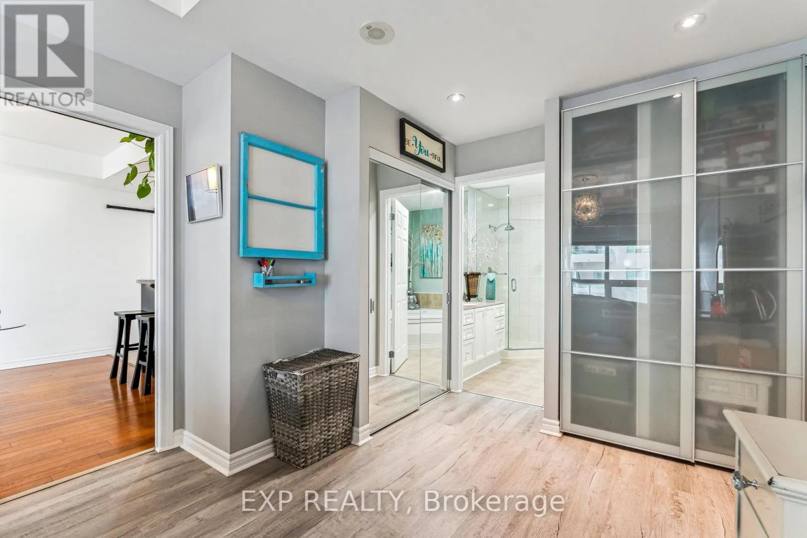 Cross Streets: Toronto St/Simcoe St. ** Directions: Simcoe St to Toronto St. Welcome to waterfront living at The Water View, located at 6 Toronto St. This stunning 1 Bedroom, 1.5 Bathroom "Sandpiper" model offers approximately 900 sq. ft. of bright and spacious living in one of Barrie's premier condo communities, perfectly situated along the beautiful shores of Kempenfelt Bay on Lake Simcoe. Experience the ultimate in convenience and comfort with indoor parking, a private locker, and a variety of exceptional amenities. Enjoy the best of Barries waterfront lifestyle with the marina, Simcoe County trails, and vibrant downtown just steps away. Plus, with easy access to the GO Train, public transit, and major commuter routes, traveling for work or leisure is a breeze. Inside, this suite boasts a sunny southern exposure, filling the open concept living space with natural light. The upgraded kitchen features elegant cabinetry and a granite breakfast bar that overlooks the spacious living and dining area, complete with beautiful hardwood floors. Step out onto the private balcony to take in the breathtaking views of Kempenfelt Bay and the city marina. The bright primary bedroom offers a relaxing retreat, featuring his and hers closets for ample storage and a Jacuzzi ensuite with a separate glass shower for added comfort and luxury. The Water View community offers a wealth of fantastic amenities, including a recently and elegantly remodelled lobby, visitor parking, a guest suite, party room, games room, indoor pool, hot tub, sauna, gym, locker room with showers, a library, and a welcoming lobby. This exceptional property combines lakeside tranquility with urban convenience, don't miss your chance to enjoy the best of both worlds! (id:27476)